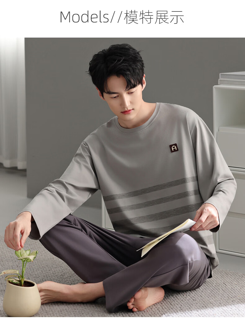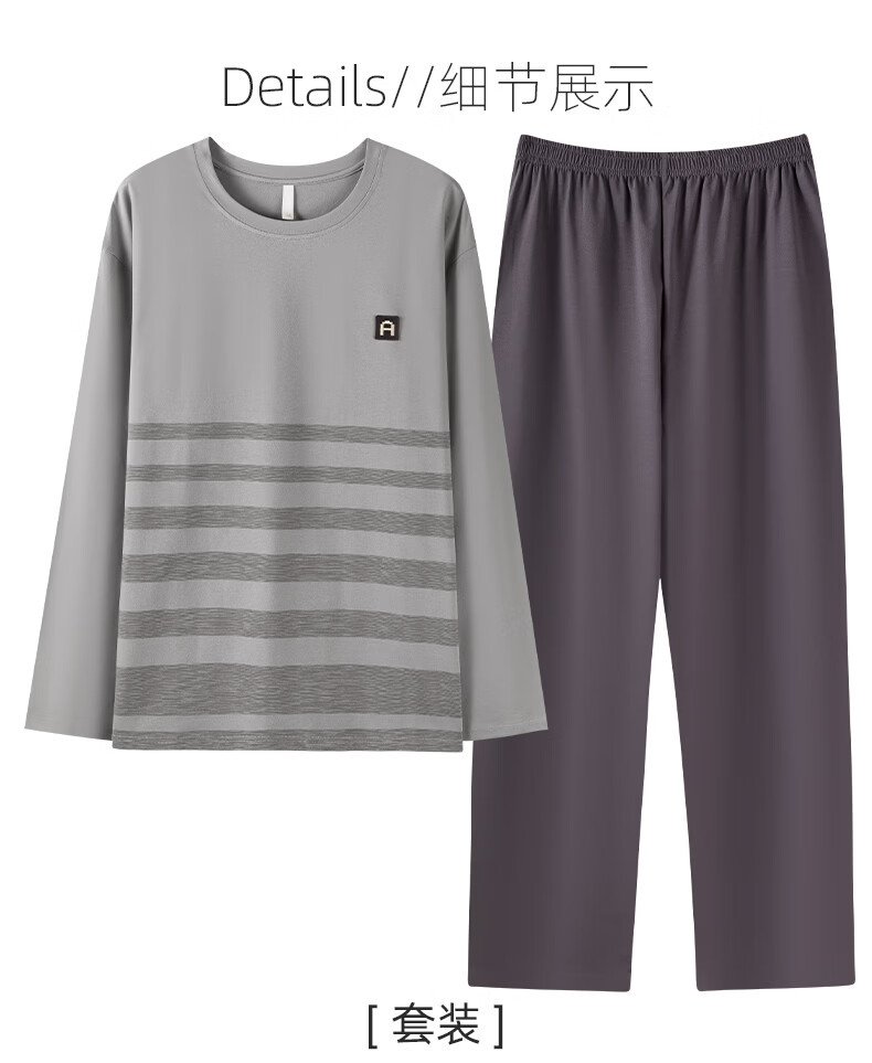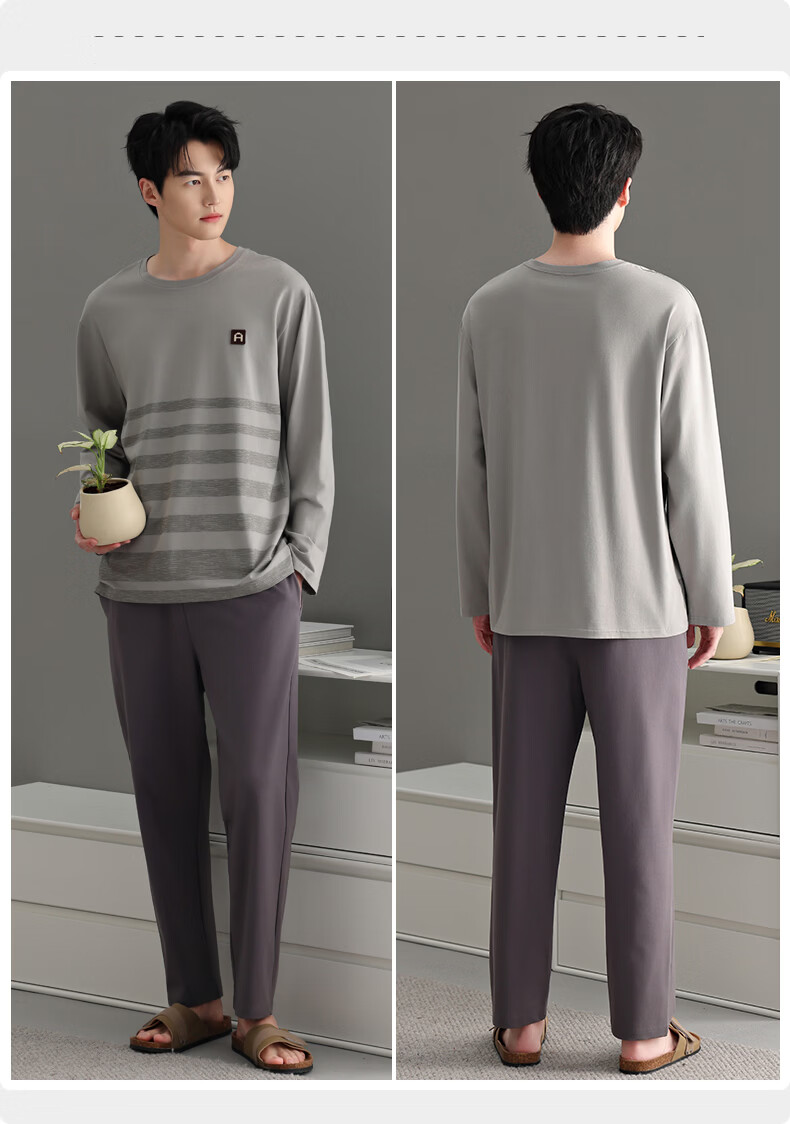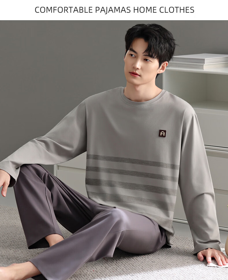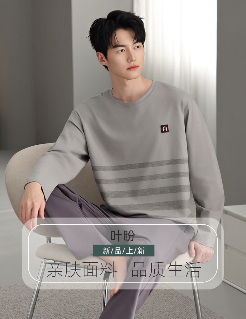 叶盼(yepan)【柔软】莱卡纯棉睡衣男秋冬季长袖宽松大码可外穿男士家居服套装 91093-月灰 M (165) :建议100-120斤穿着