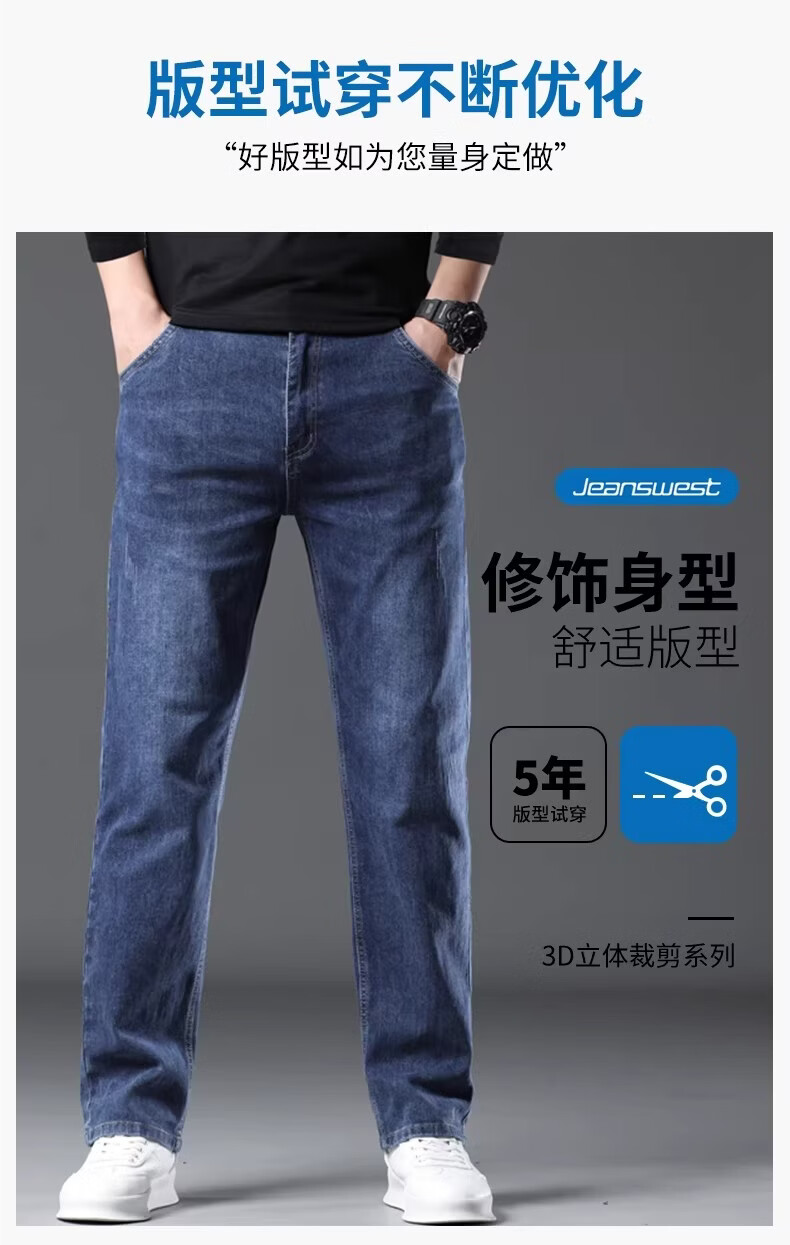 真维斯潮流商务牛仔裤男士宽松直筒高端复古水洗百搭弹力休闲长裤 随机款 34 【建议160-169斤】