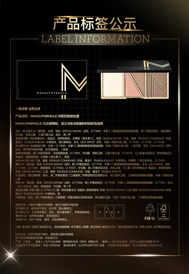 屈臣氏MAKEUPMIRACLE光影四色综合盘 12g