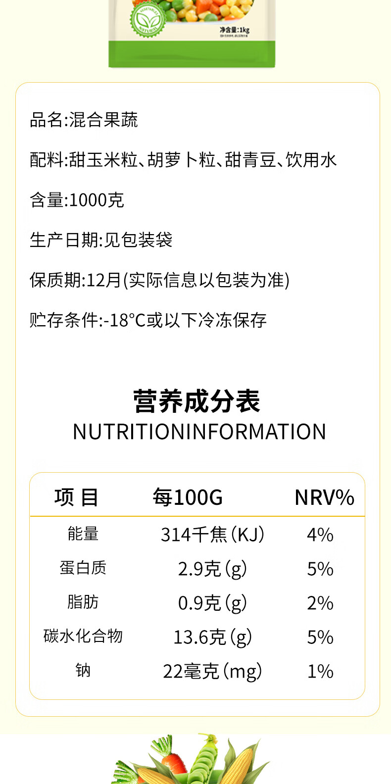 京鲜生什锦蔬菜1000g 欧式杂菜速冻混合蔬菜什锦杂菜青豆健康轻食