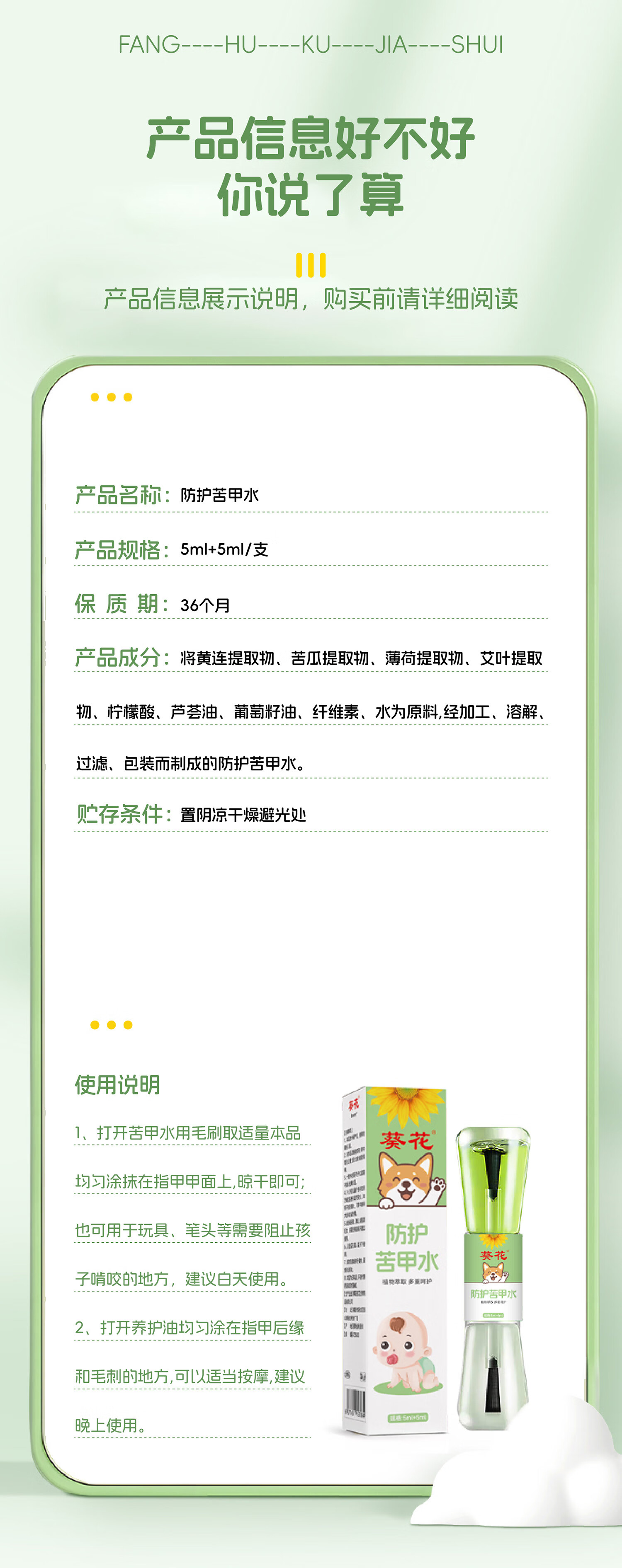葵花苦甲水10ml婴儿童戒吃手戒奶神器断戒奶重度宝宝防咬指甲水洗不掉