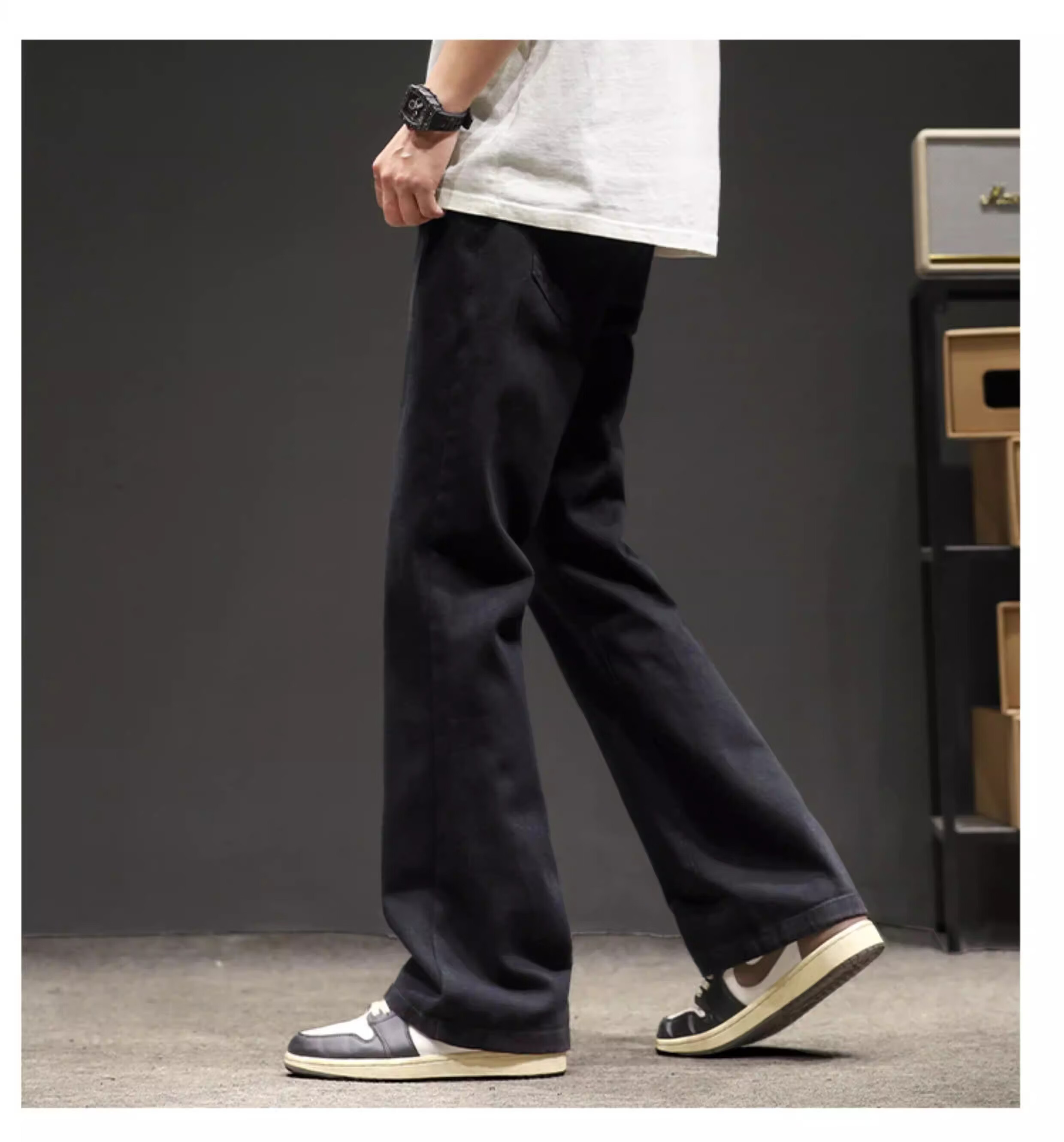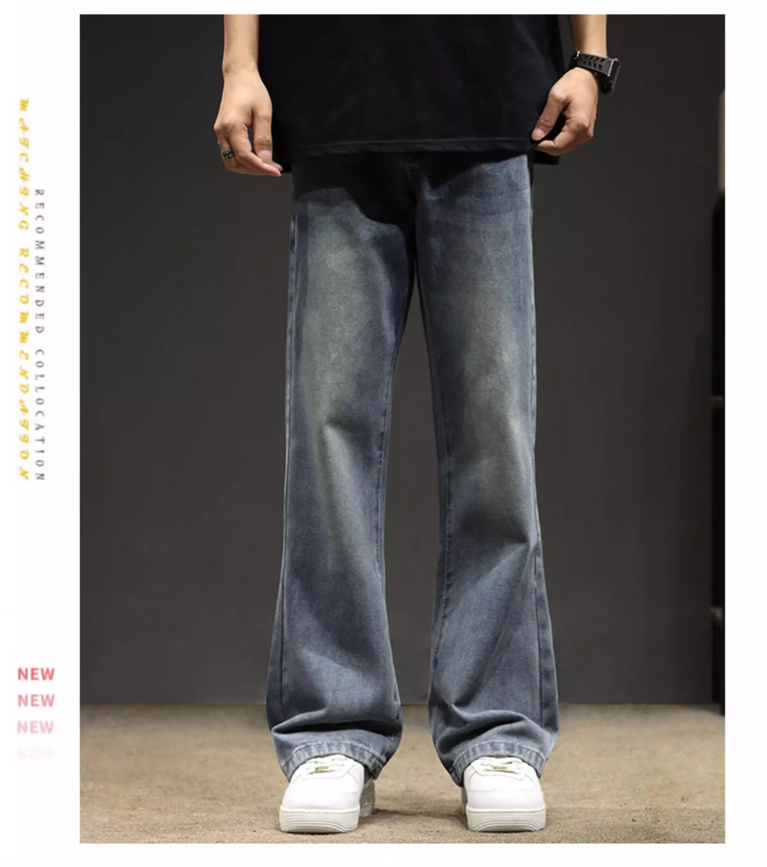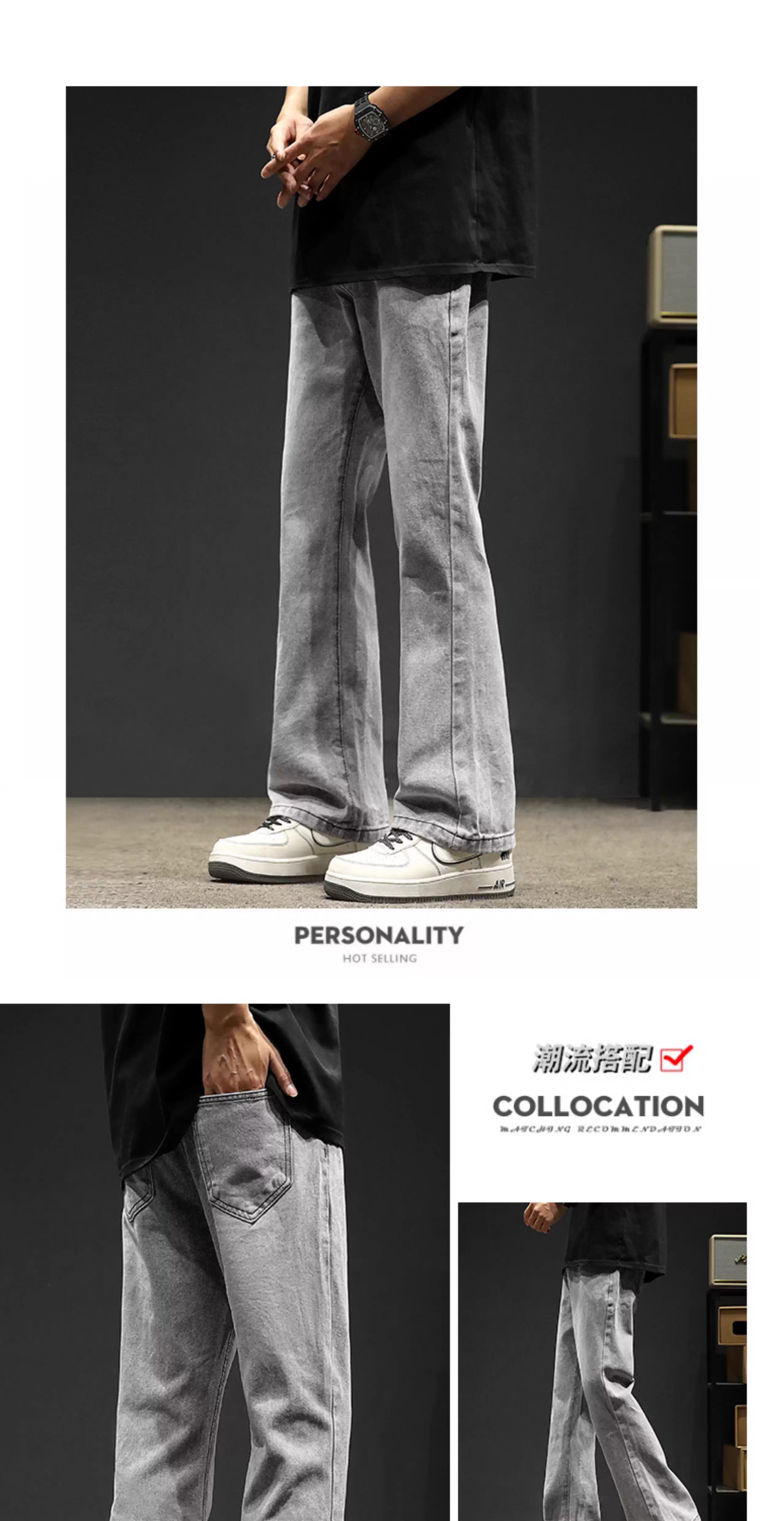 真维斯(Jeanswest)2026秋冬季黑色微喇牛仔裤男款美式高街宽松直筒简约休闲加绒裤子 随机款 M