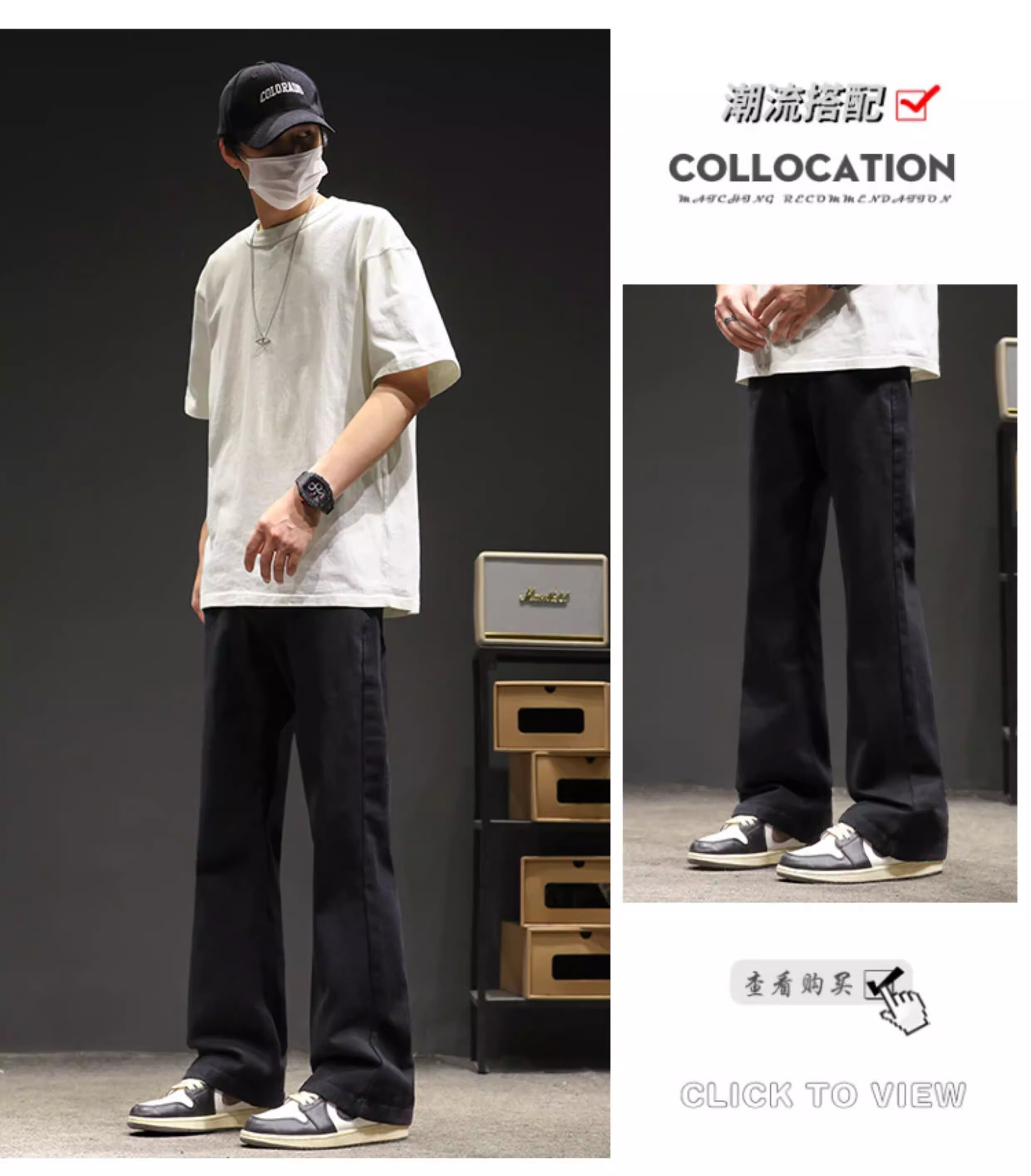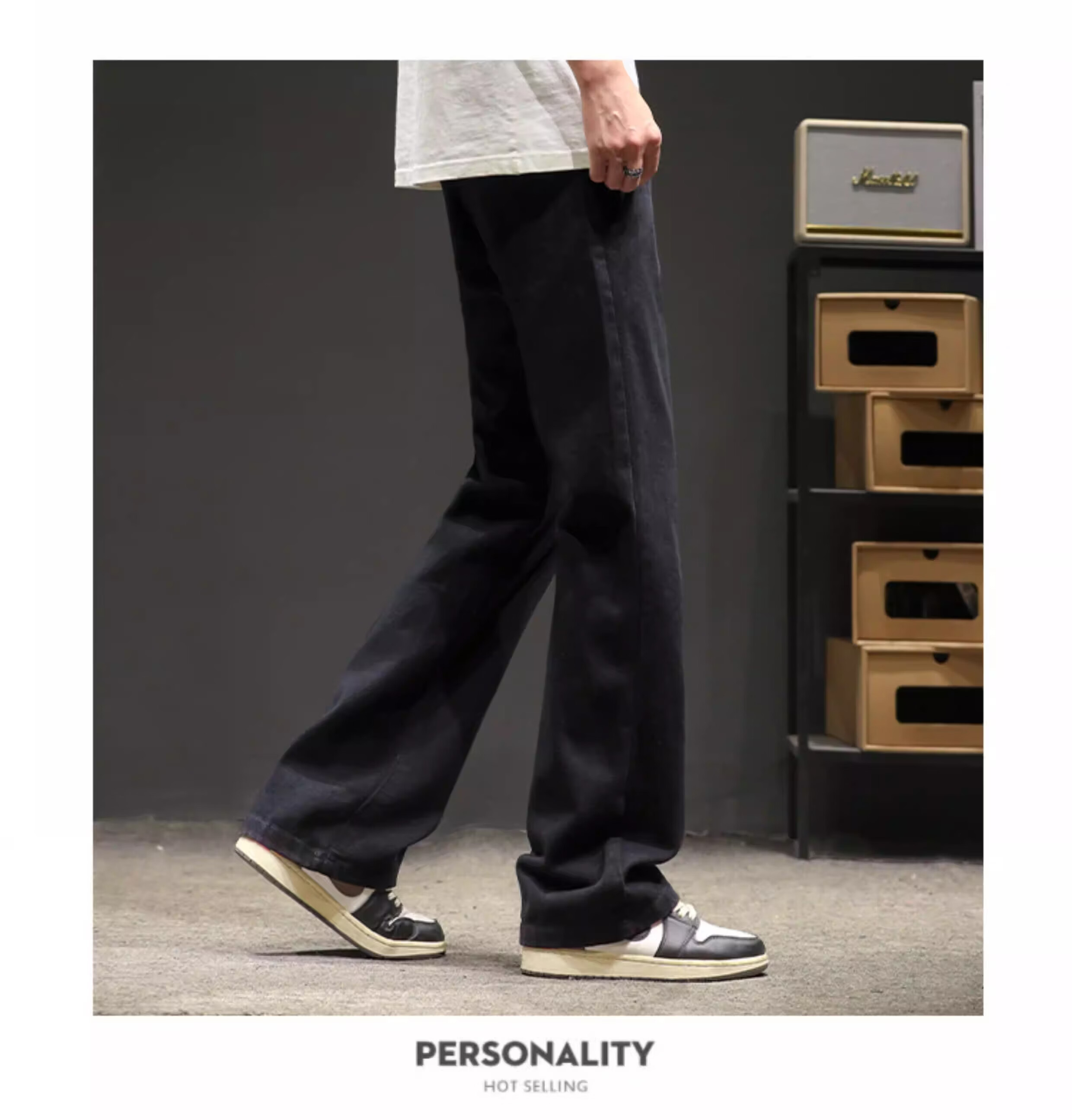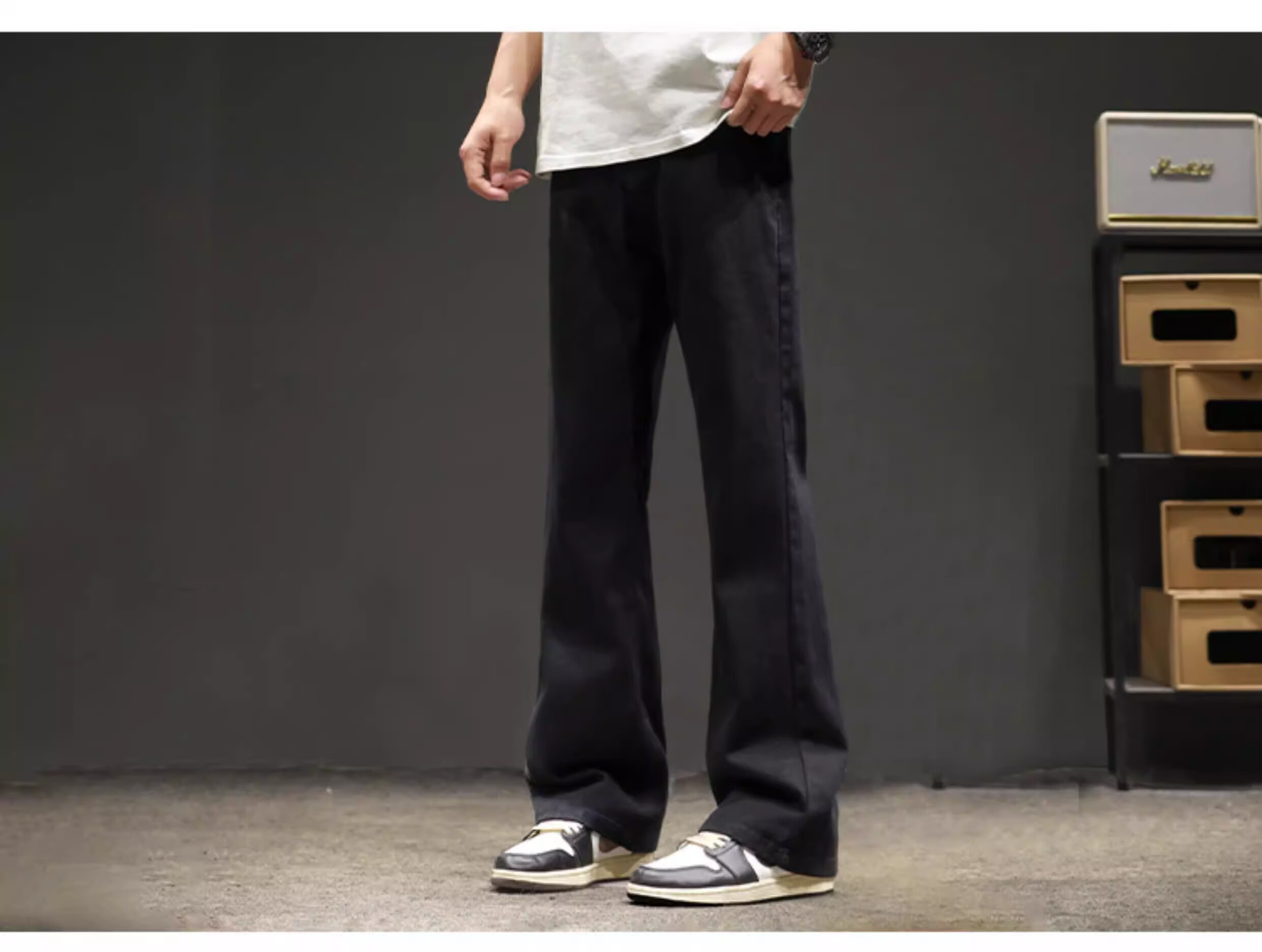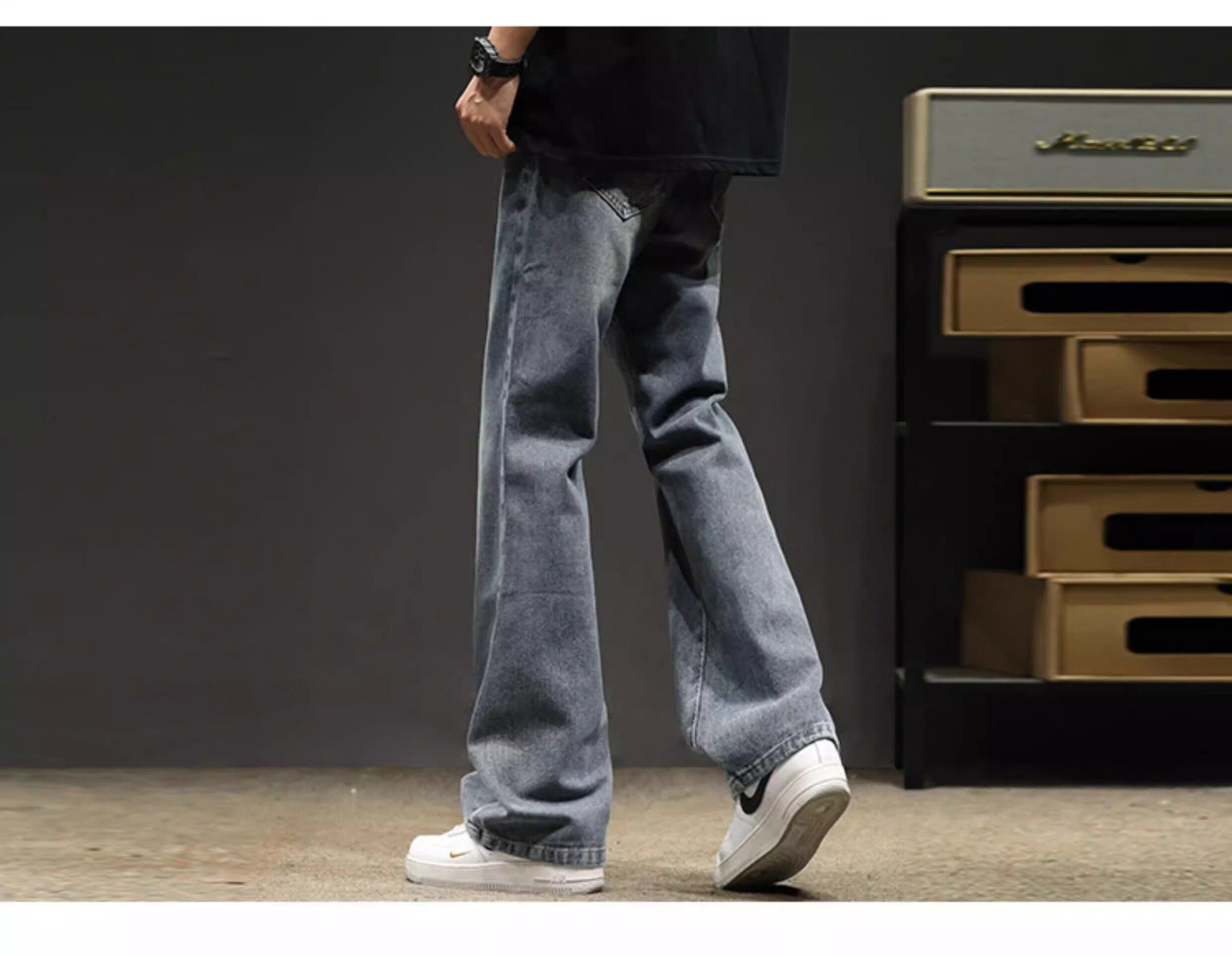 真维斯(Jeanswest)2026秋冬季黑色微喇牛仔裤男款美式高街宽松直筒简约休闲加绒裤子 随机款 M