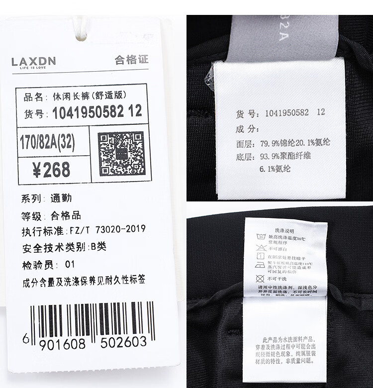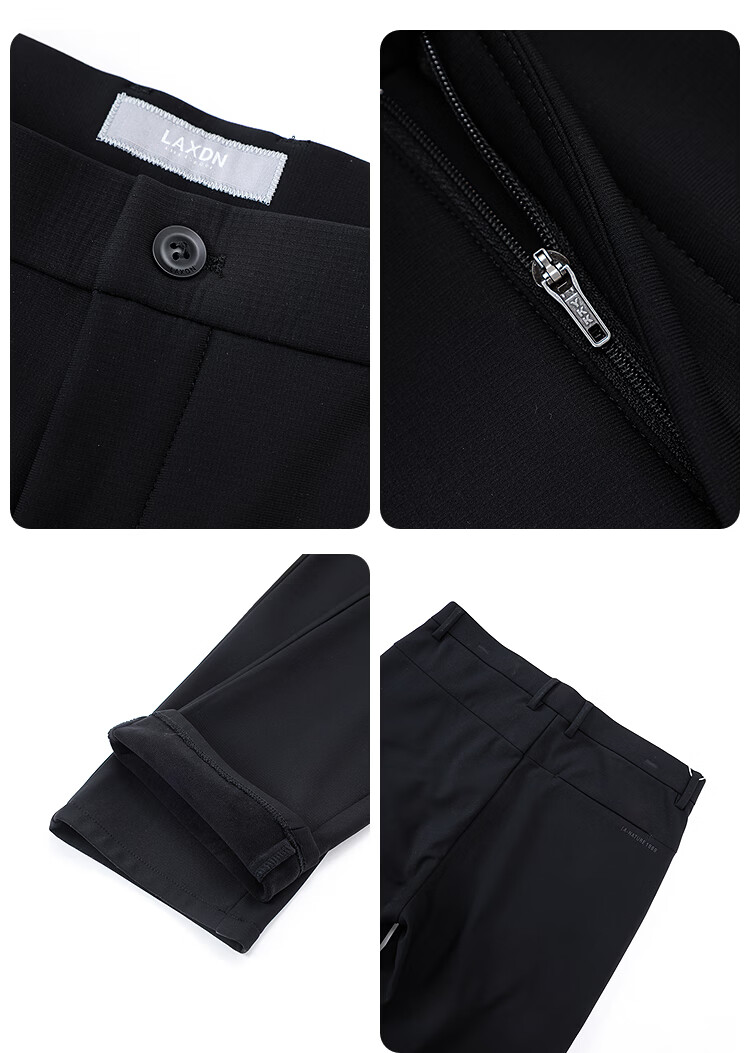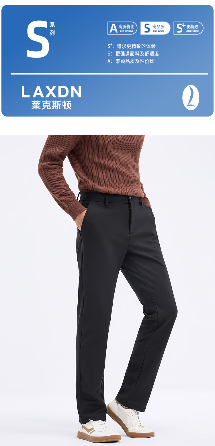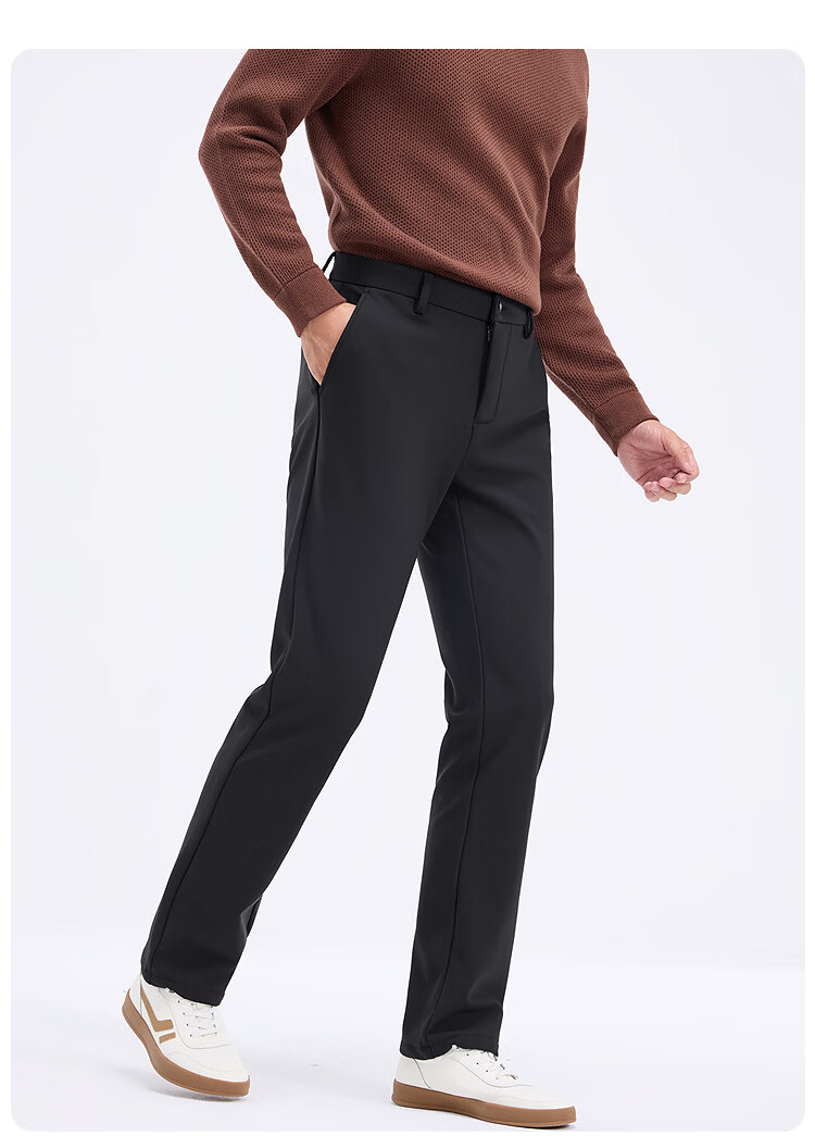 莱克斯顿(laxdn)休闲裤男秋冬零压四面弹加绒保暖柔软亲肤【商场同款】直筒裤子男 深黑 33