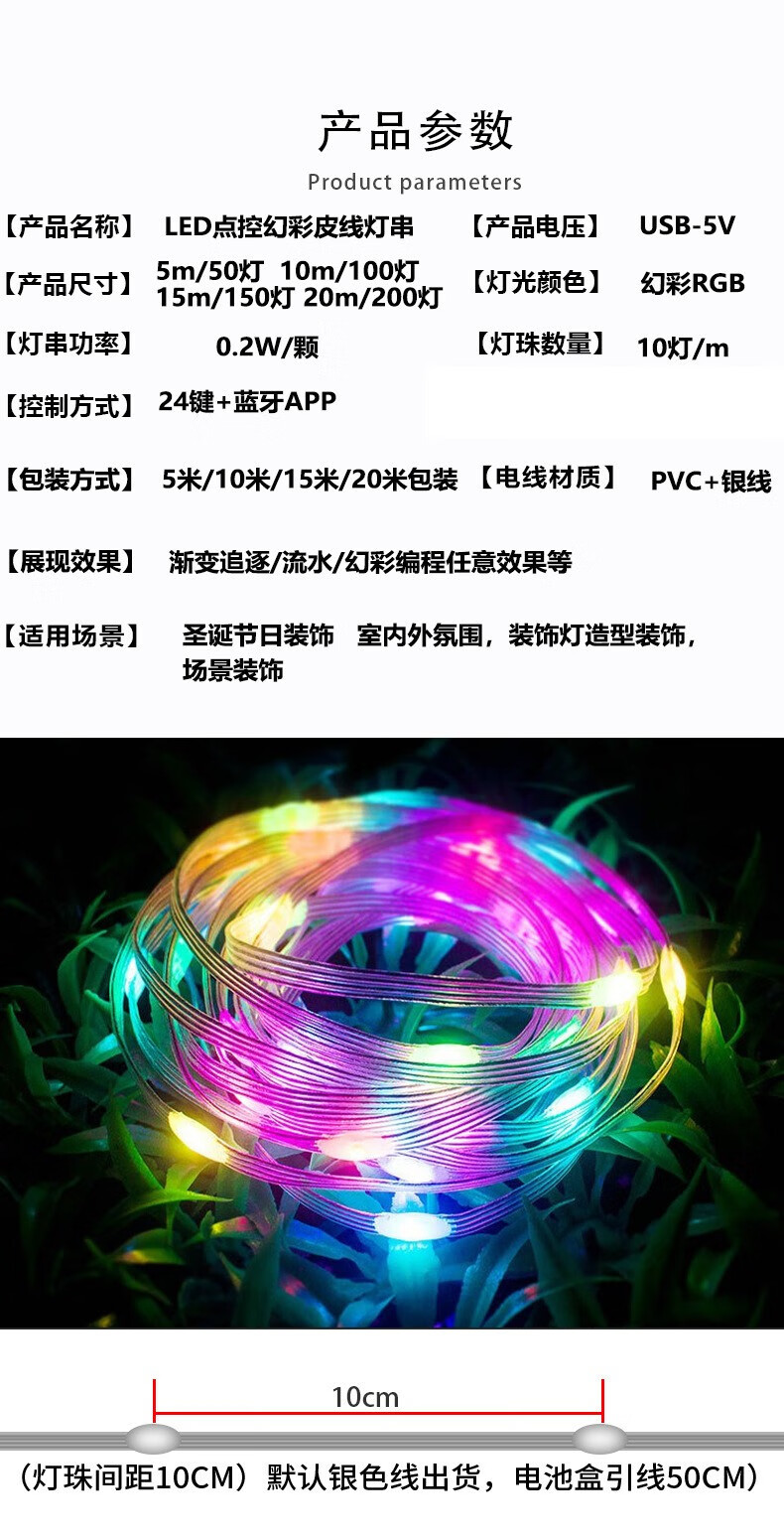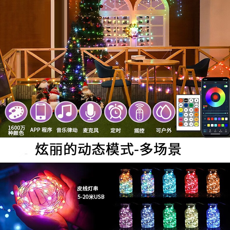 维亿曼LED户外灯带rgb氛围灯流水跑马灯串庭院过年氛围灯新年春节彩灯 20米-200灯蓝牙app+摇控