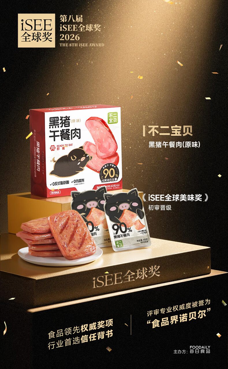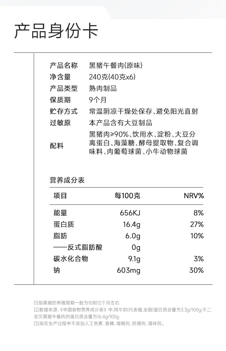 不二宝贝儿童早餐 黑猪午餐肉独立包装无添加 儿童零食早餐搭三明治240g