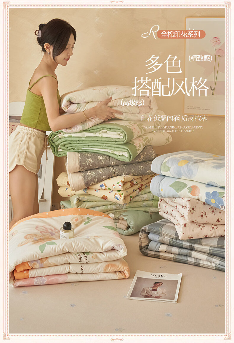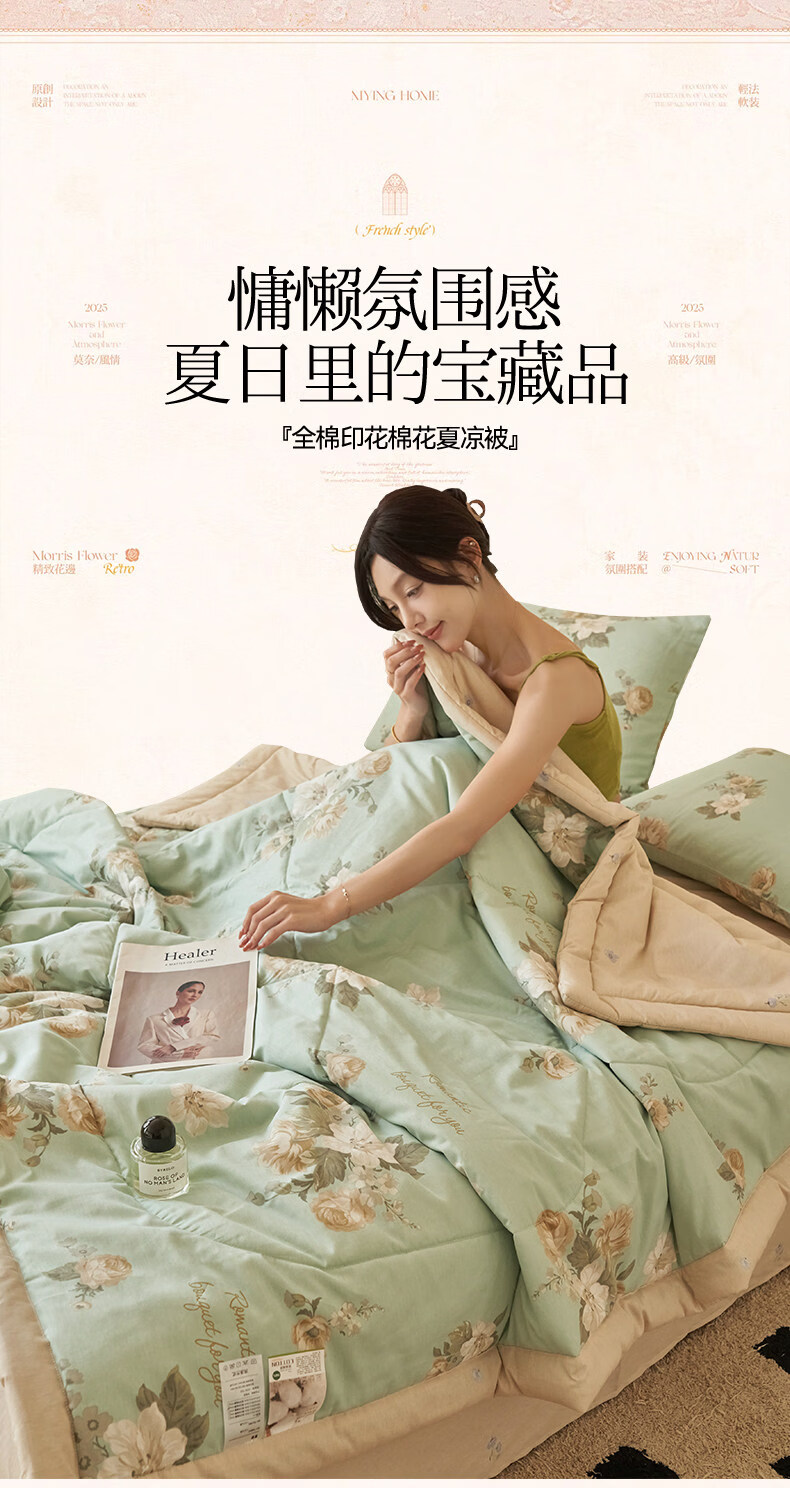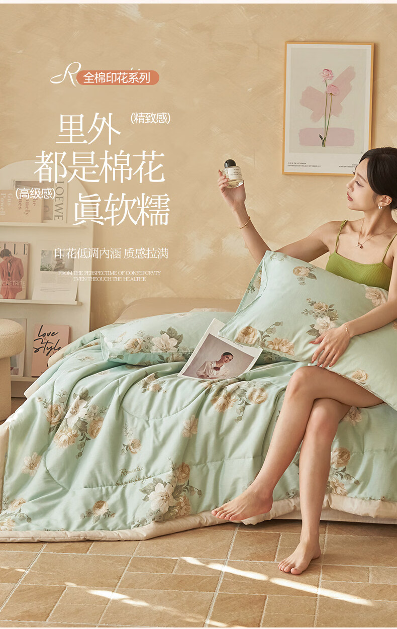 阿尔皮纳袋鼠全棉棉花夏被空调夏凉被子纯棉可机洗宿舍夏凉被夏季被芯薄被子 仙境繁花【母婴材质面料裸睡可机洗】 150*200cm-单人夏凉被【100%新疆棉花填充】