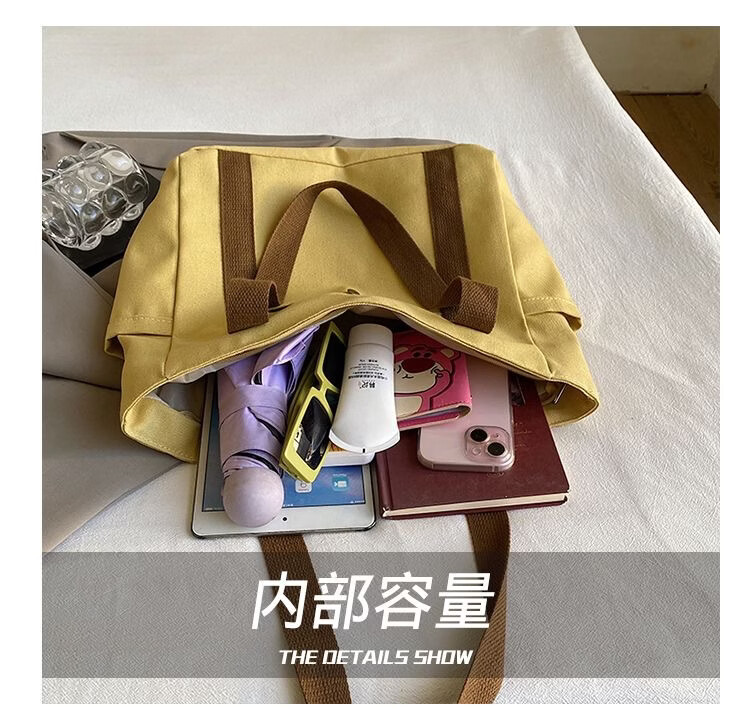 【实用】大容量托特帆布包上班外出高颜值通勤百搭文艺学生装书单 黑色带内衬+拉链 cm