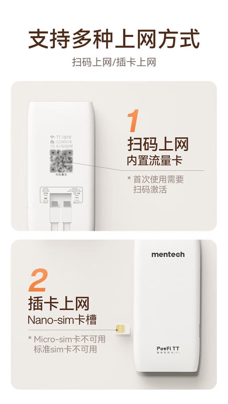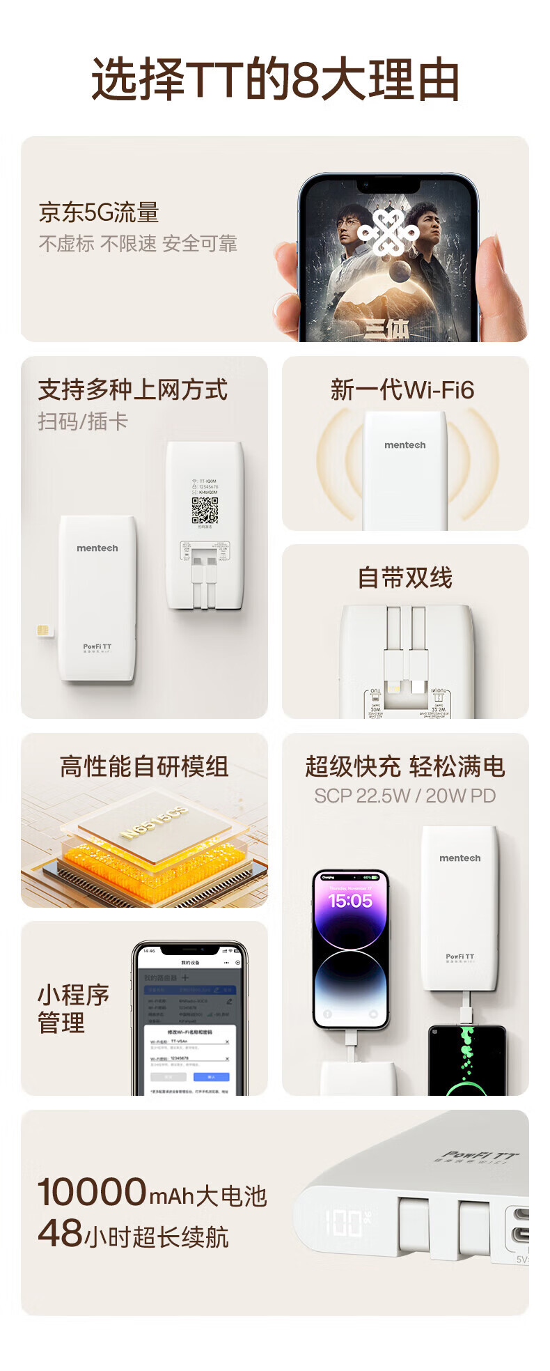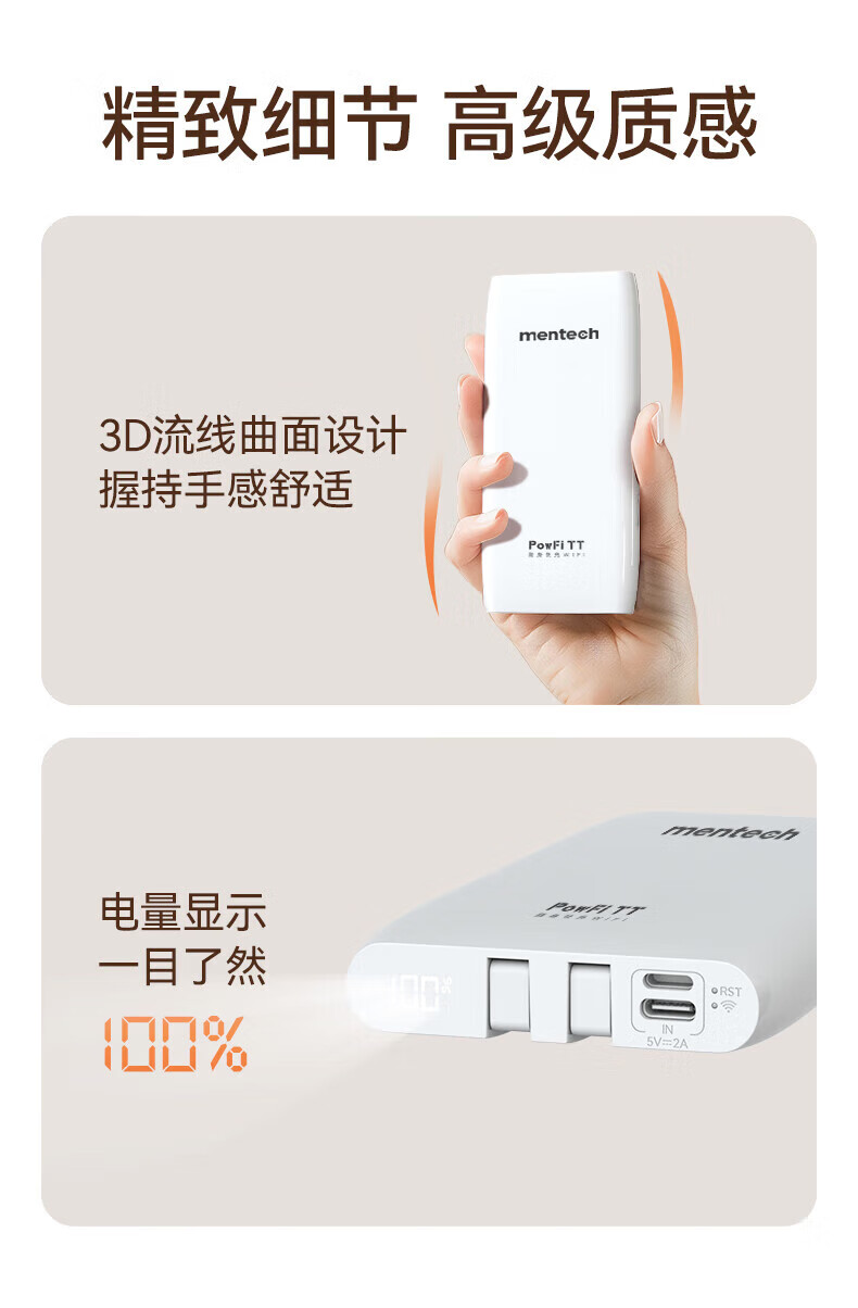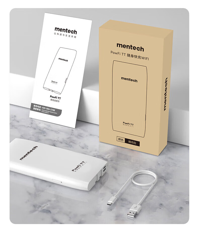mentech 美炭|TT 5G高速随身Wi-Fi 内置移动官方流量卡可外插卡 10000毫安充电宝二合一「京东官方流量」 【国家3C认证】