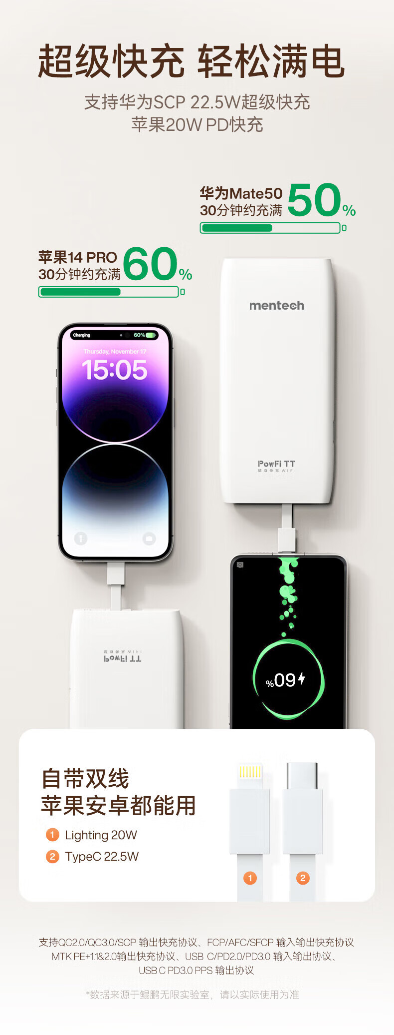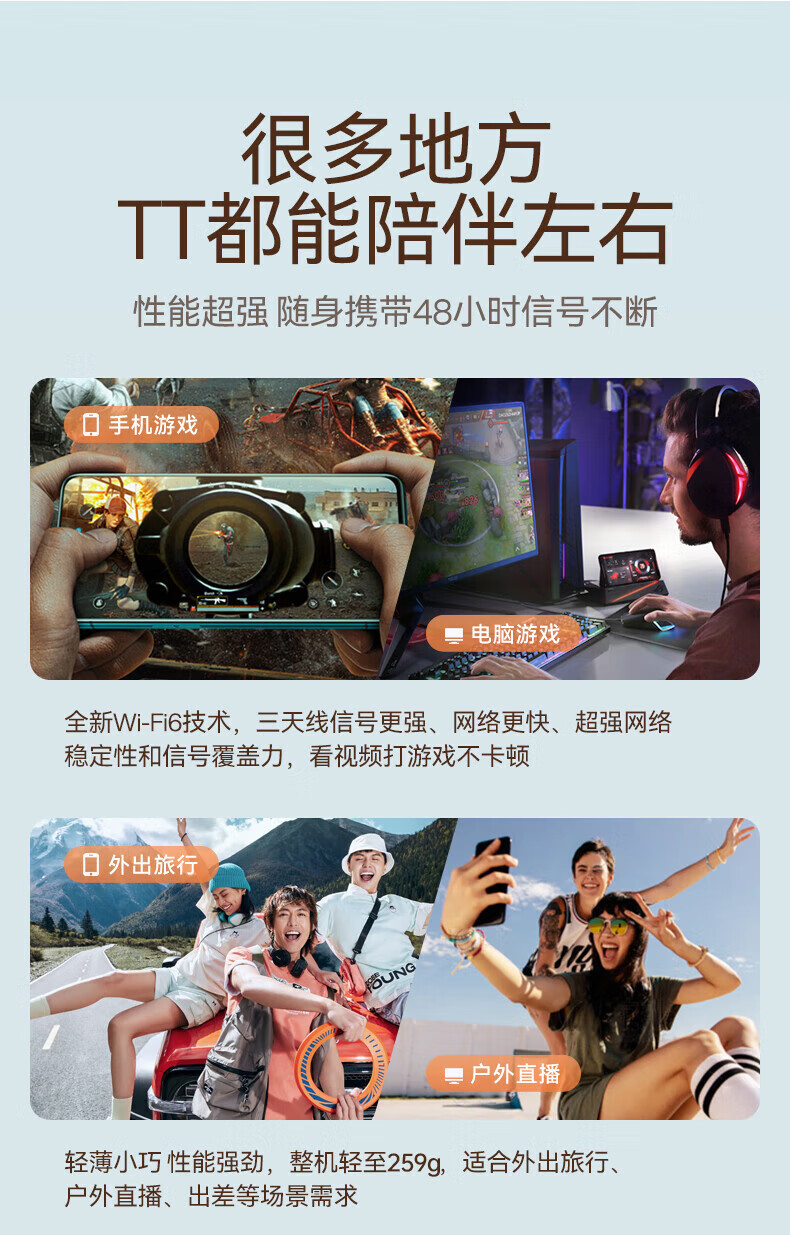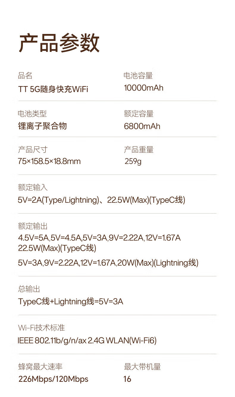 mentech 美炭|TT 5G高速随身Wi-Fi 内置移动官方流量卡可外插卡 10000毫安充电宝二合一「京东官方流量」 【国家3C认证】