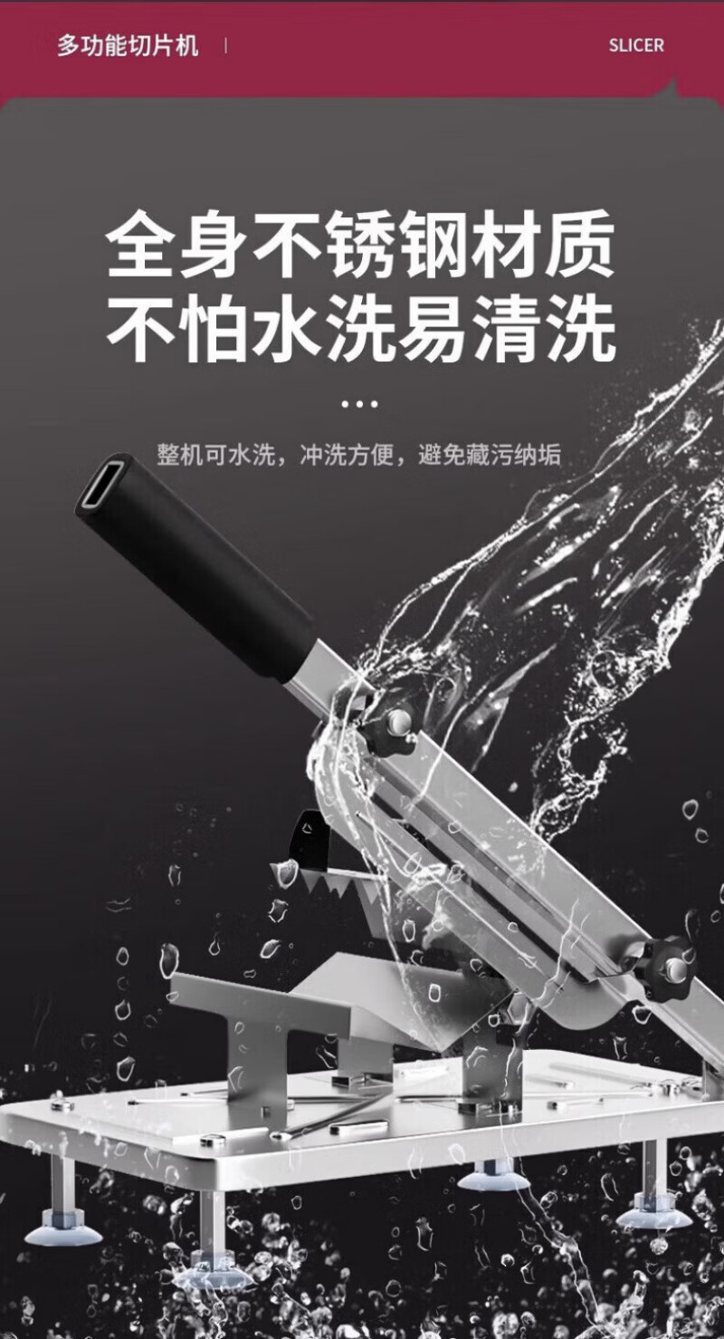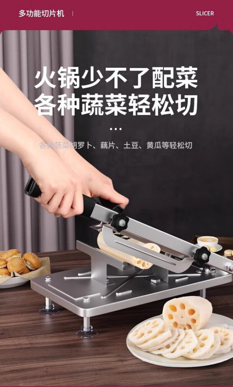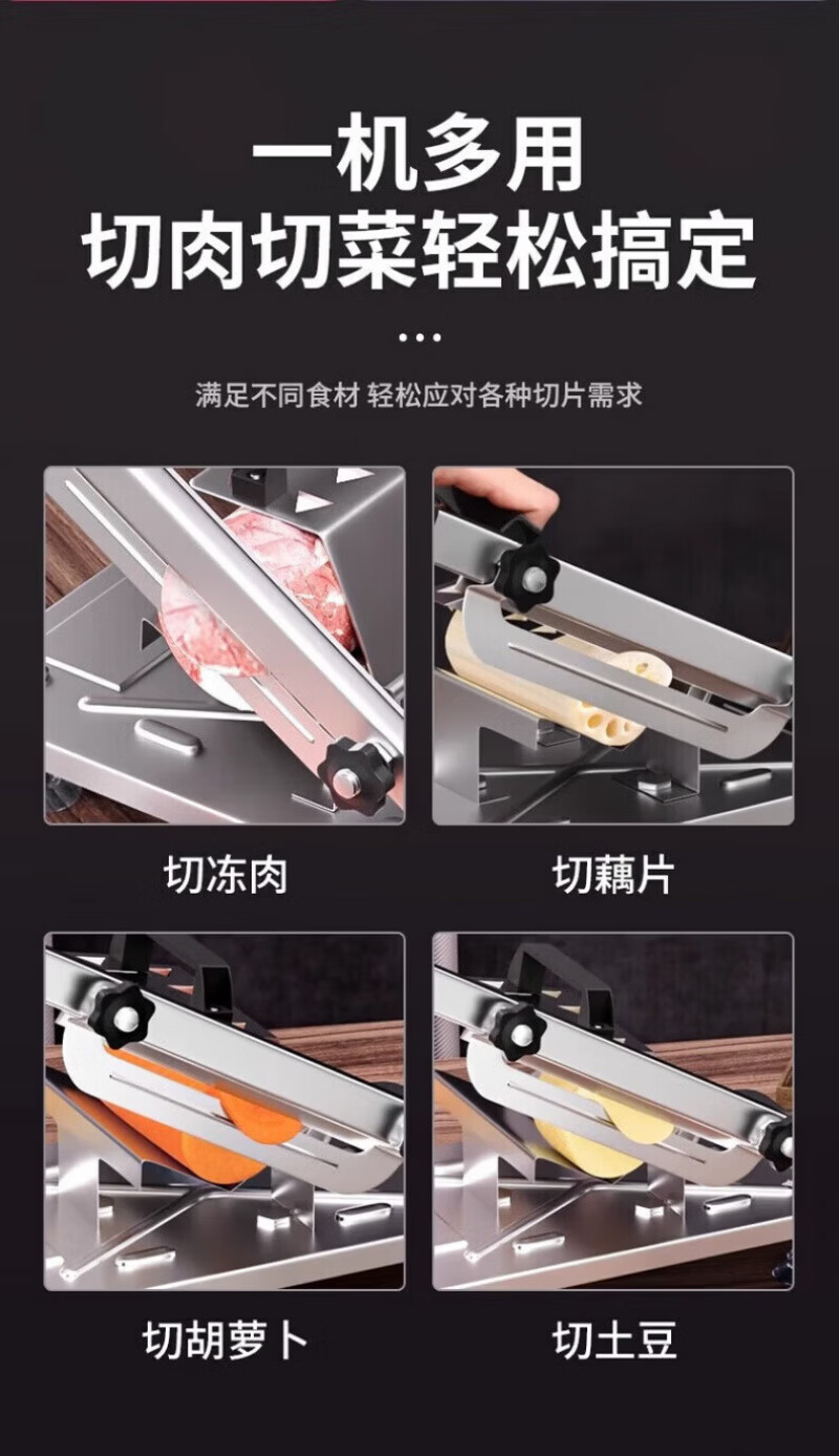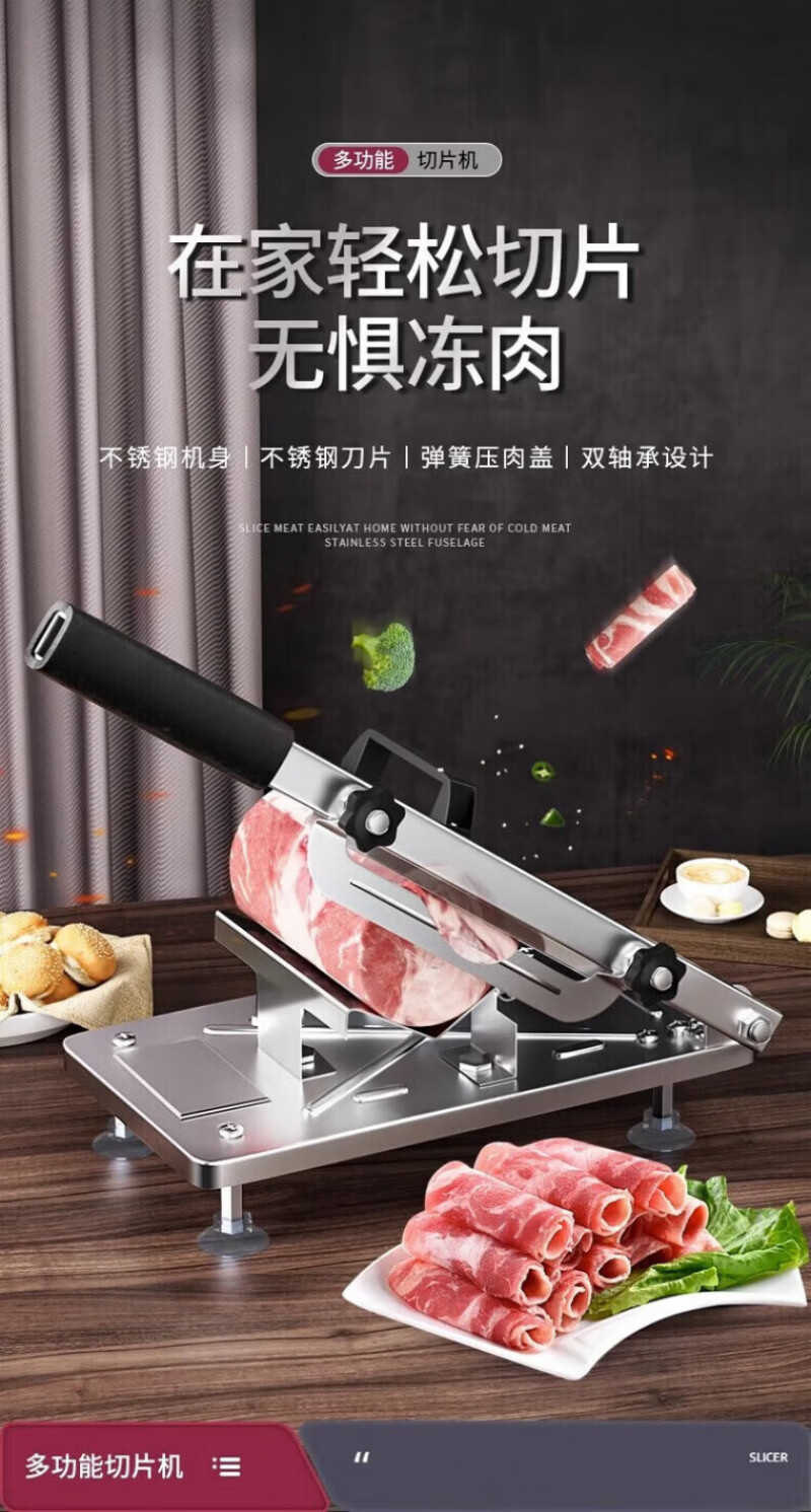 RSRDDY德国切羊肉卷切片机家用商用小型鲜肉手动切年糕刀冻肥牛羊肉卷切 食品级304大款+原装刀片1+冻肉袋10个