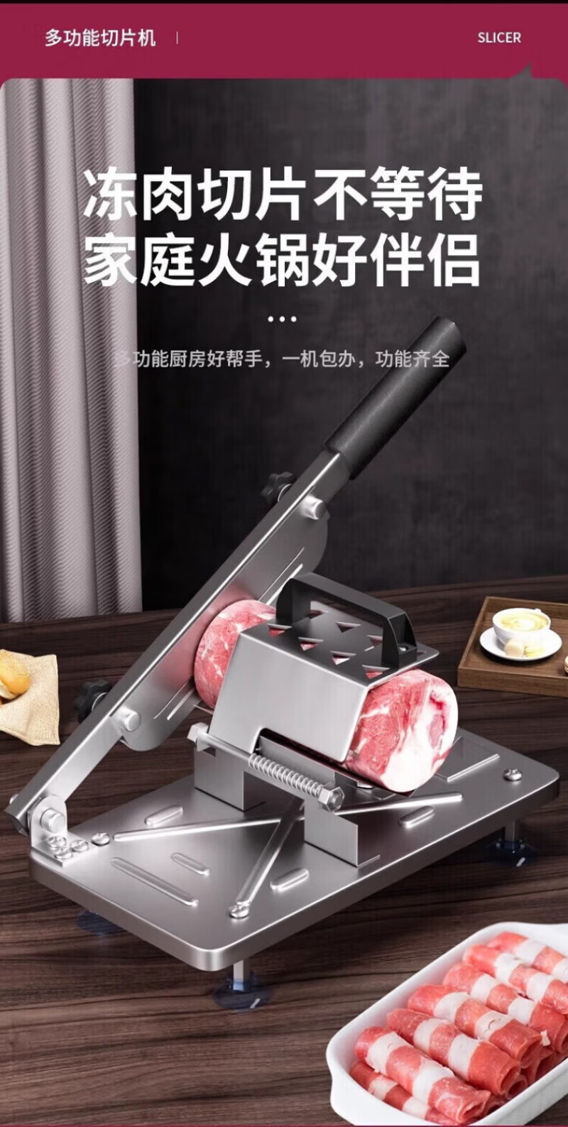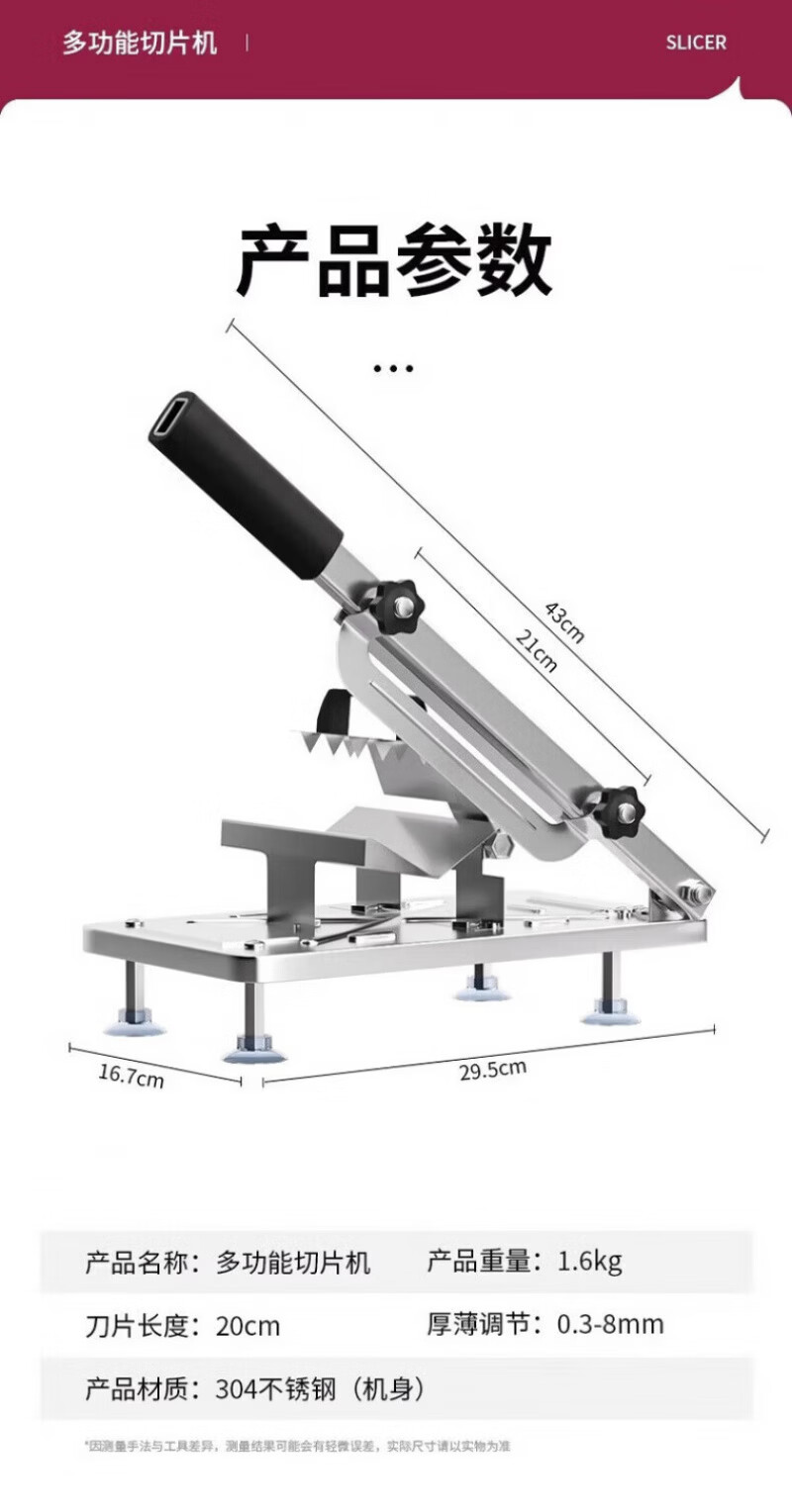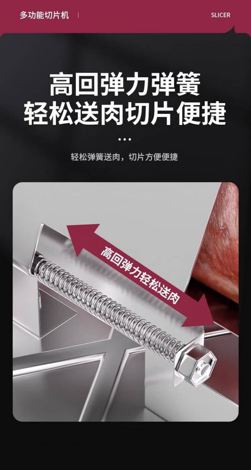 RSRDDY德国切羊肉卷切片机家用商用小型鲜肉手动切年糕刀冻肥牛羊肉卷切 食品级304大款+原装刀片1+冻肉袋10个