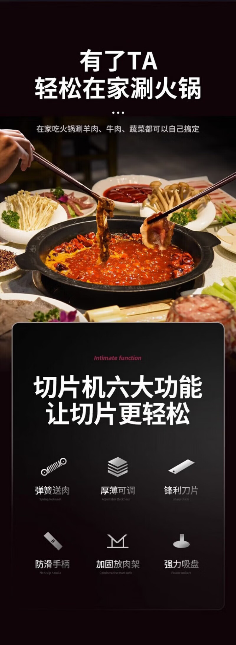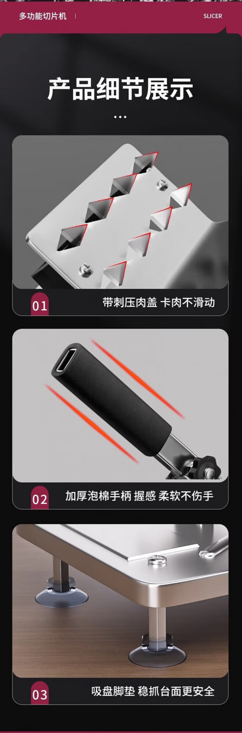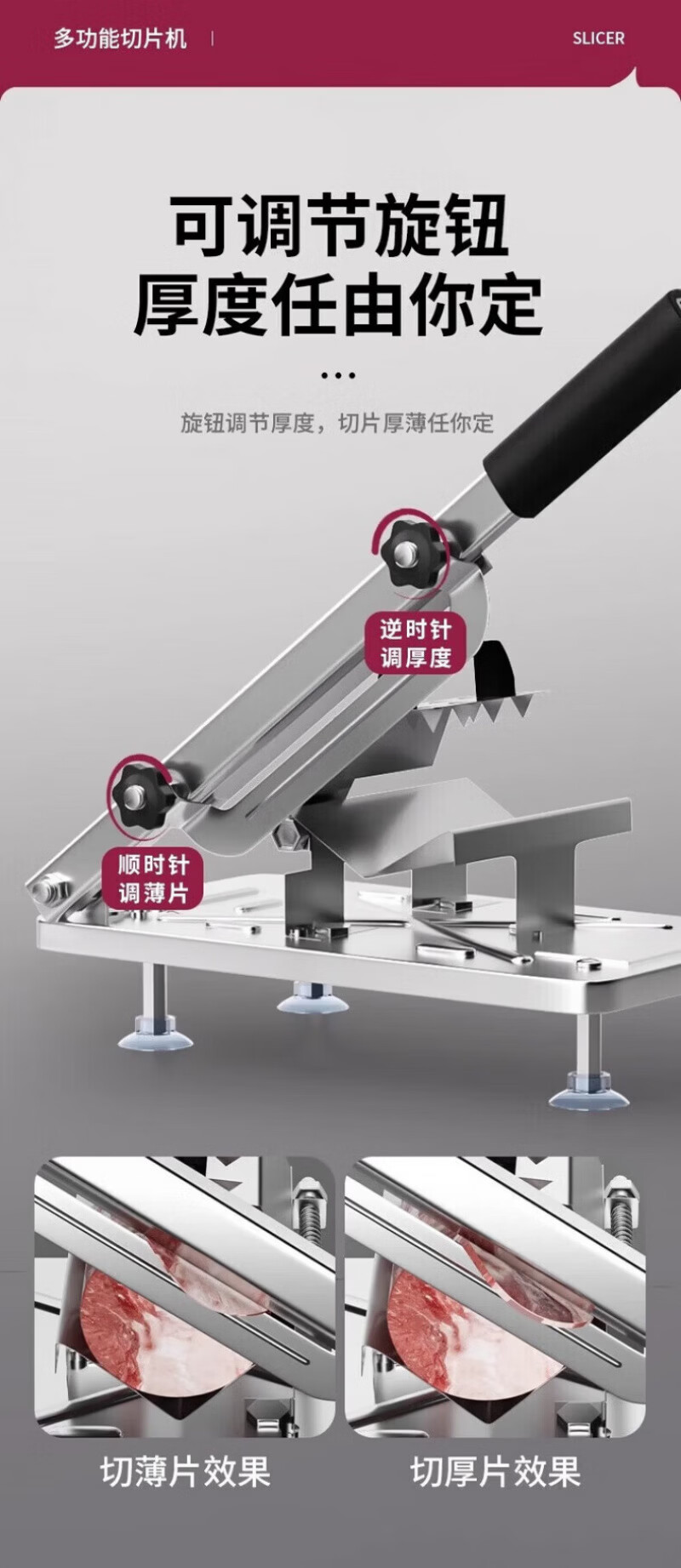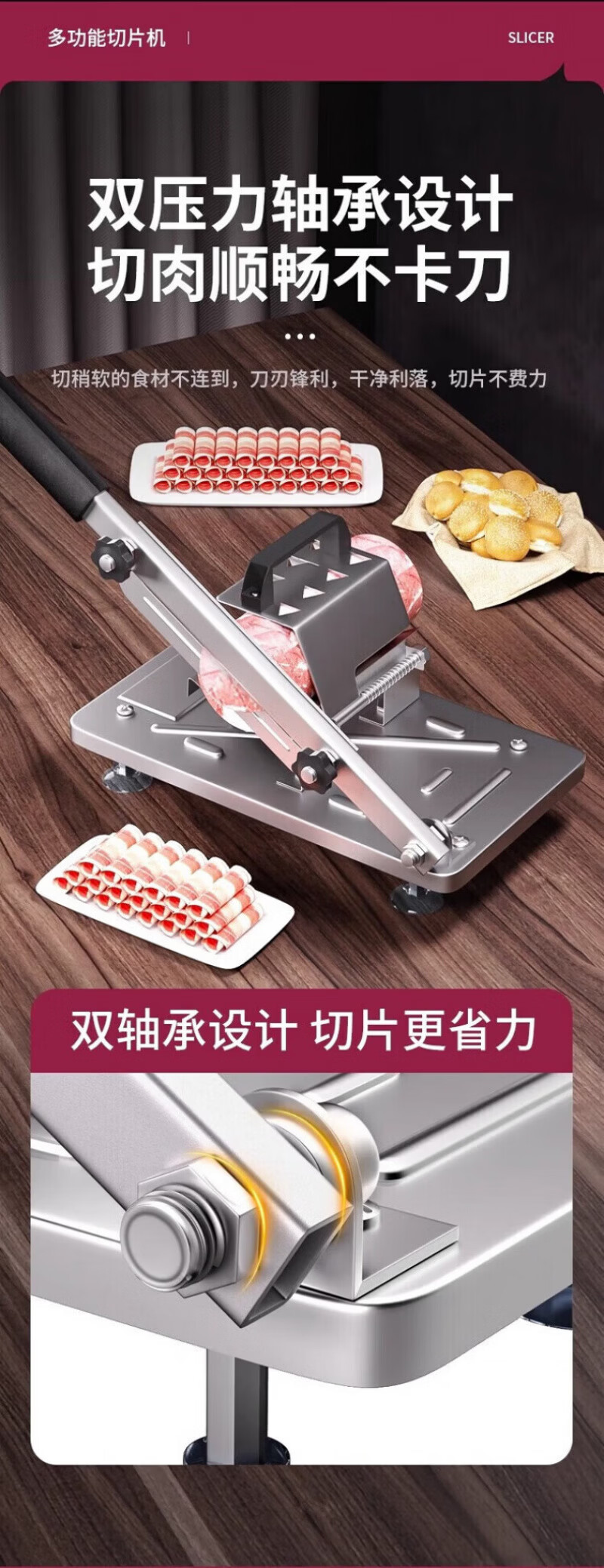RSRDDY德国切羊肉卷切片机家用商用小型鲜肉手动切年糕刀冻肥牛羊肉卷切 食品级304大款+原装刀片1+冻肉袋10个