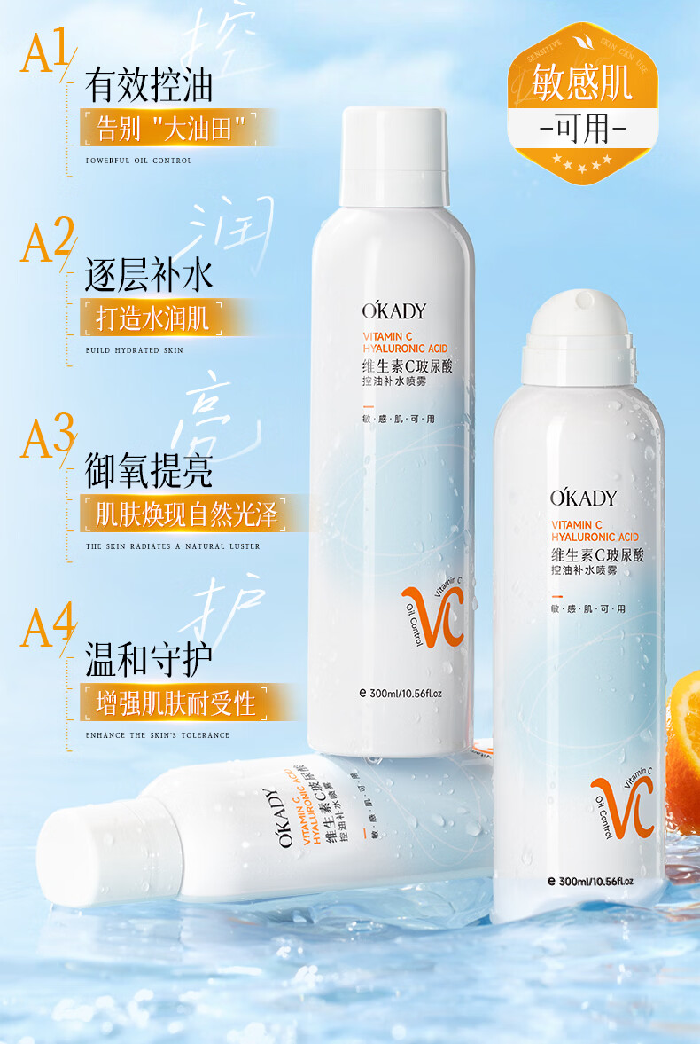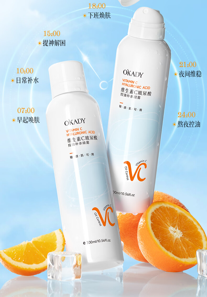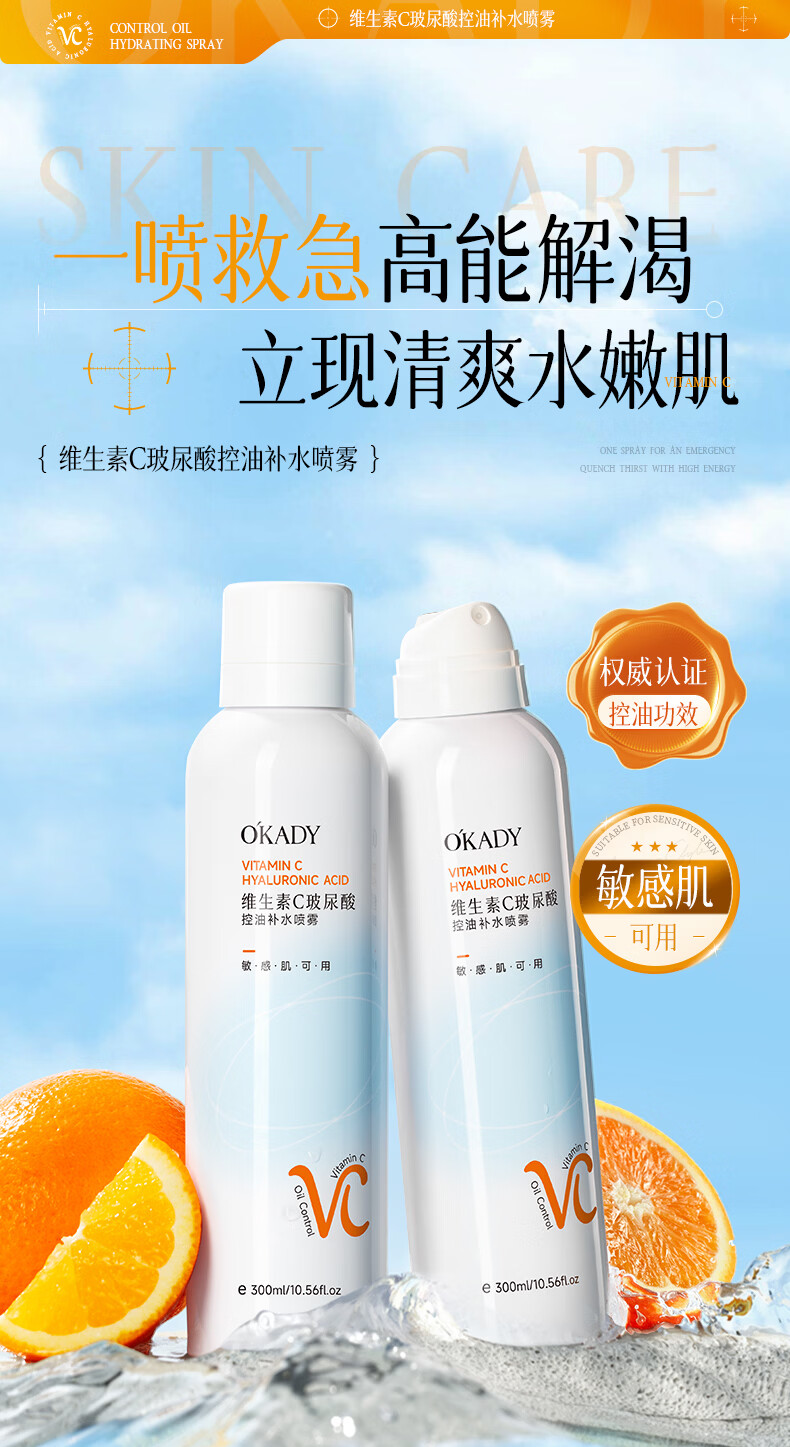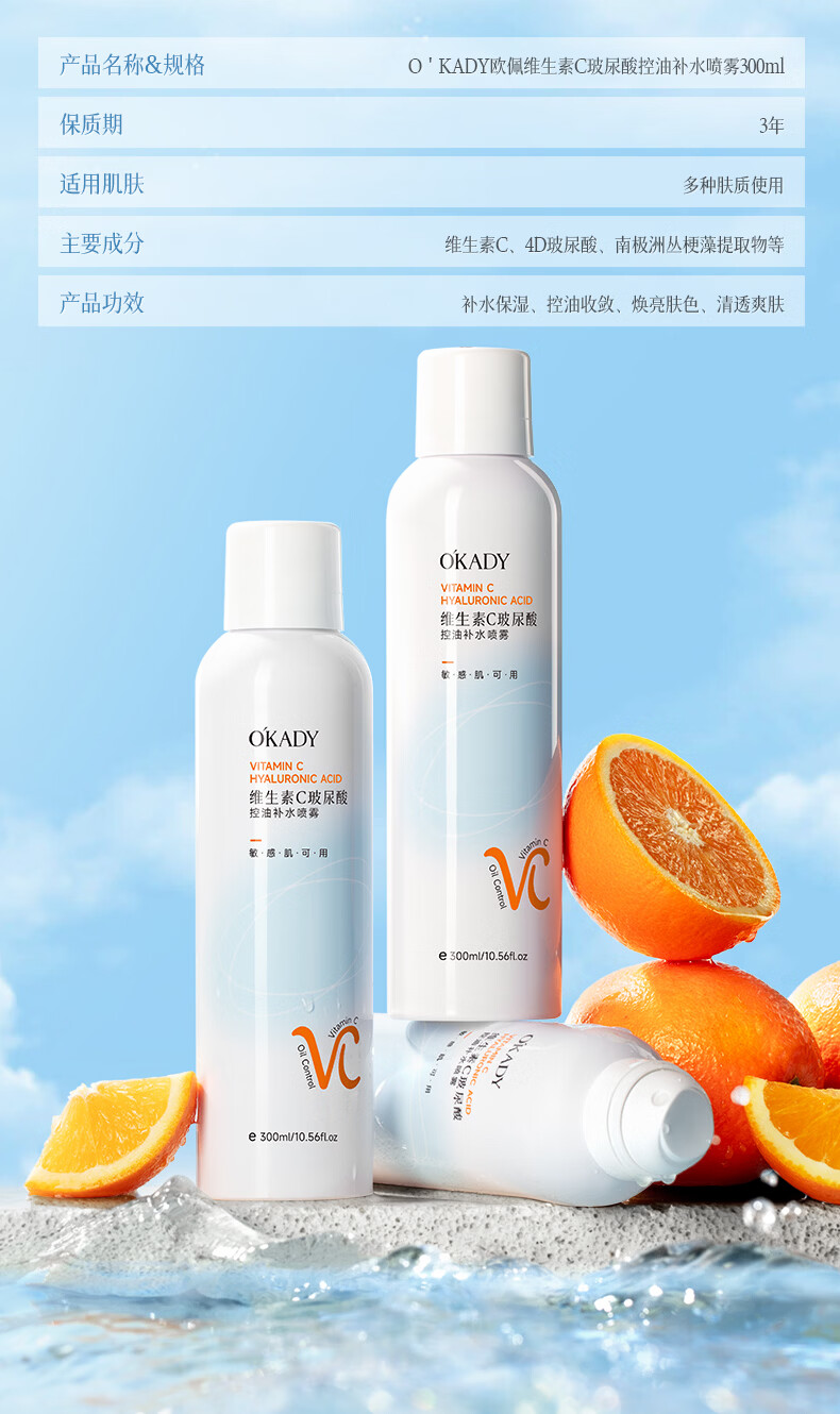 O'KADY维生素C玻尿酸控油补水喷雾300ml【买一送一】 vc控油补水喷雾300ml