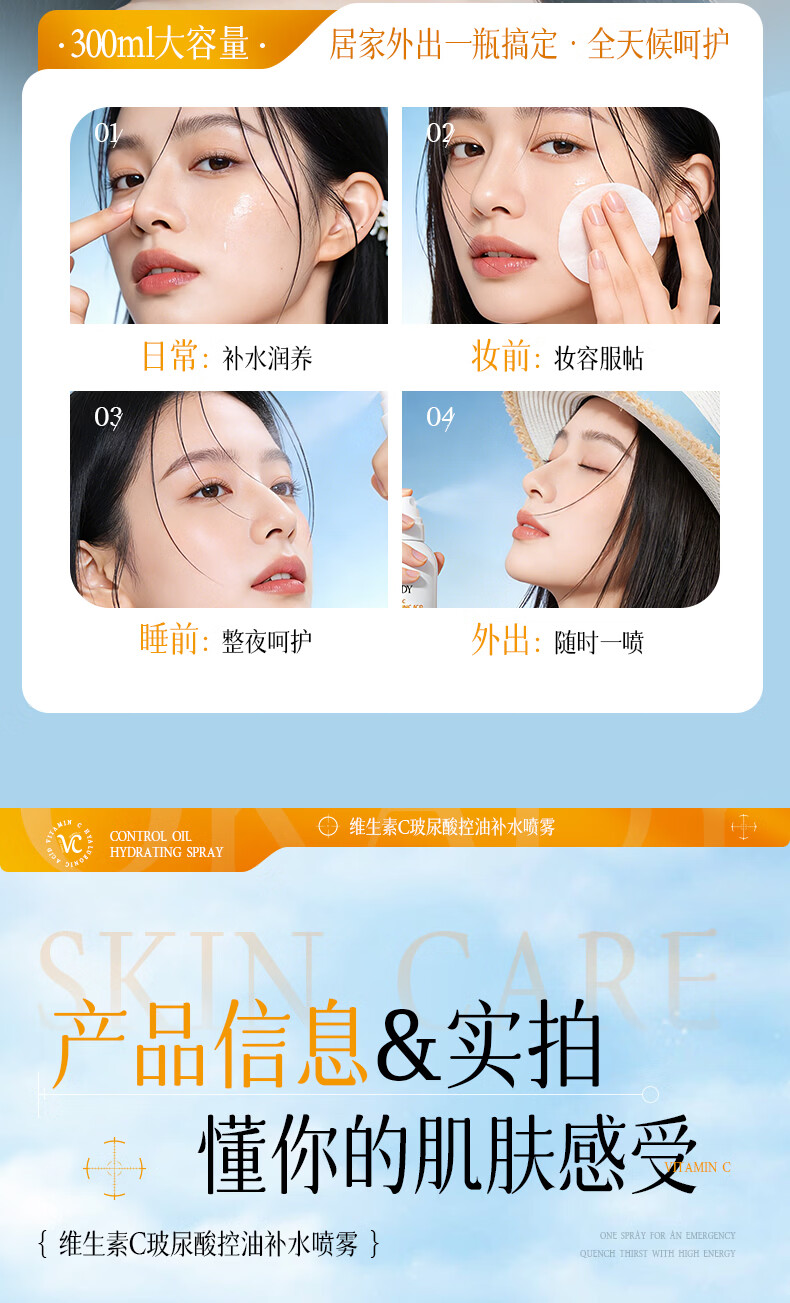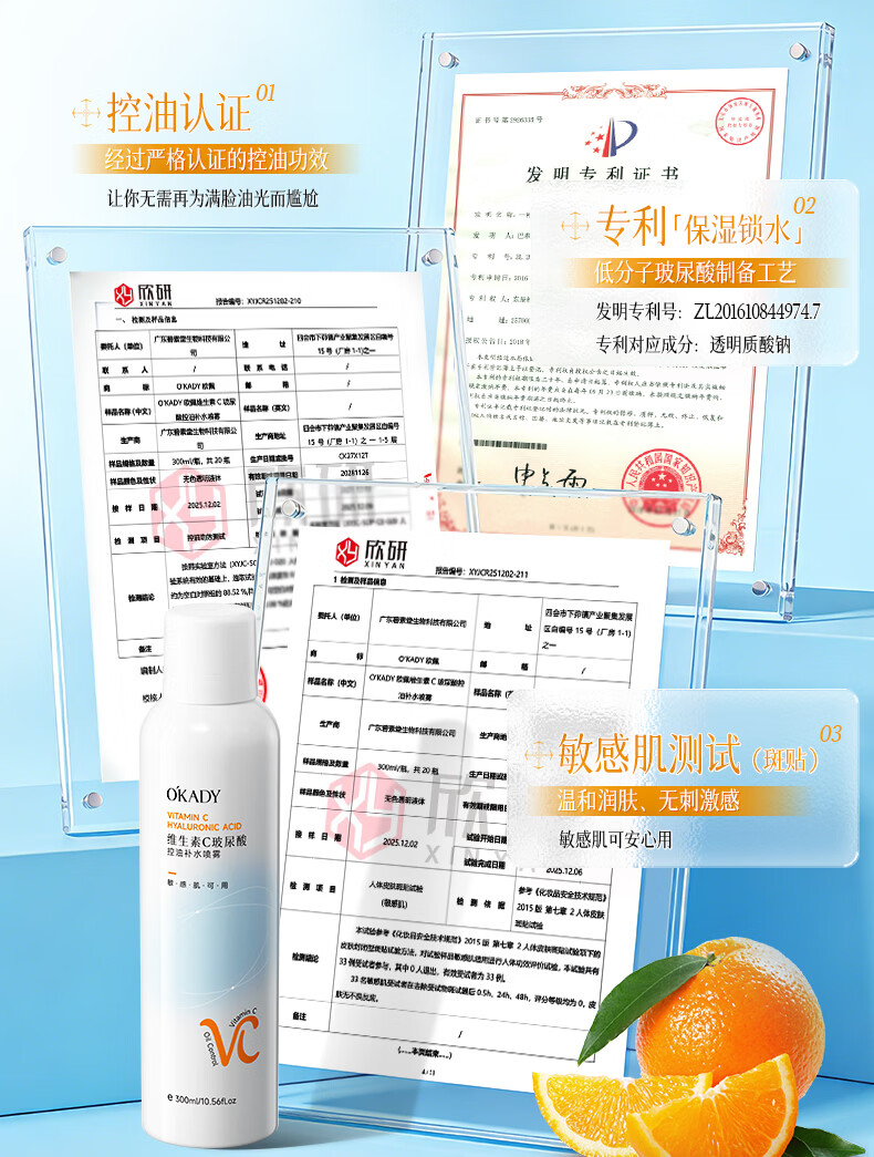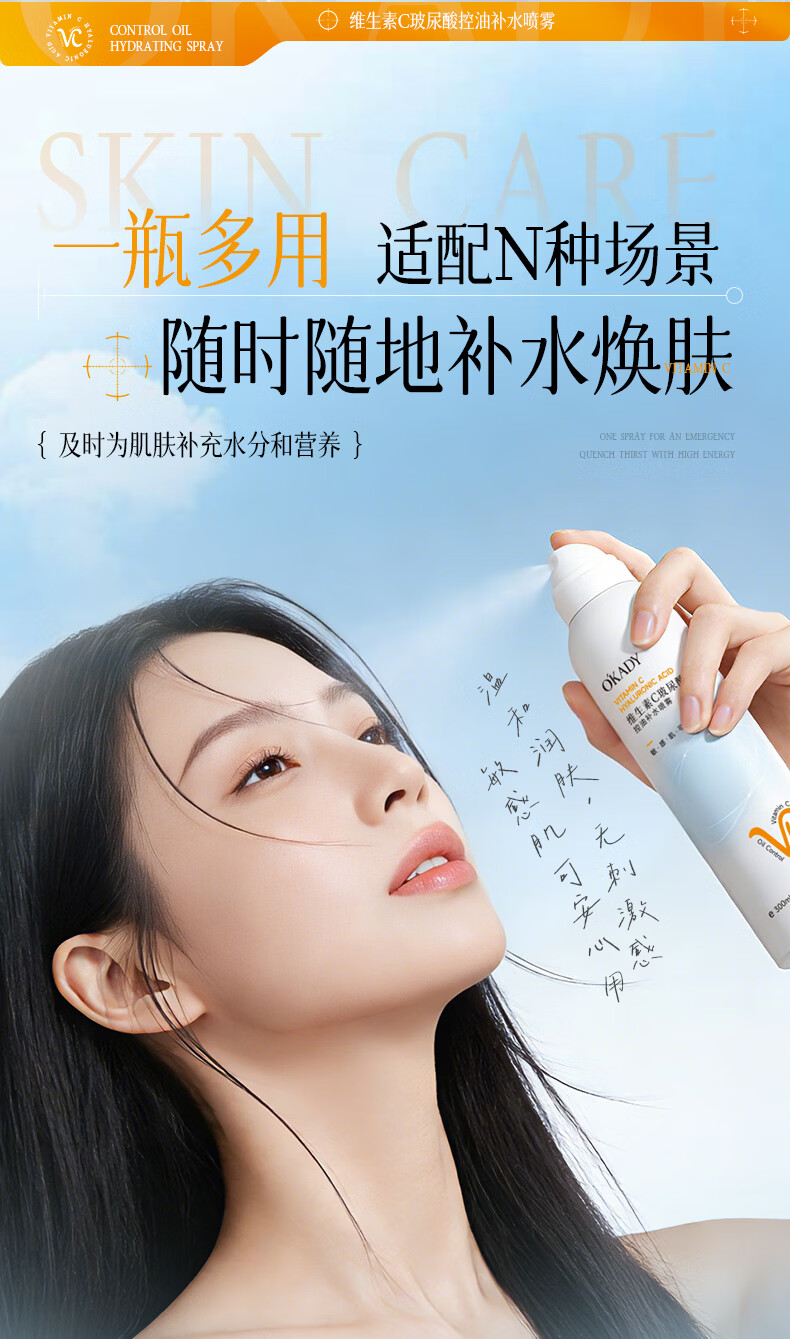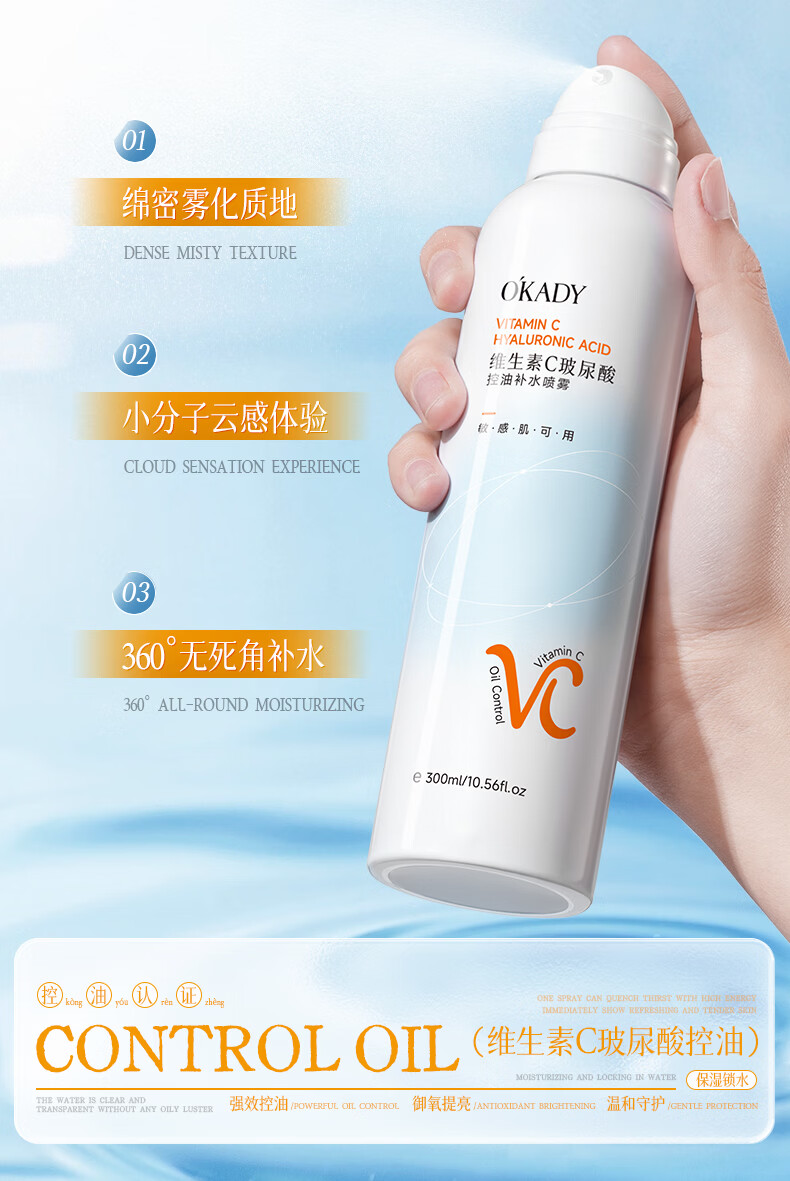 O'KADY维生素C玻尿酸控油补水喷雾300ml【买一送一】 vc控油补水喷雾300ml