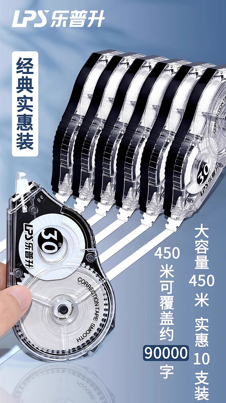乐普升9803修正带涂改带学生专用实惠装大容量修改带纠正消字带办公用品 2卡装/60米 9803修正带