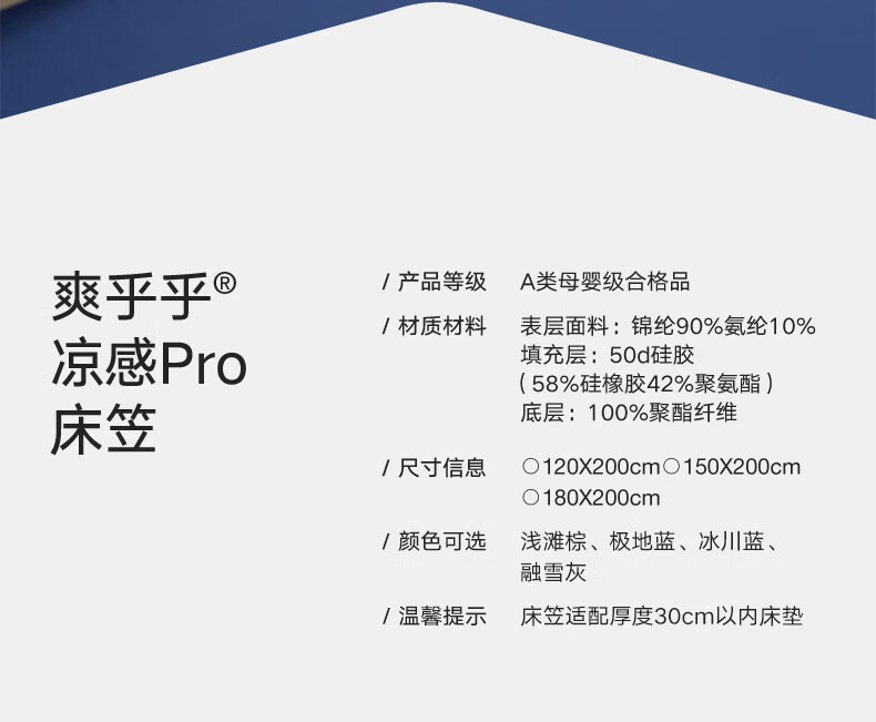 美朵嘉(MEDOGA)26新款Pro凉感床笠床罩全包7A级抗菌高弹力透气床单1.8x2米无痕套 极地蓝【A类凉感床笠】柔弹软凉 1.8米床(180cm*200cm*30cm)