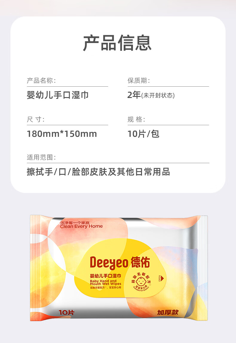 德佑湿巾小包 婴儿手口屁屁专用 加厚10抽*20包 宝宝便携出行湿纸巾