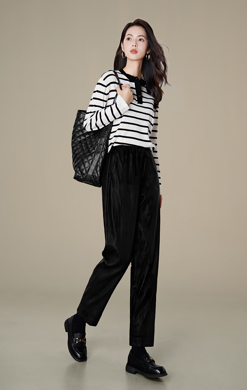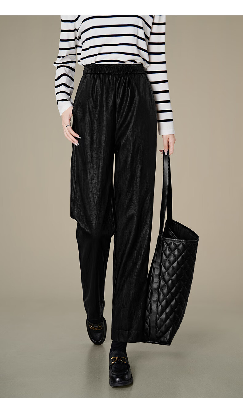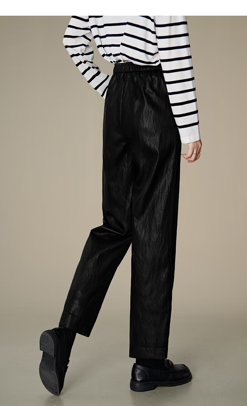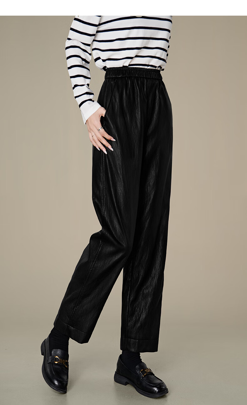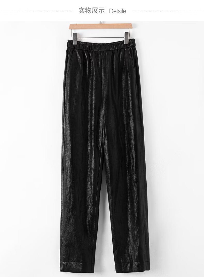 晚白【专享】2026年春款时尚蛋白皮柔软舒适高腰显瘦挺括利落烟管裤女 黑色 26