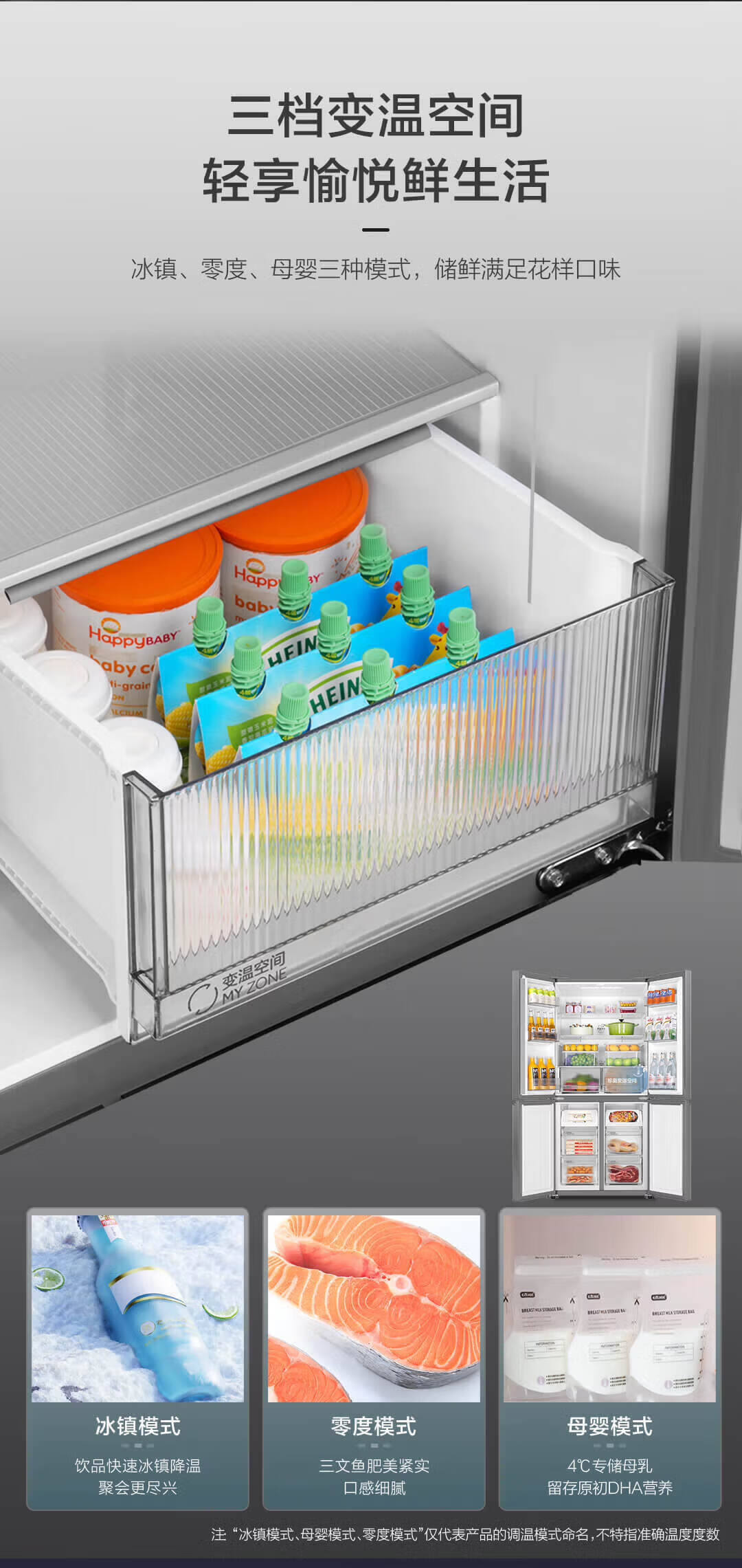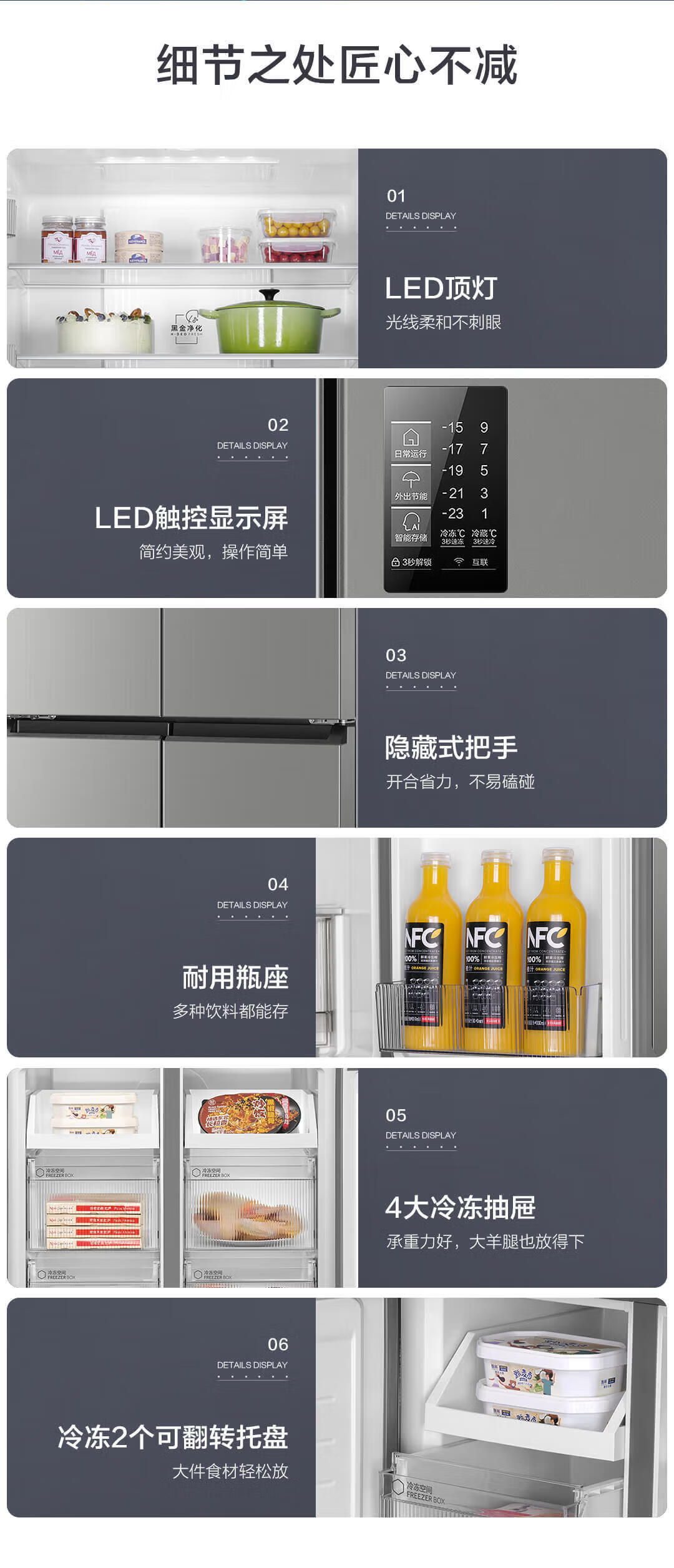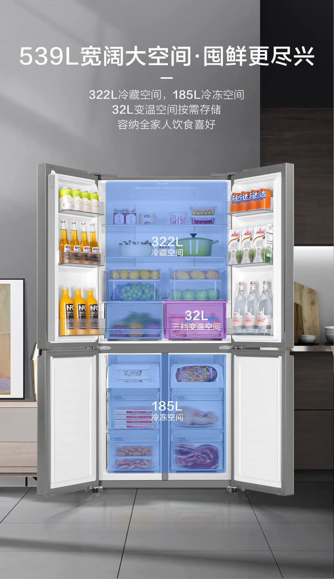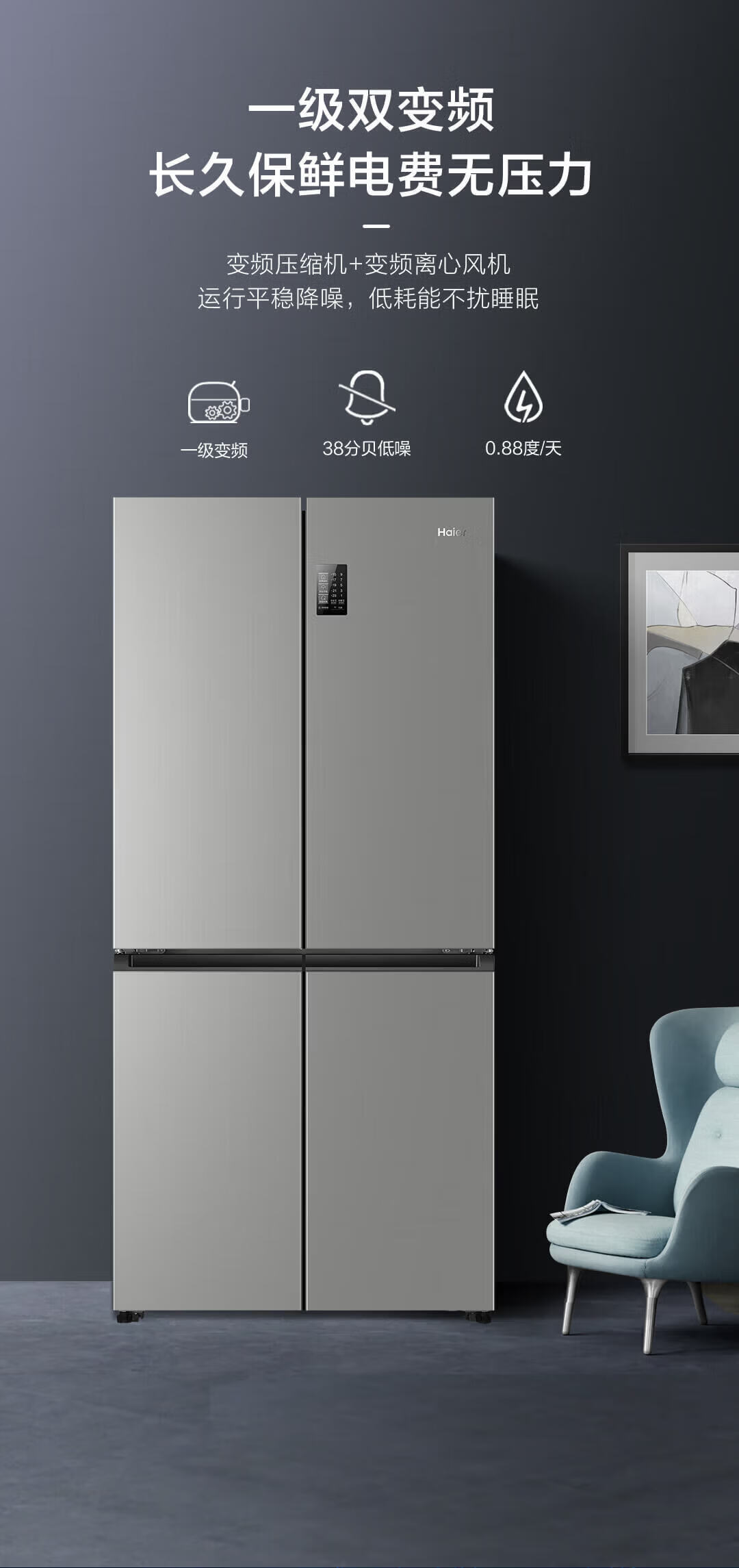 海尔(Haier)冰箱539升星蕴十字对开双开四开门黑金净化三档变温一级变频风冷无霜大容量家用电冰箱 BCD-539WGHTDEDH9U1