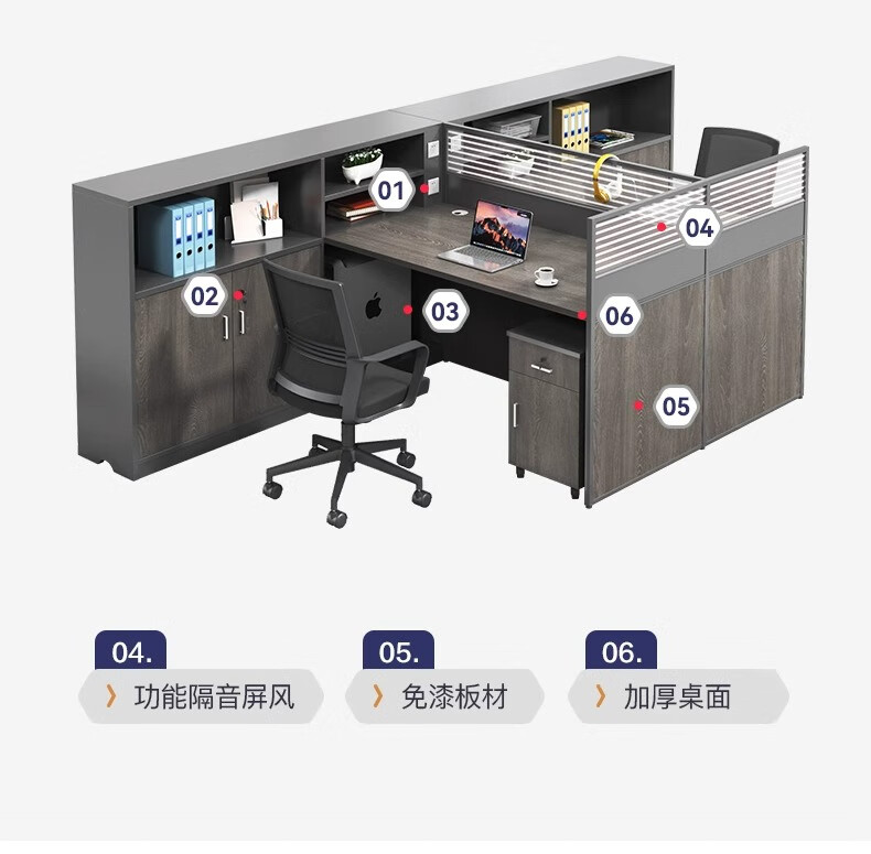 晶亿德美职员办公桌现代简约员工位办公室财务桌屏风卡座电脑桌 L型单人位
