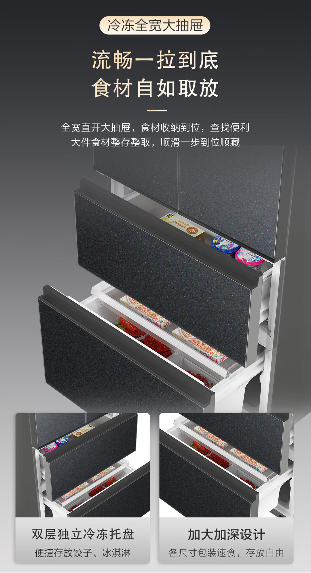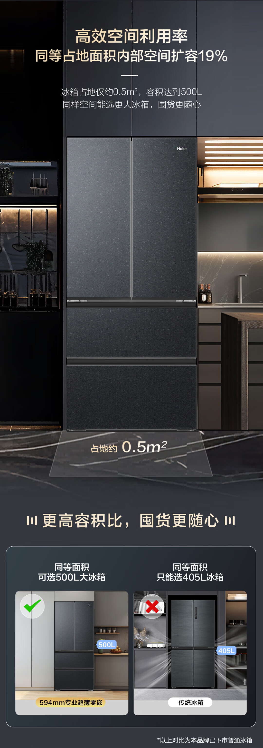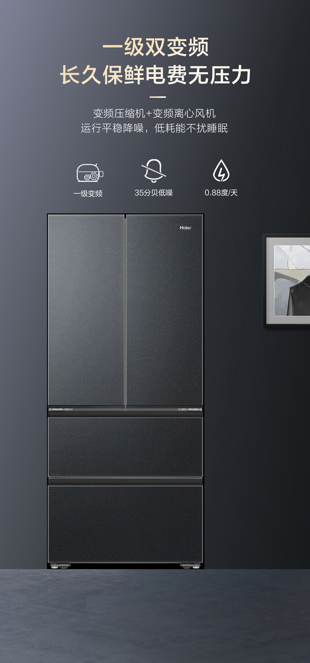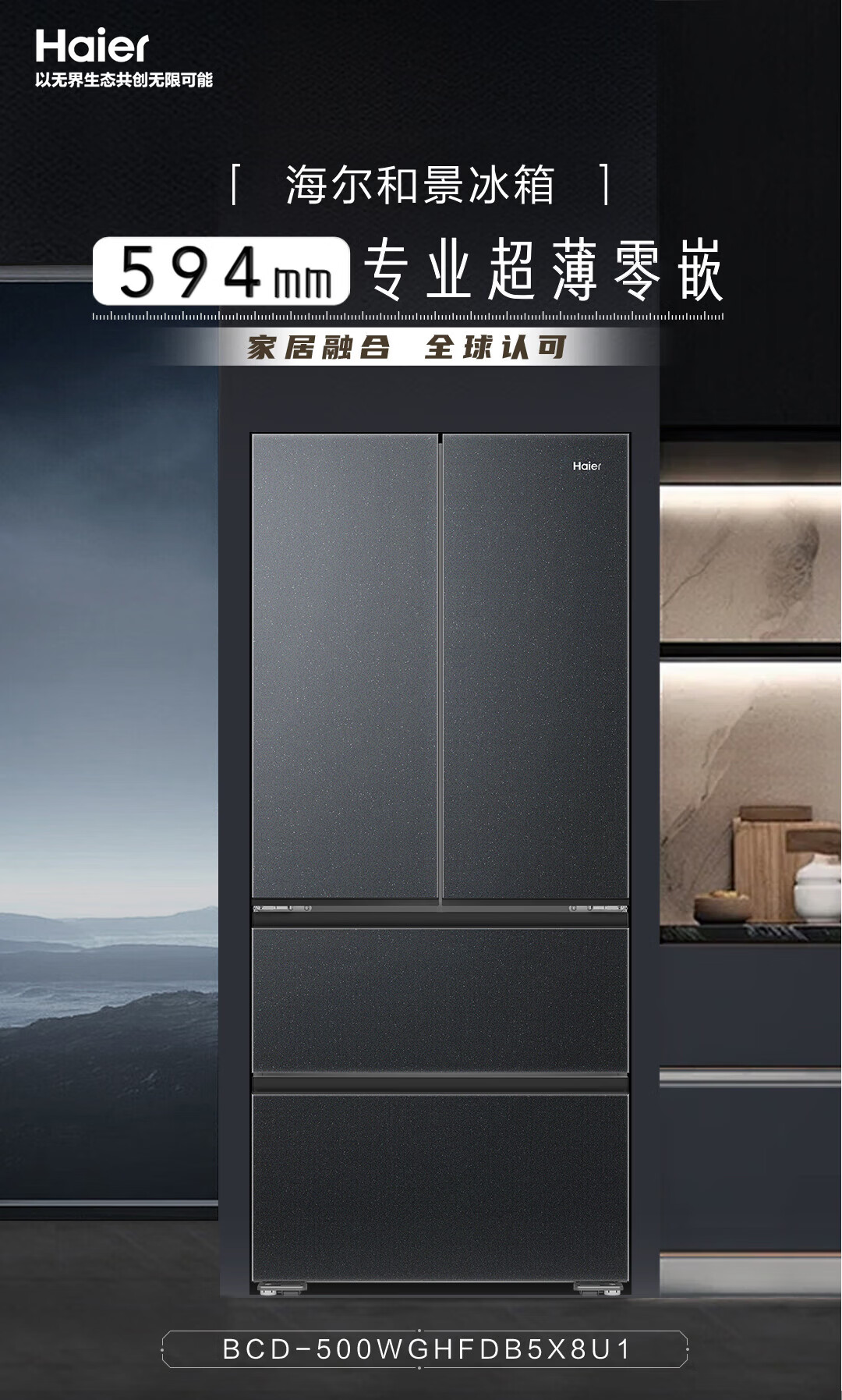 海尔(Haier)500升法式多门冰箱 594mm超薄零距离嵌入式 黑金净化干湿分储一级双变频四开门大容量 BCD-500WGHFDB5X8U1