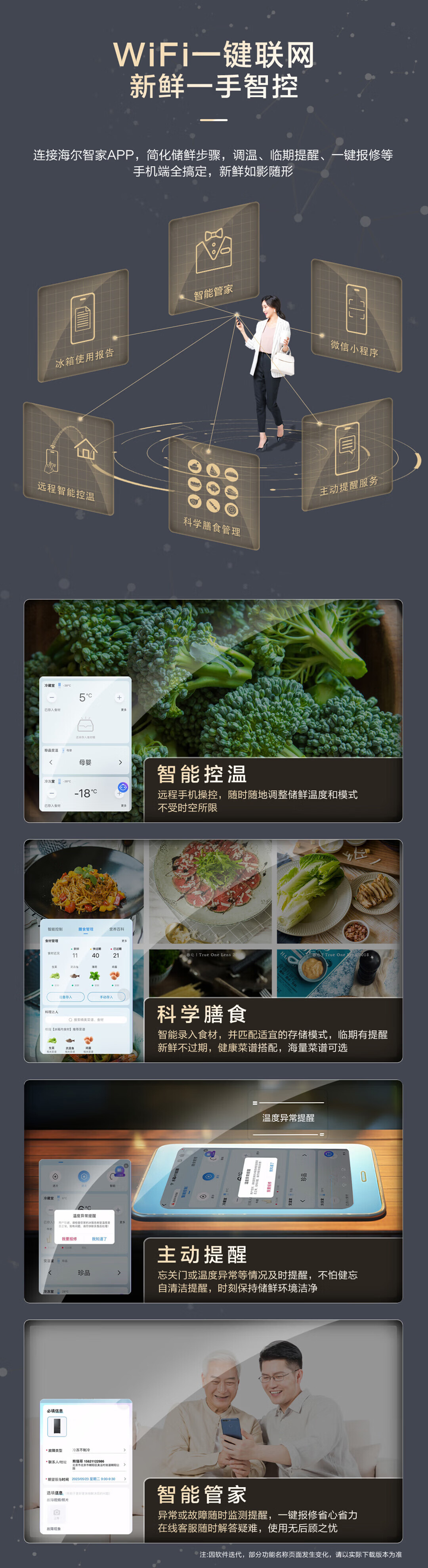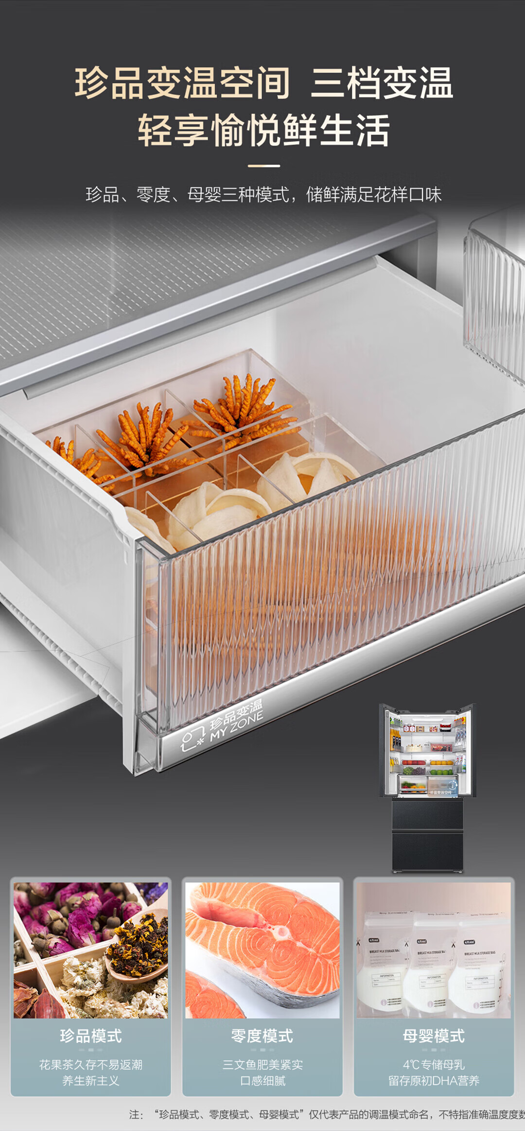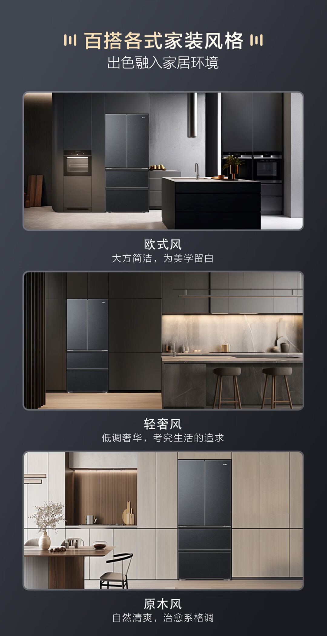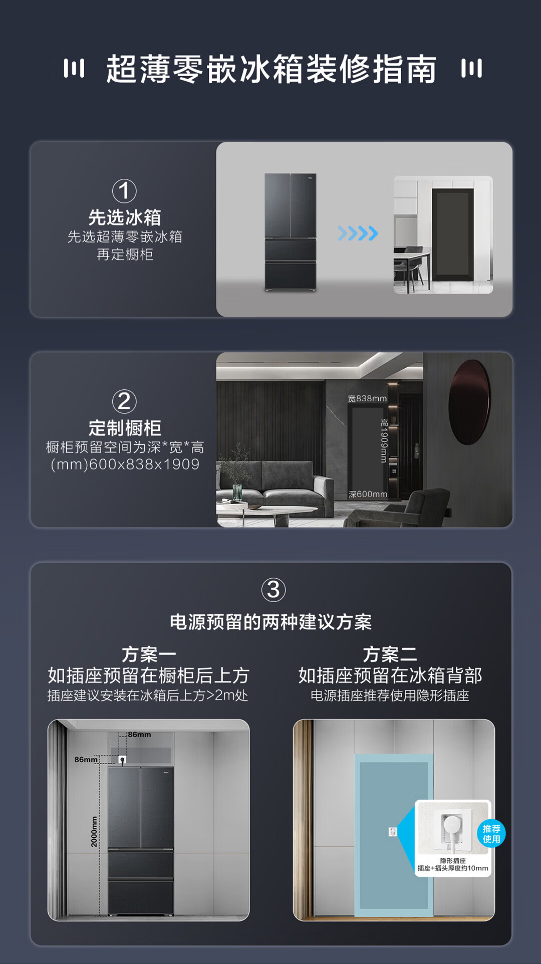 海尔(Haier)500升法式多门冰箱 594mm超薄零距离嵌入式 黑金净化干湿分储一级双变频四开门大容量 BCD-500WGHFDB5X8U1