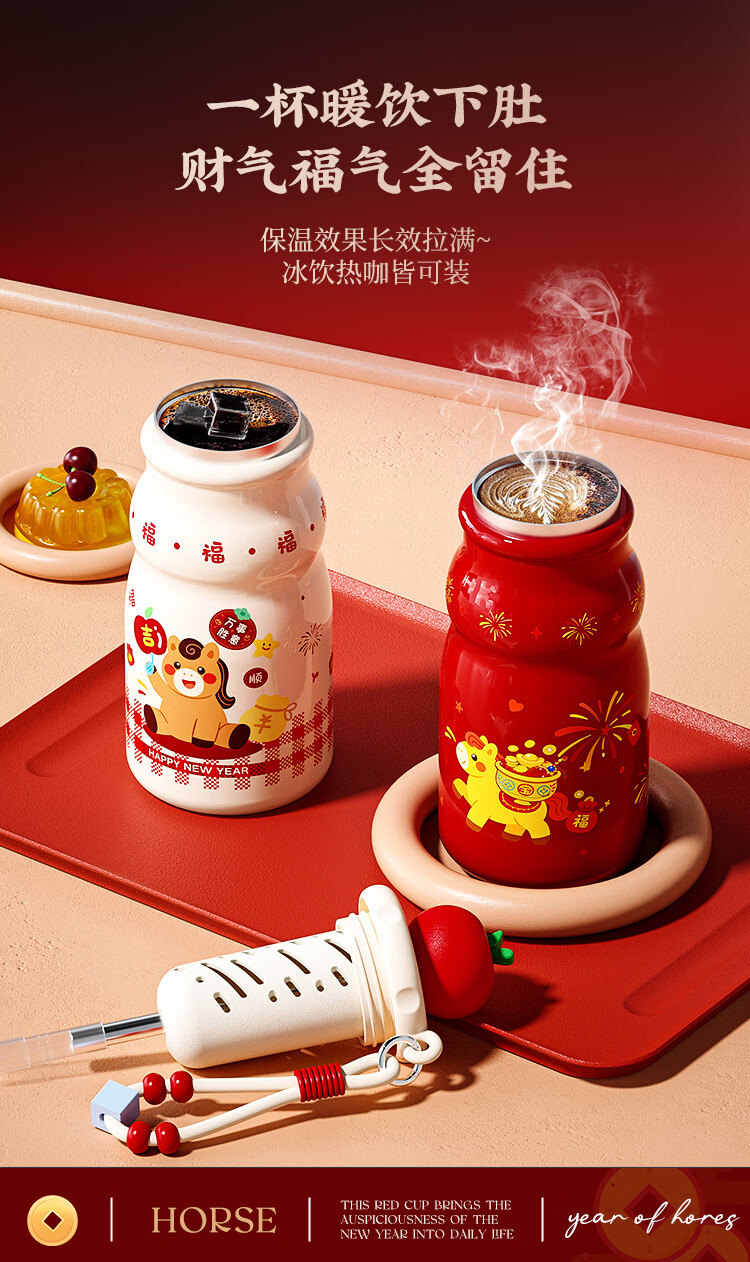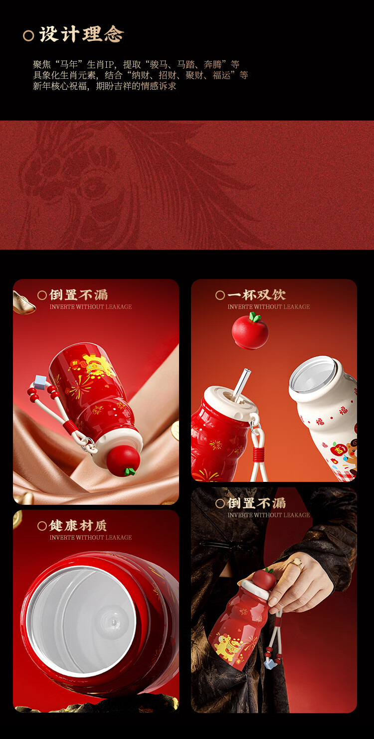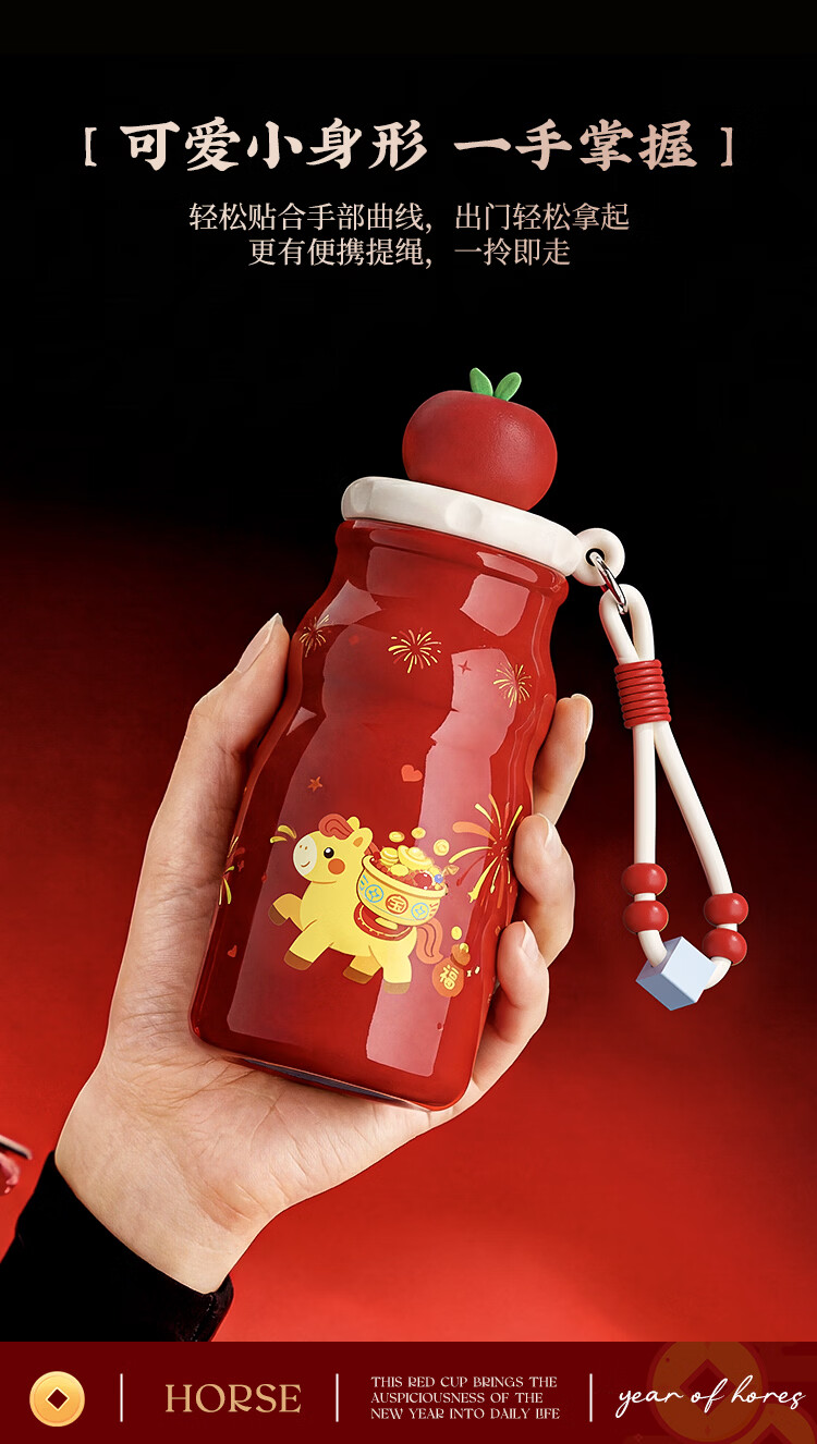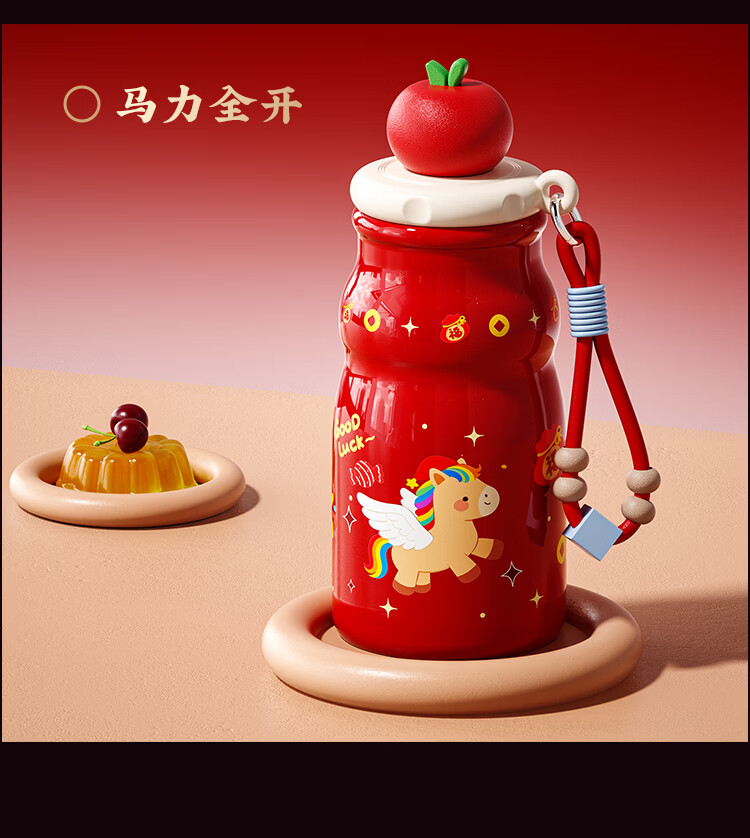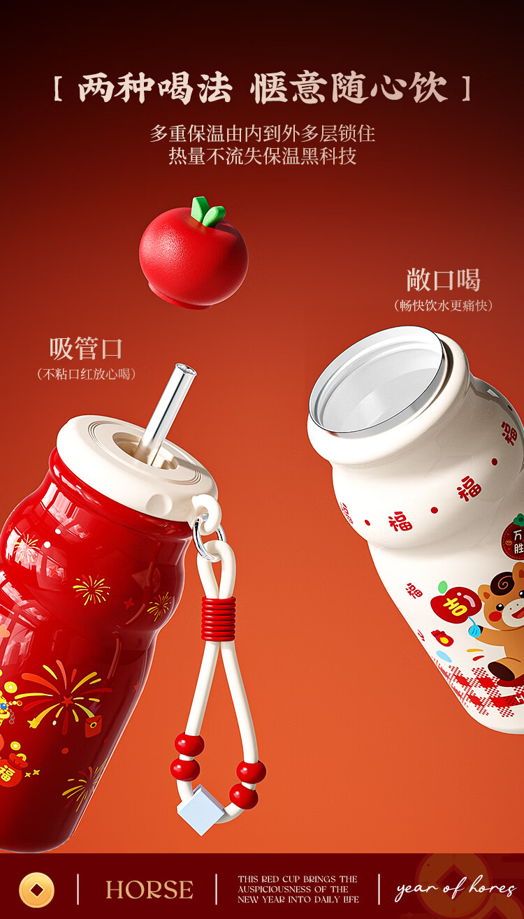 【马年限定】高颜值保温杯女生学生吸管保温杯子便携杯礼物 吉祥如意马 480ML 316不锈钢