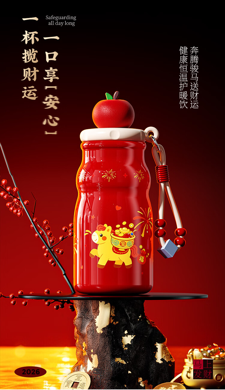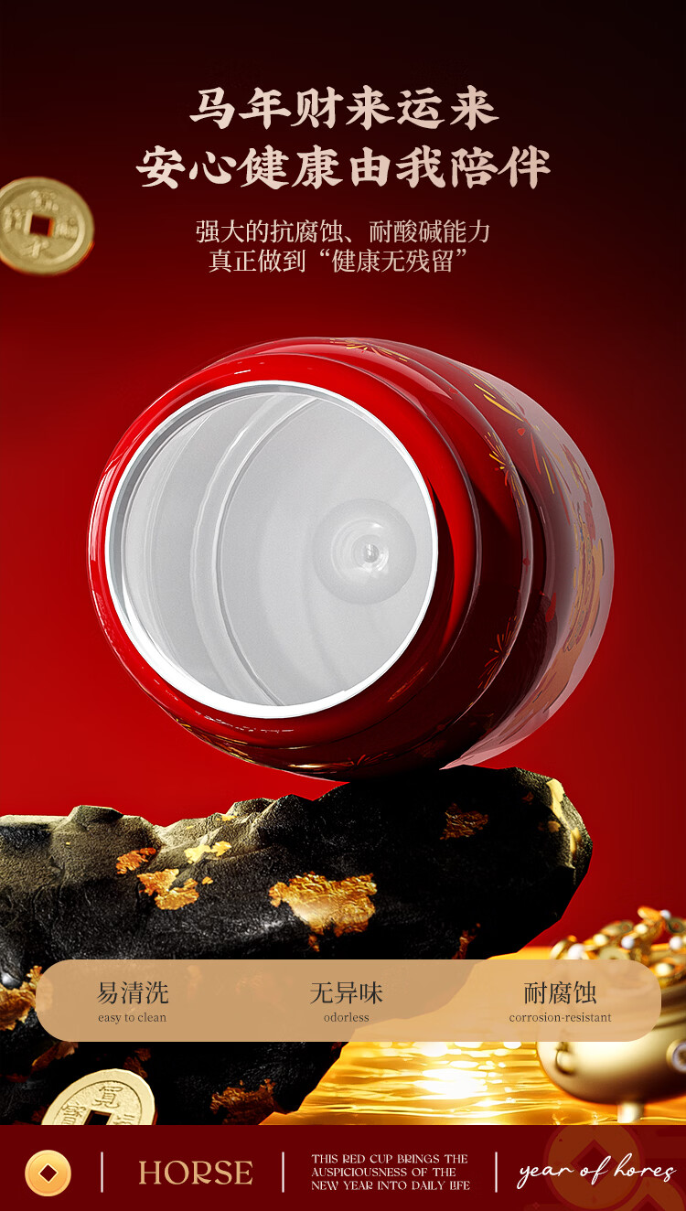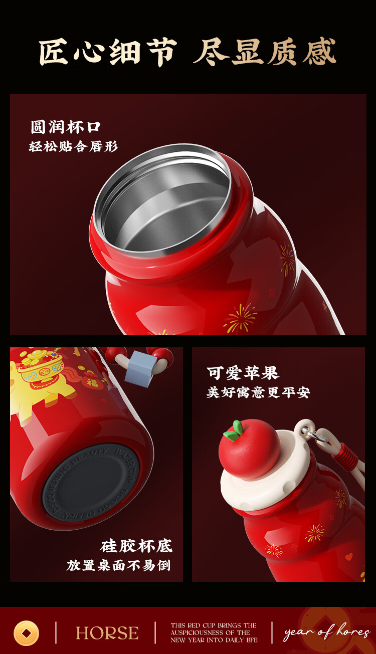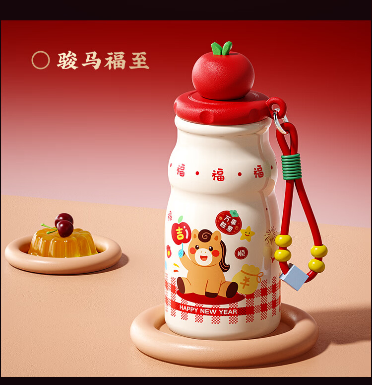 【马年限定】高颜值保温杯女生学生吸管保温杯子便携杯礼物 吉祥如意马 480ML 316不锈钢