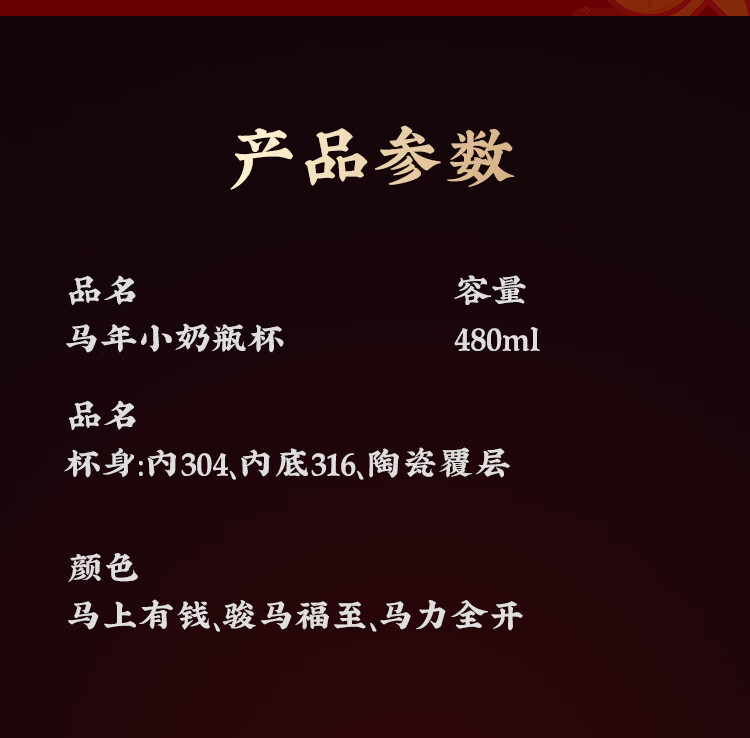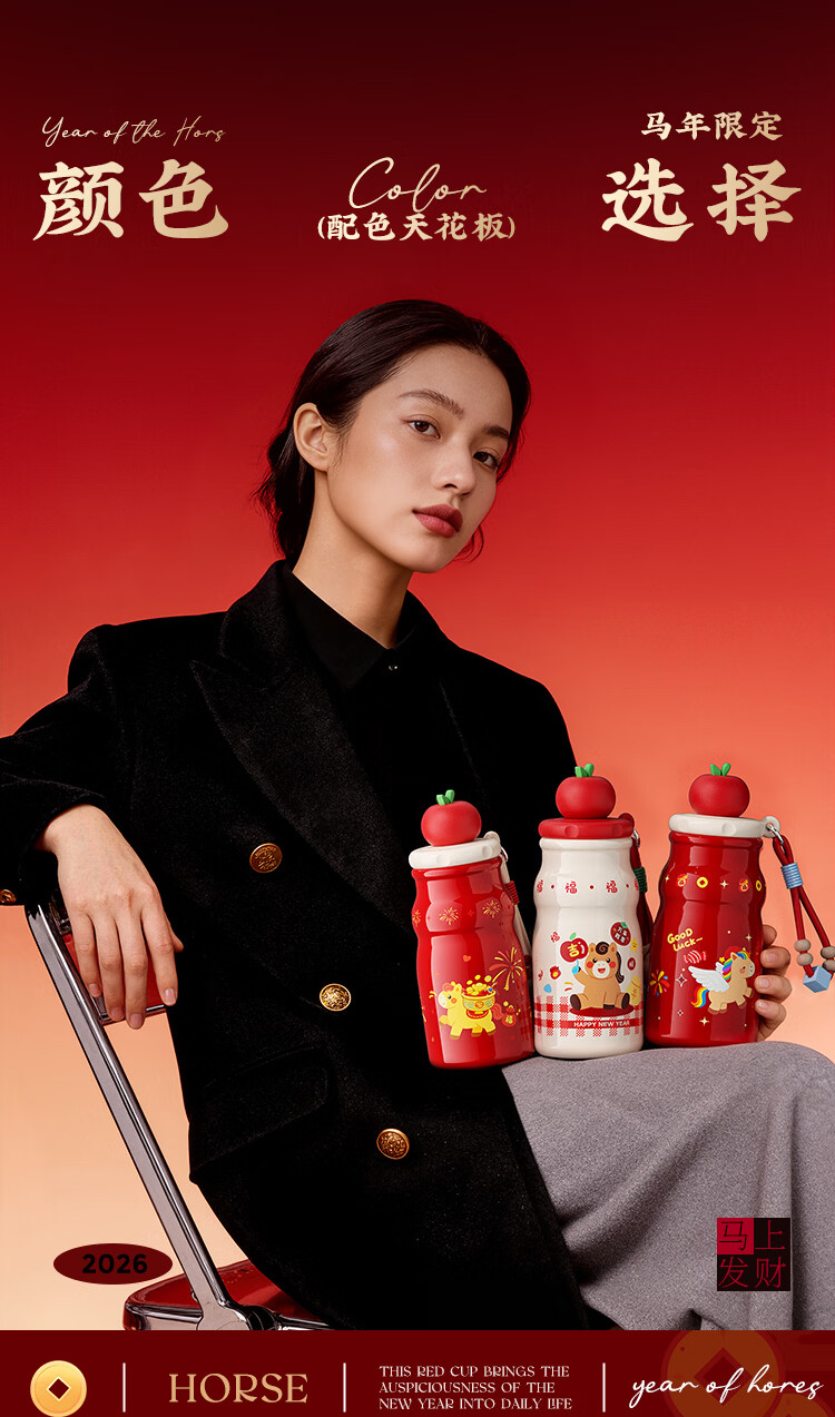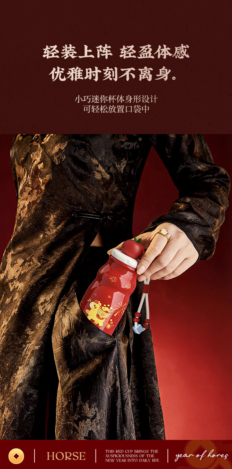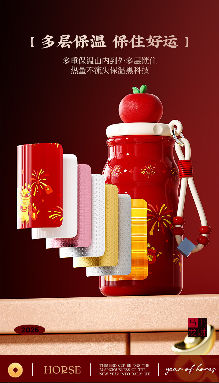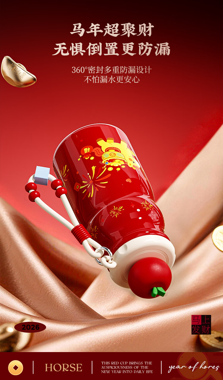 【马年限定】高颜值保温杯女生学生吸管保温杯子便携杯礼物 吉祥如意马 480ML 316不锈钢