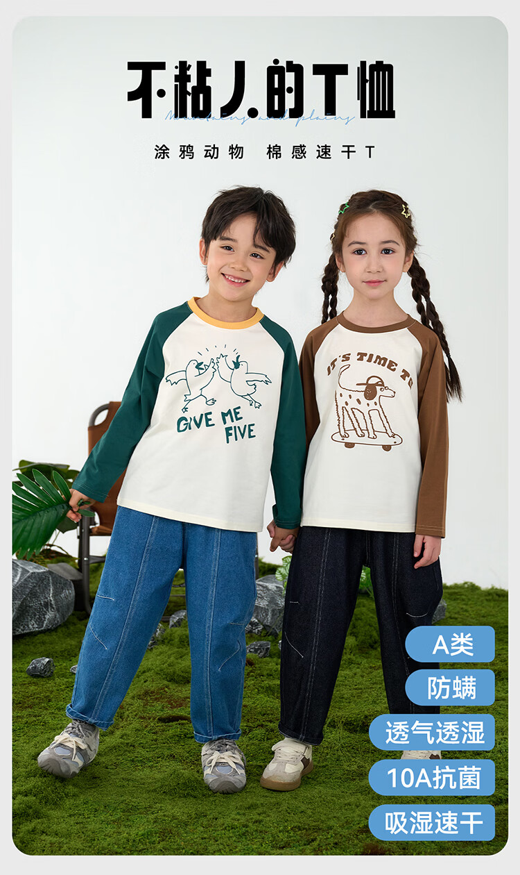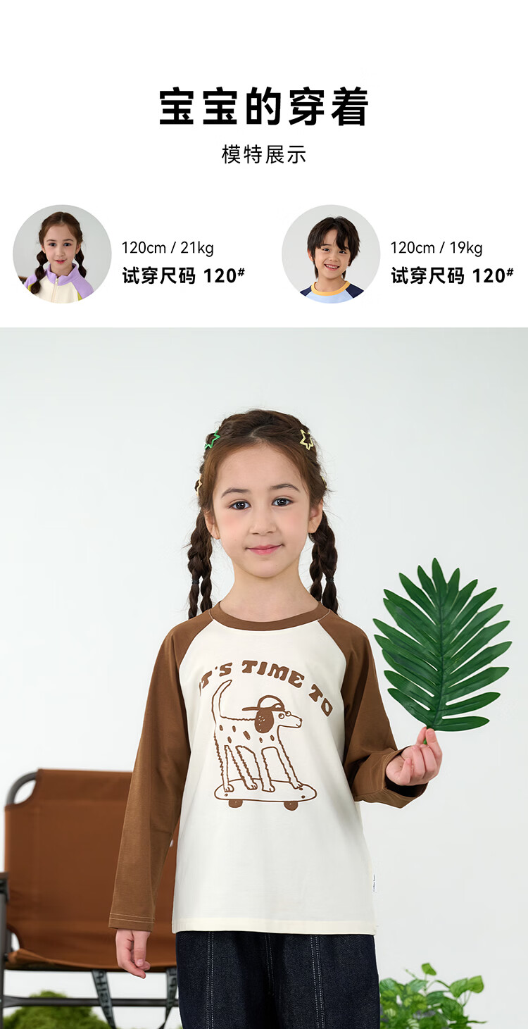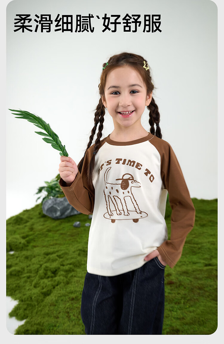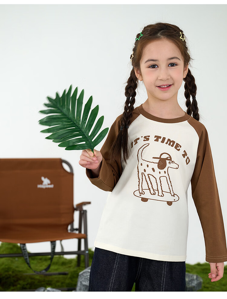 棉花堂(cottontown)【棉感速干】棉花堂童装儿童速干上衣男童女童长袖T恤A类10A抗菌 焦糖色 90 90/52