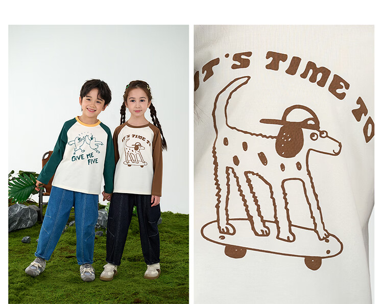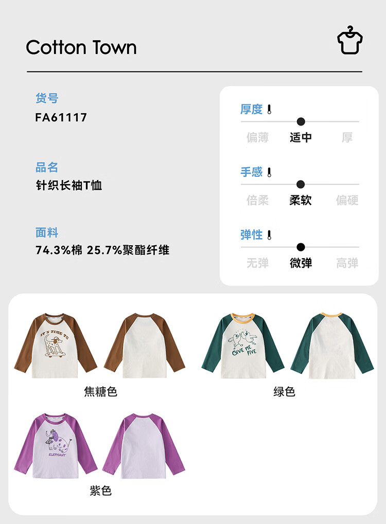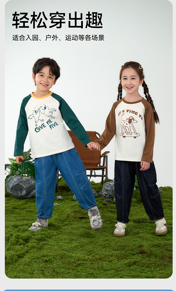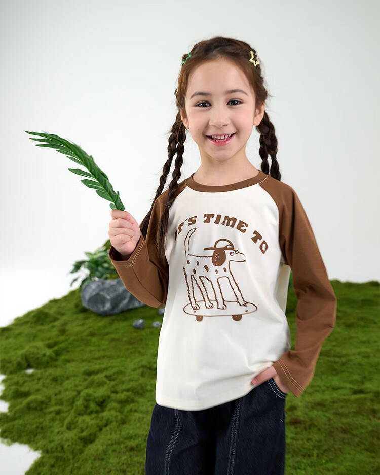棉花堂(cottontown)【棉感速干】棉花堂童装儿童速干上衣男童女童长袖T恤A类10A抗菌 焦糖色 90 90/52
