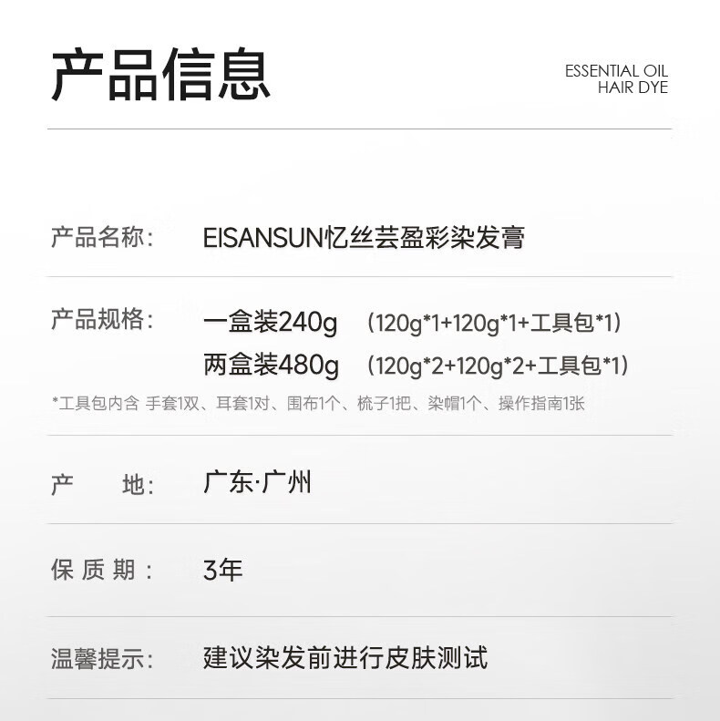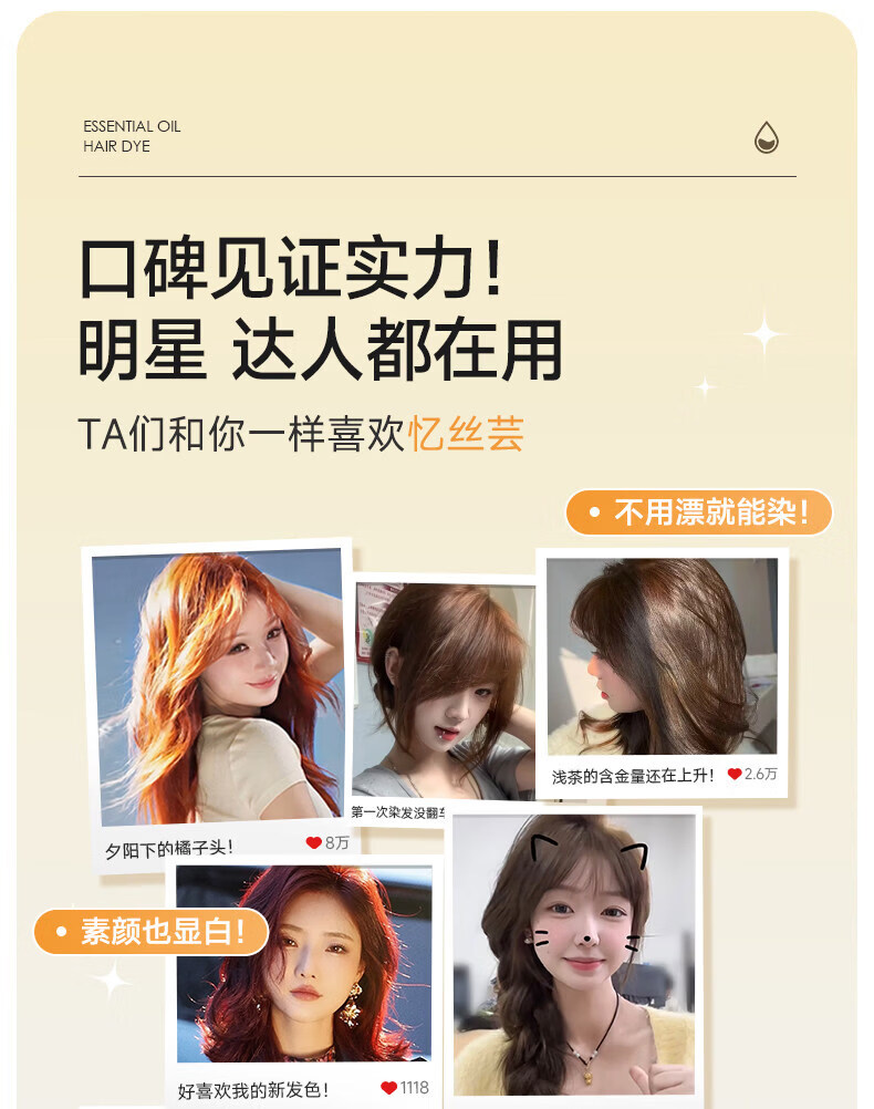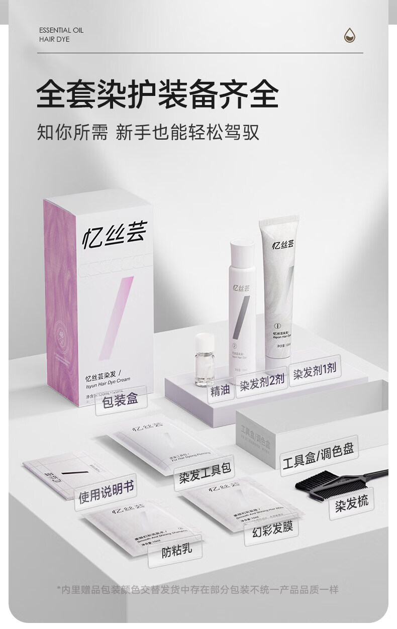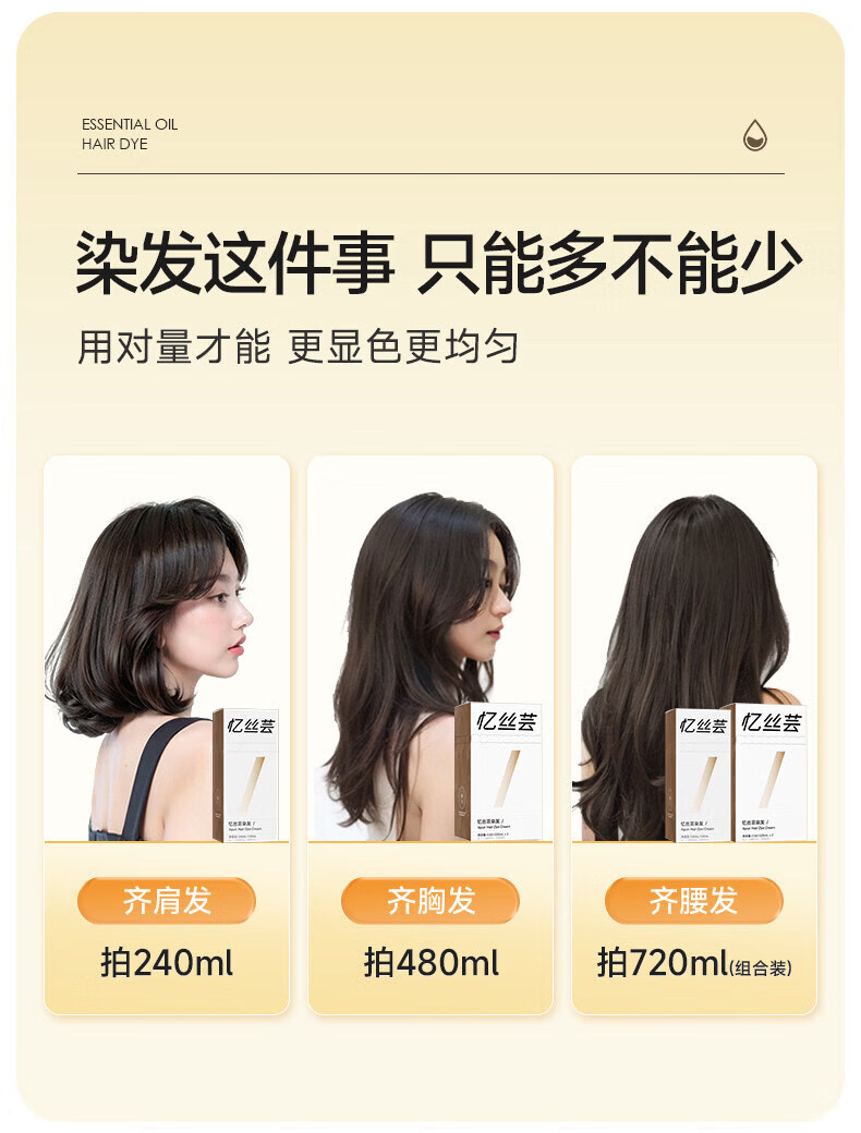 忆丝芸精油染发膏自己在家染发剂植物纯免漂显白发色明星同款男女士专用 榛果灰棕480ml