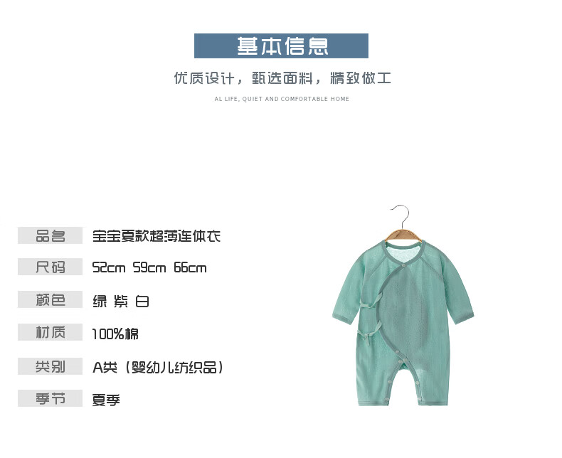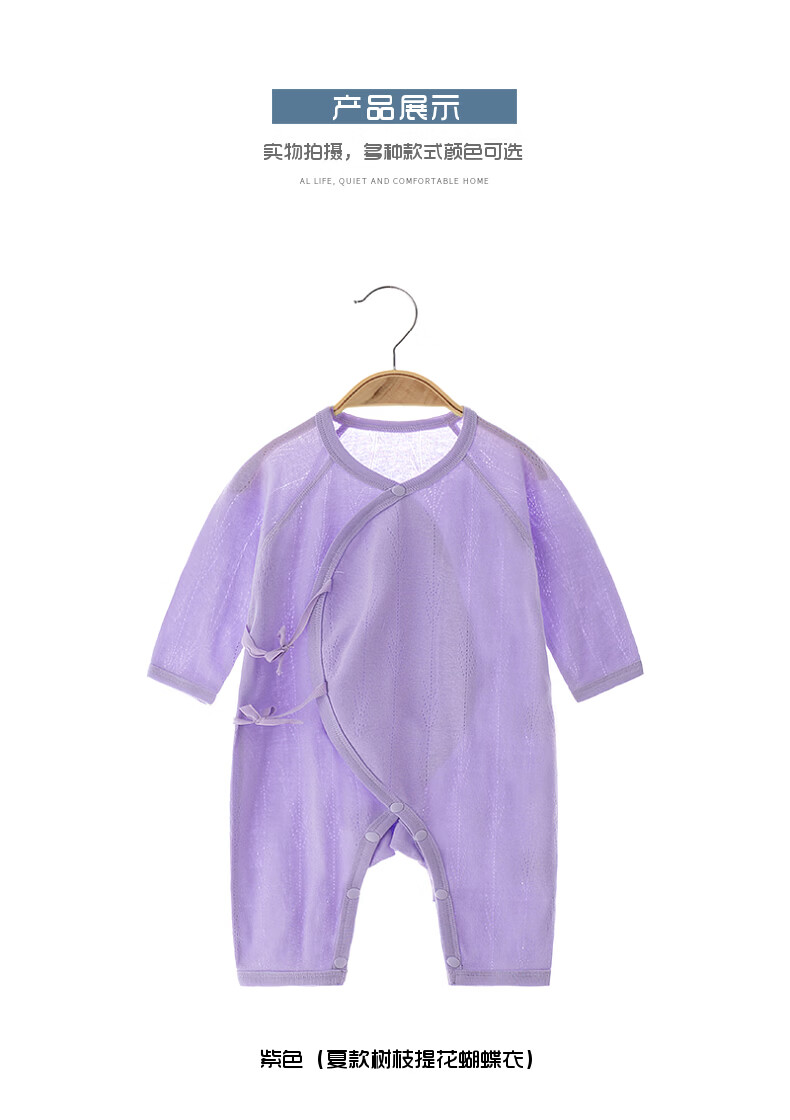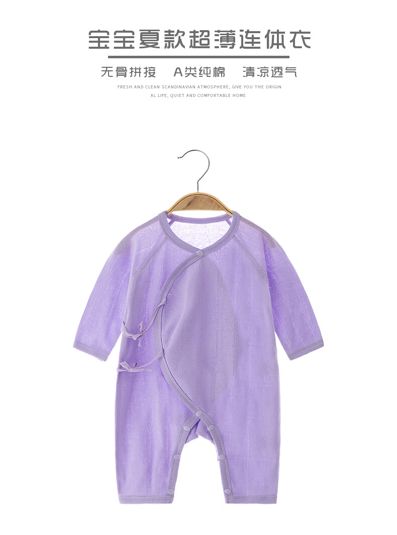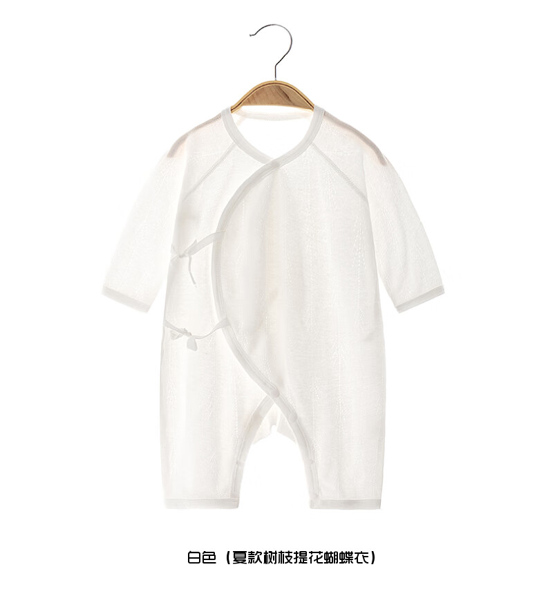 【夏款长袖连体】婴幼儿纯棉夏款长袖透气款连体衣男女宝宝空调服 白色 66cm 12-15斤