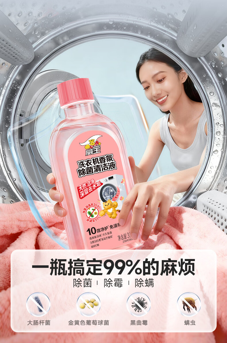 威王净大师蜜桃香洗衣机清洗剂300g*2滚筒波轮洗衣机除垢杀菌春节大扫除祛味