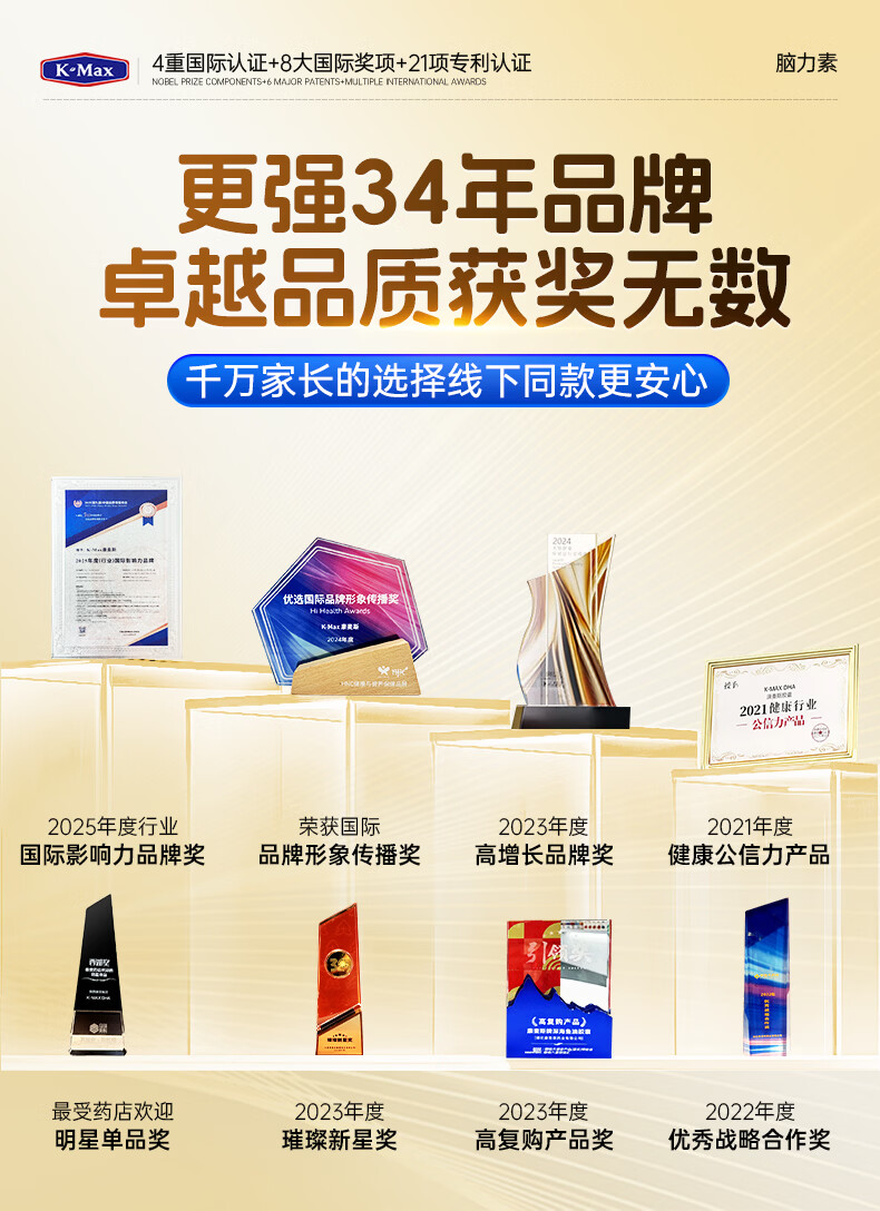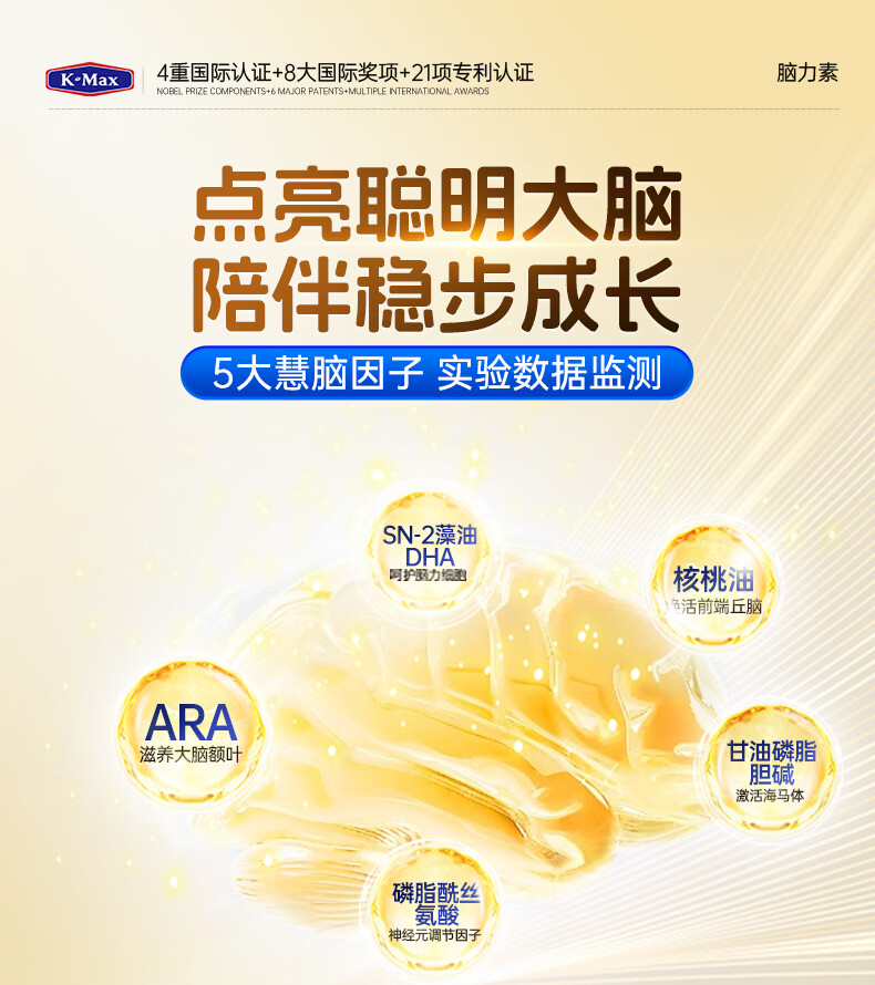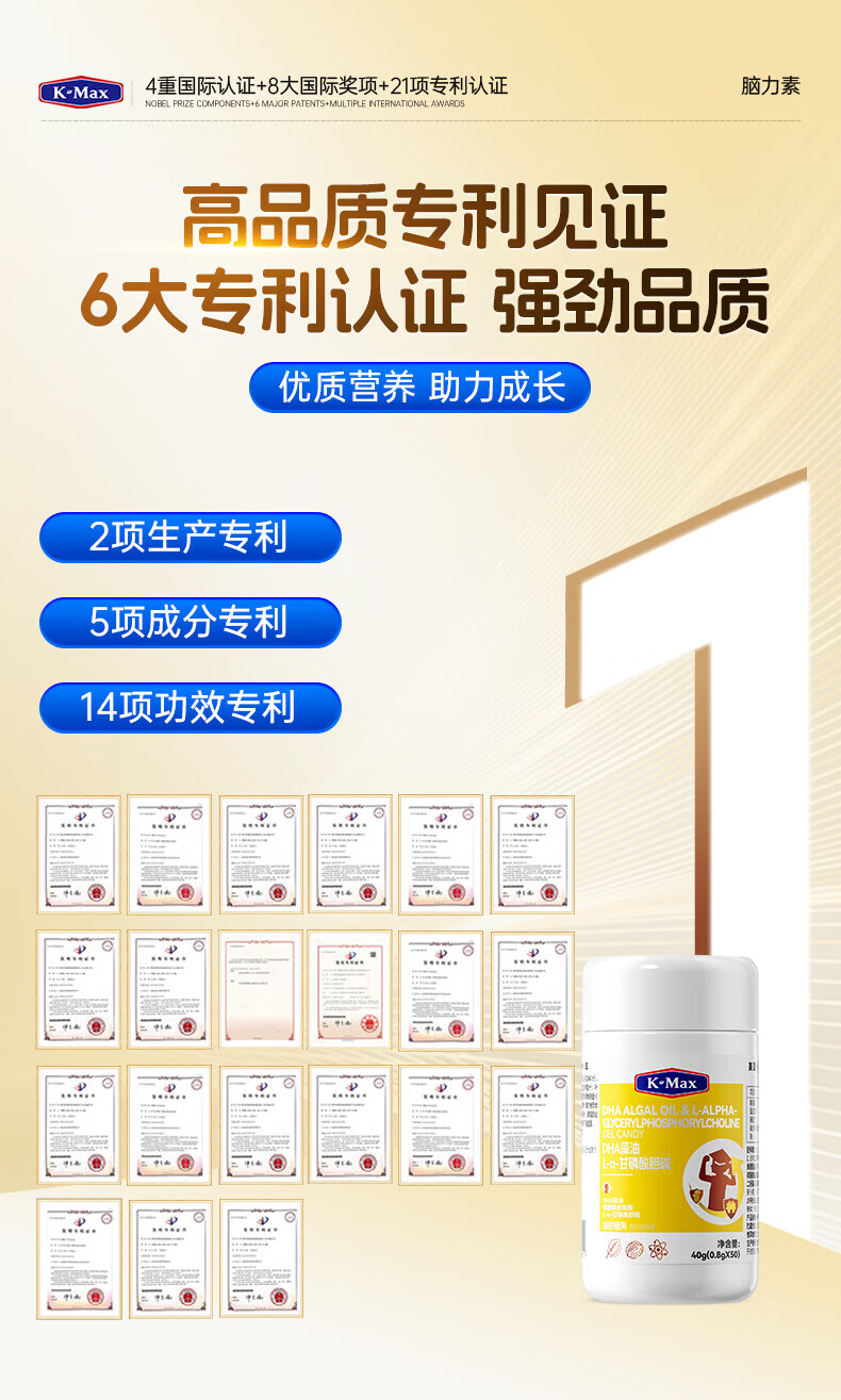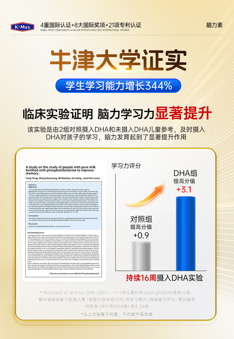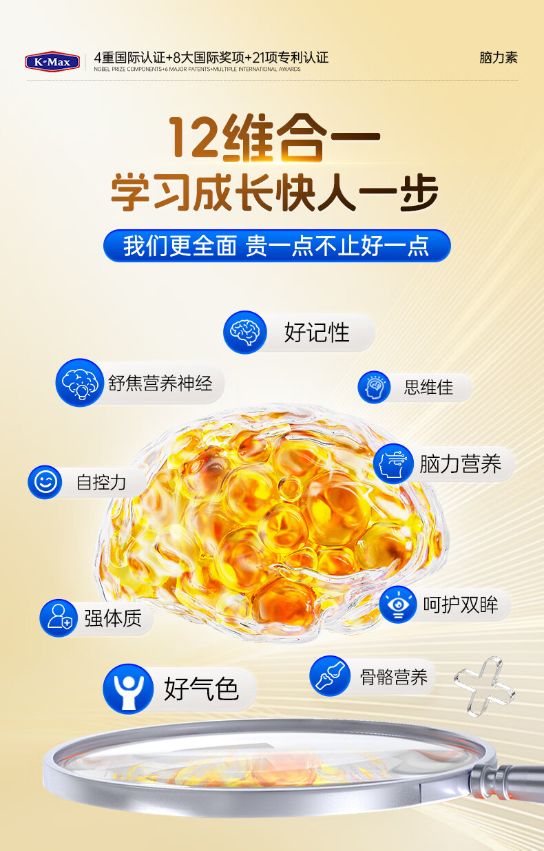 康麦斯(K-Max)【世界记忆大师推荐】学霸慧脑素dha学生青少年6-18岁藻油脑力素 周期装【买2送1/均价142】50粒*3瓶