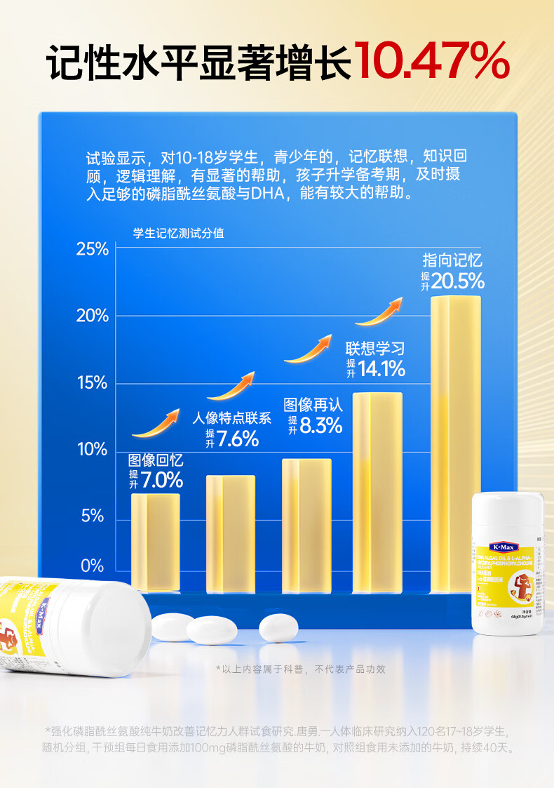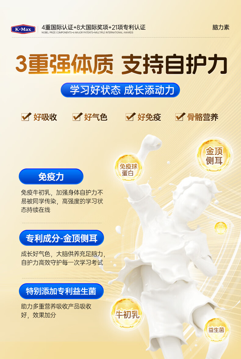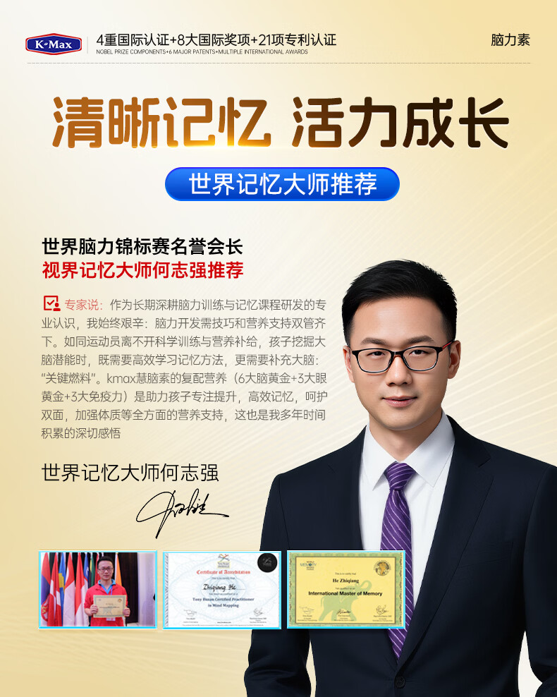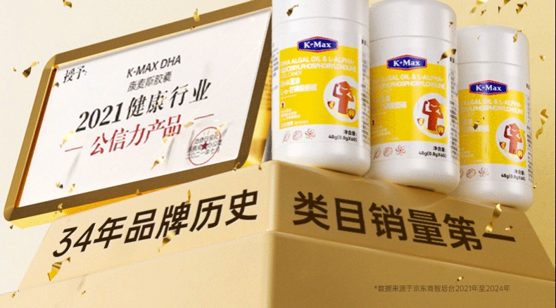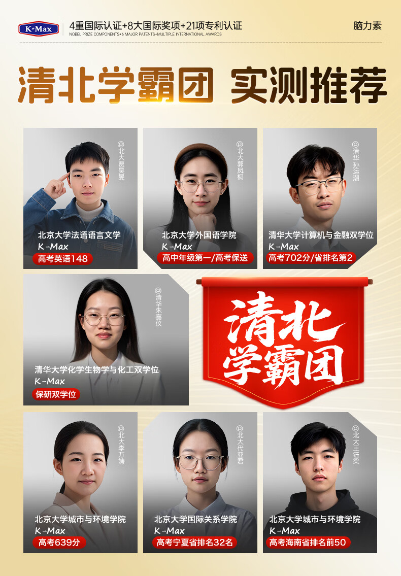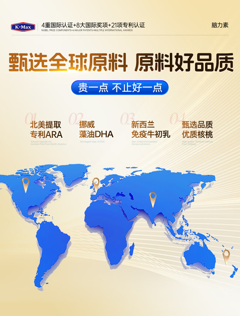 康麦斯(K-Max)【世界记忆大师推荐】学霸慧脑素dha学生青少年6-18岁藻油脑力素 周期装【买2送1/均价142】50粒*3瓶