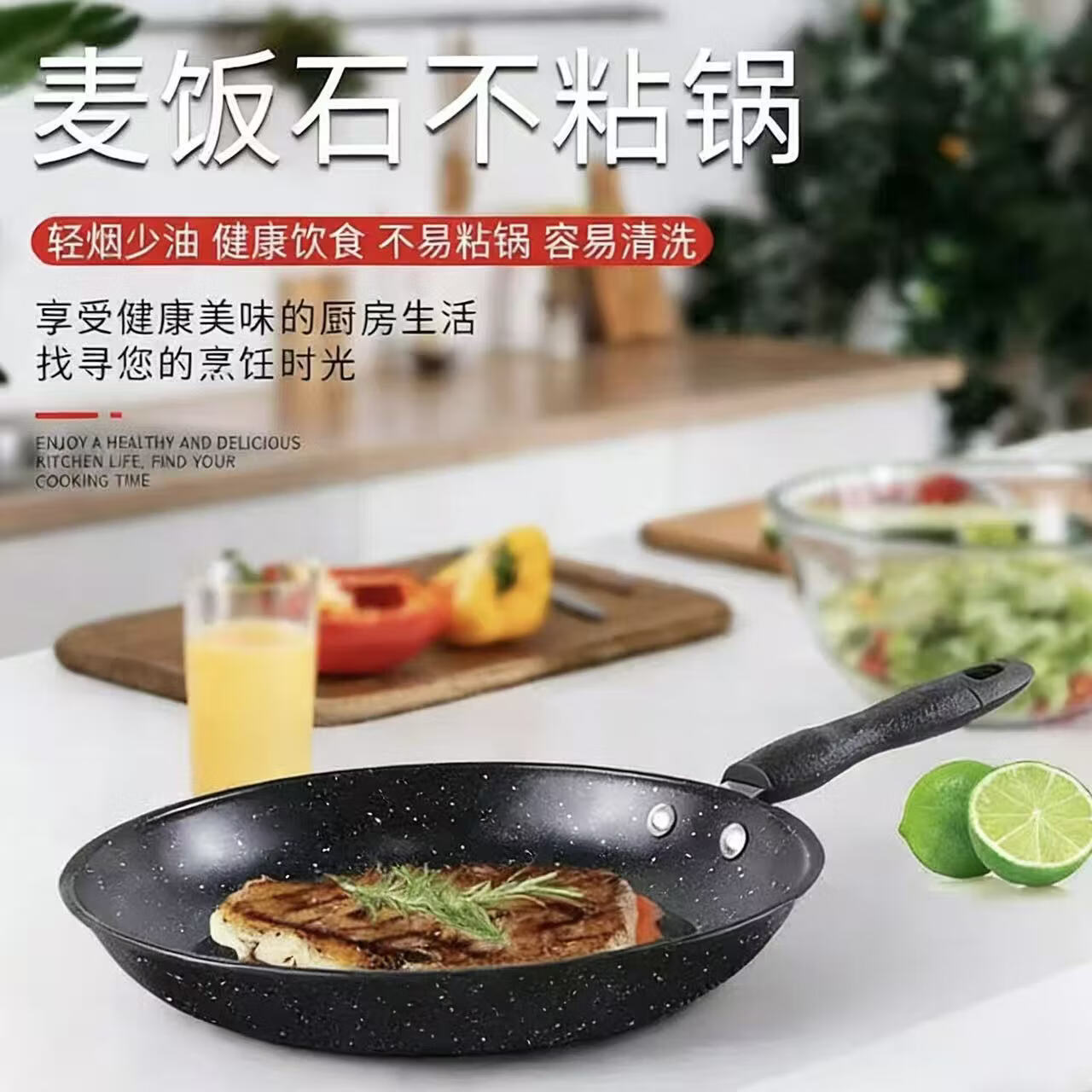 韩版麦饭石色不粘锅波浪纹家用煎锅煎饼煎牛排燃气灶通用 18cm麦饭石波纹煎锅