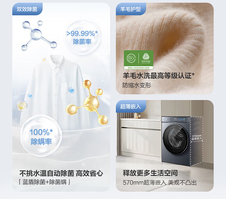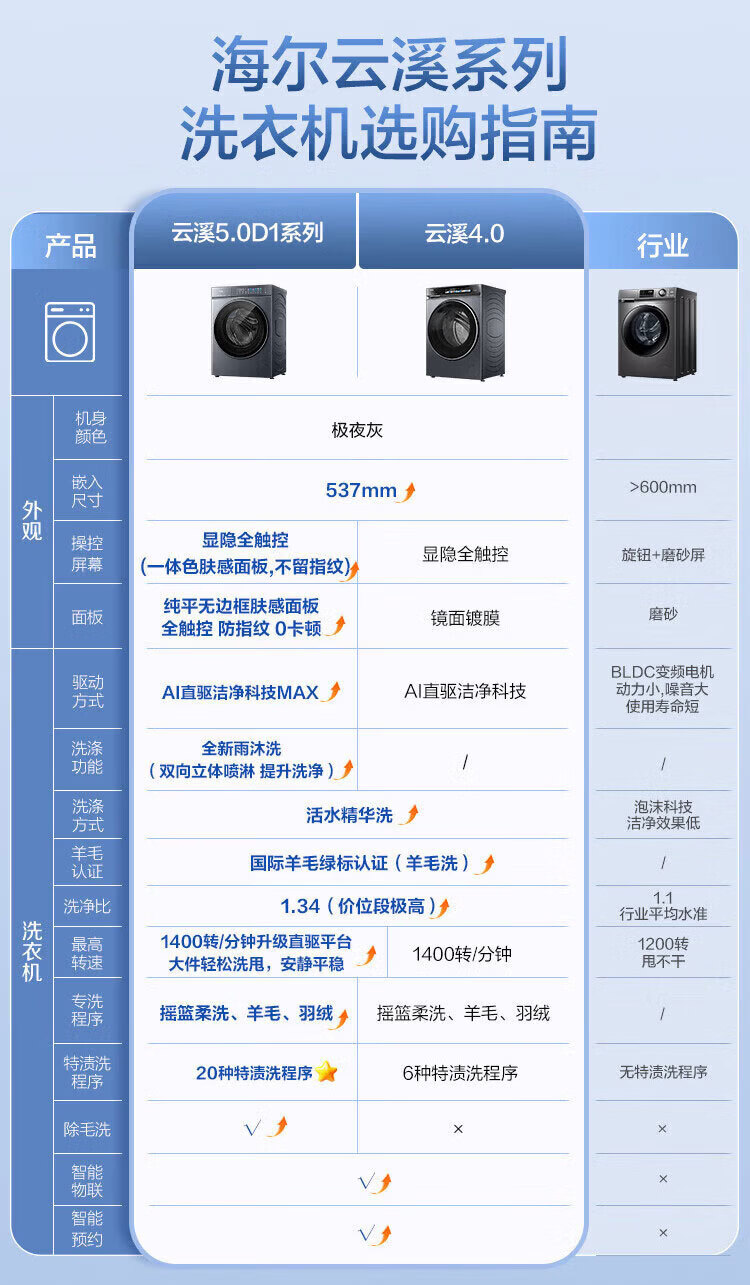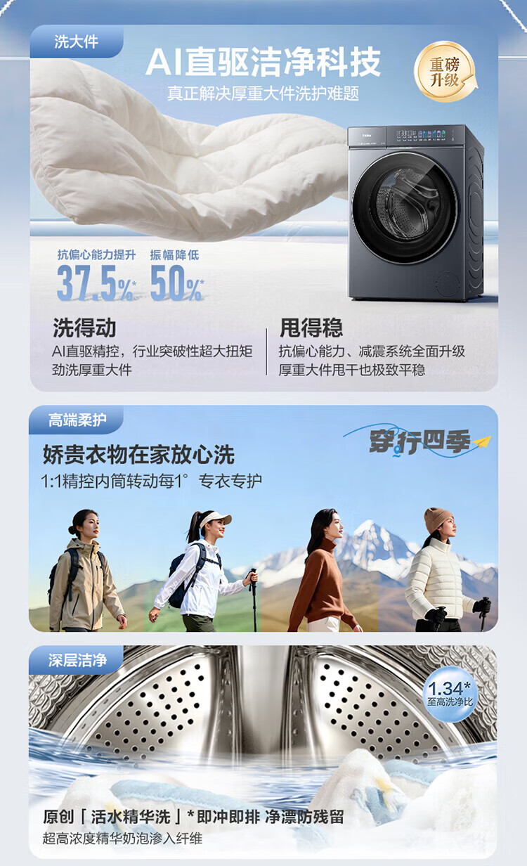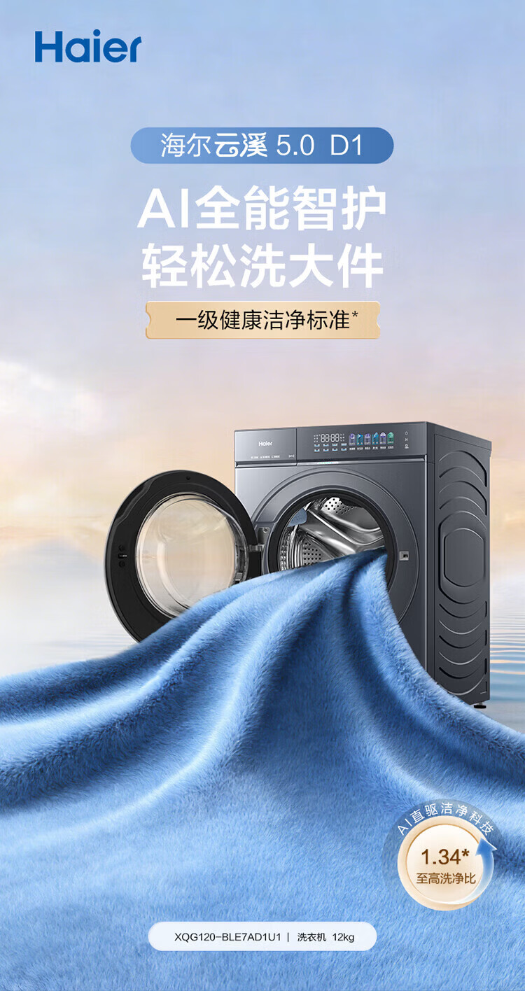 海尔(Haier)【云溪5.0新品上市】直驱滚筒洗衣机10/12公斤一级能效 XQG100-BLE7AD1U1 单洗