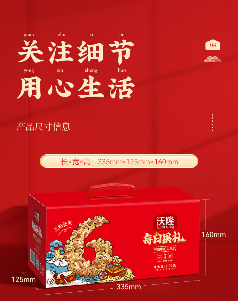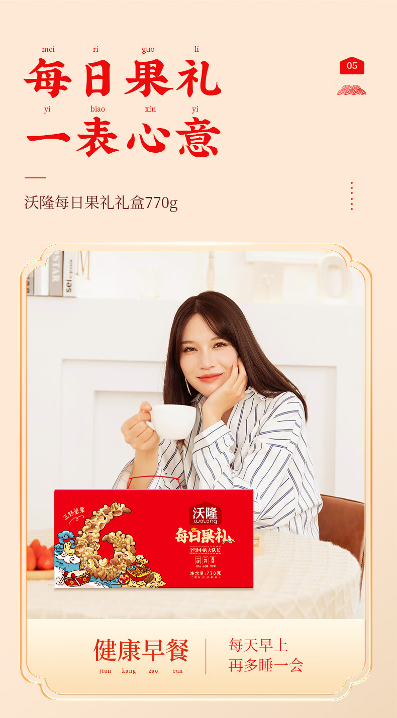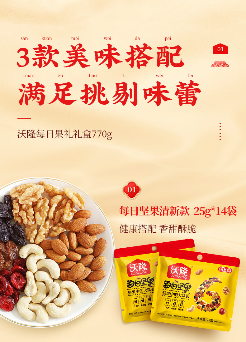 沃隆每日坚果770g坚果礼盒混合干果营养零食大礼包腰果榛子核桃仁 【28袋大份量】每日果礼红盒770g