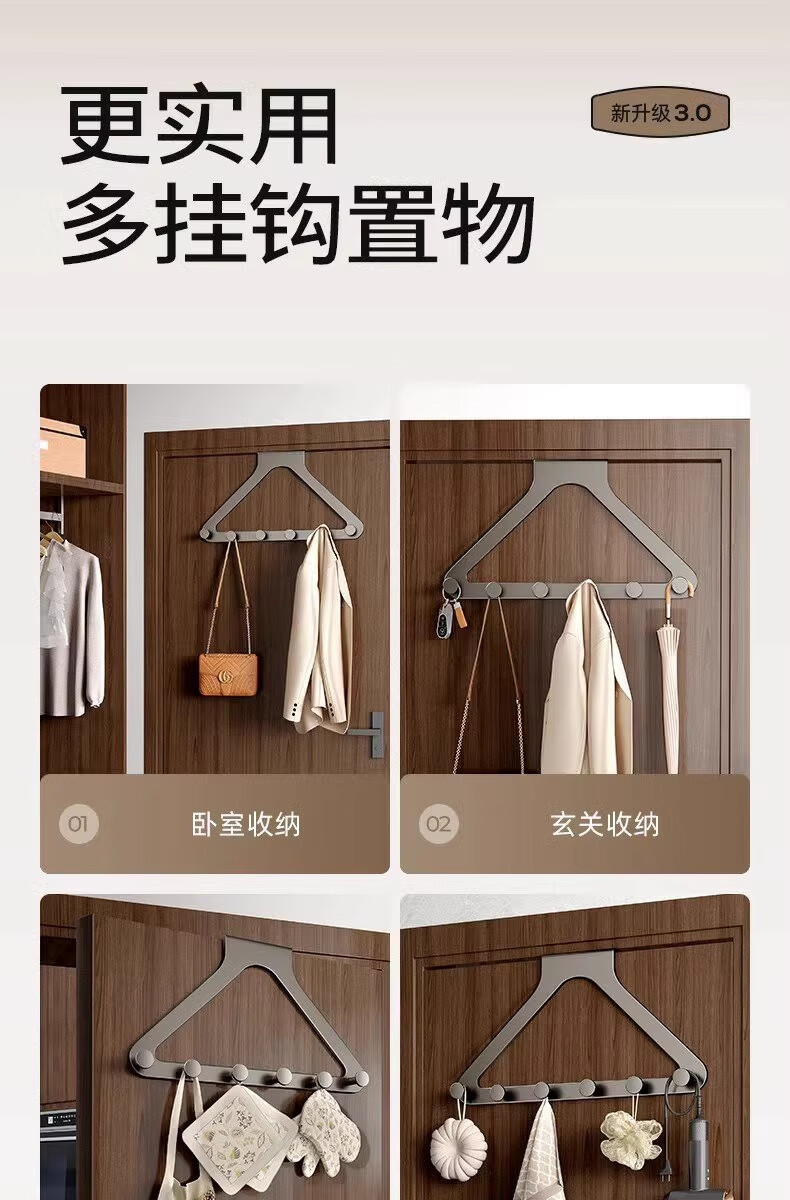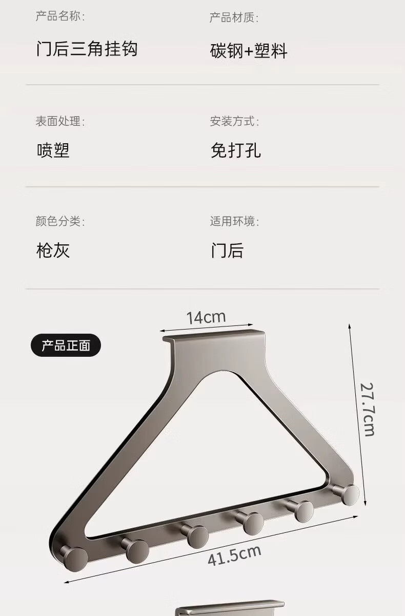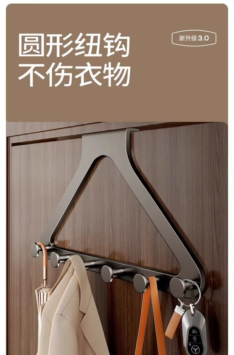 加度门后挂钩挂衣架免打孔不限门厚门上挂衣架卧室浴室无痕衣帽置物架