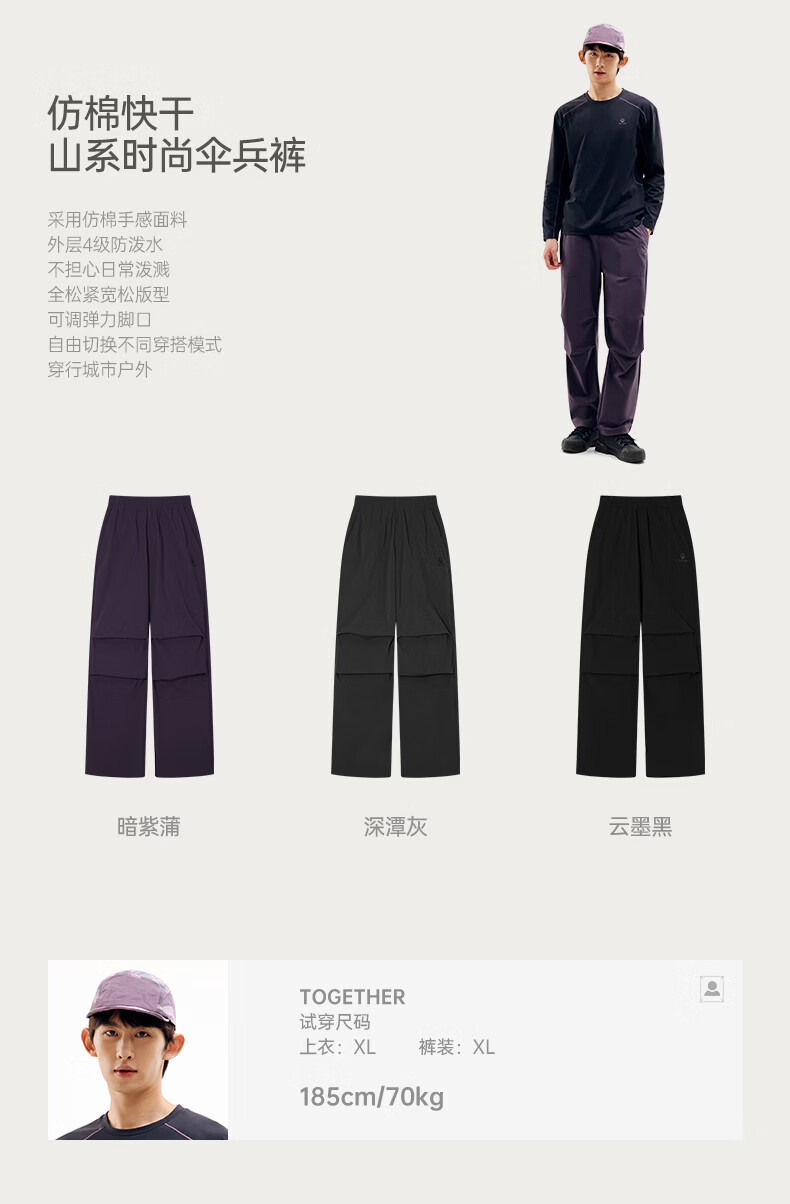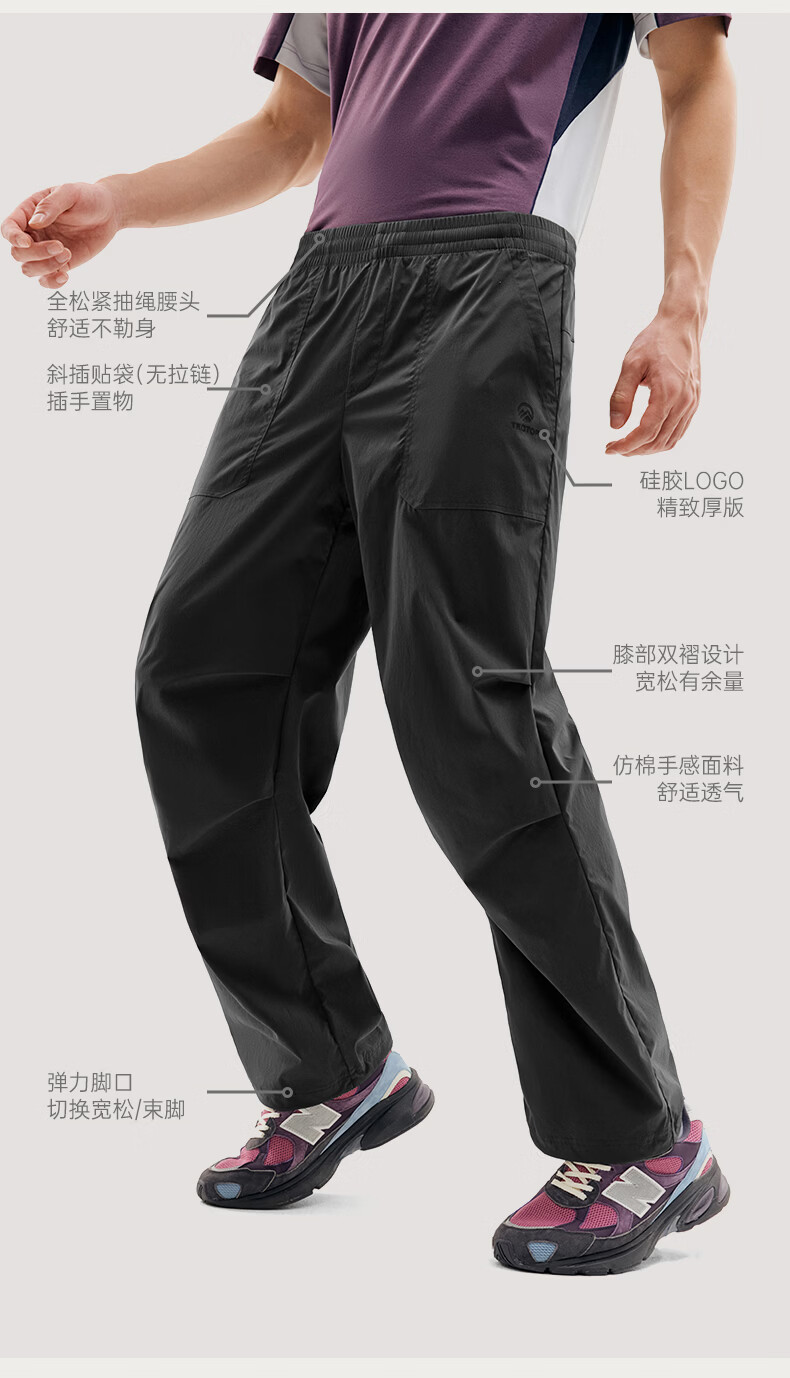 探拓(TECTOP)26新款户外速干裤男薄款直筒裤宽松工装裤登山裤耐磨休闲长裤 云墨黑 S