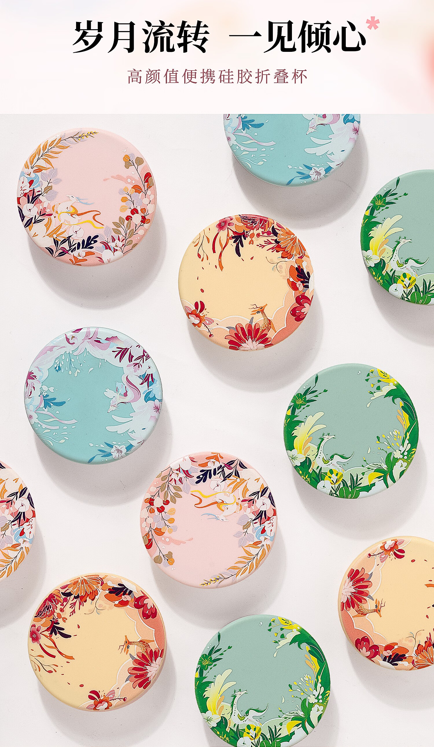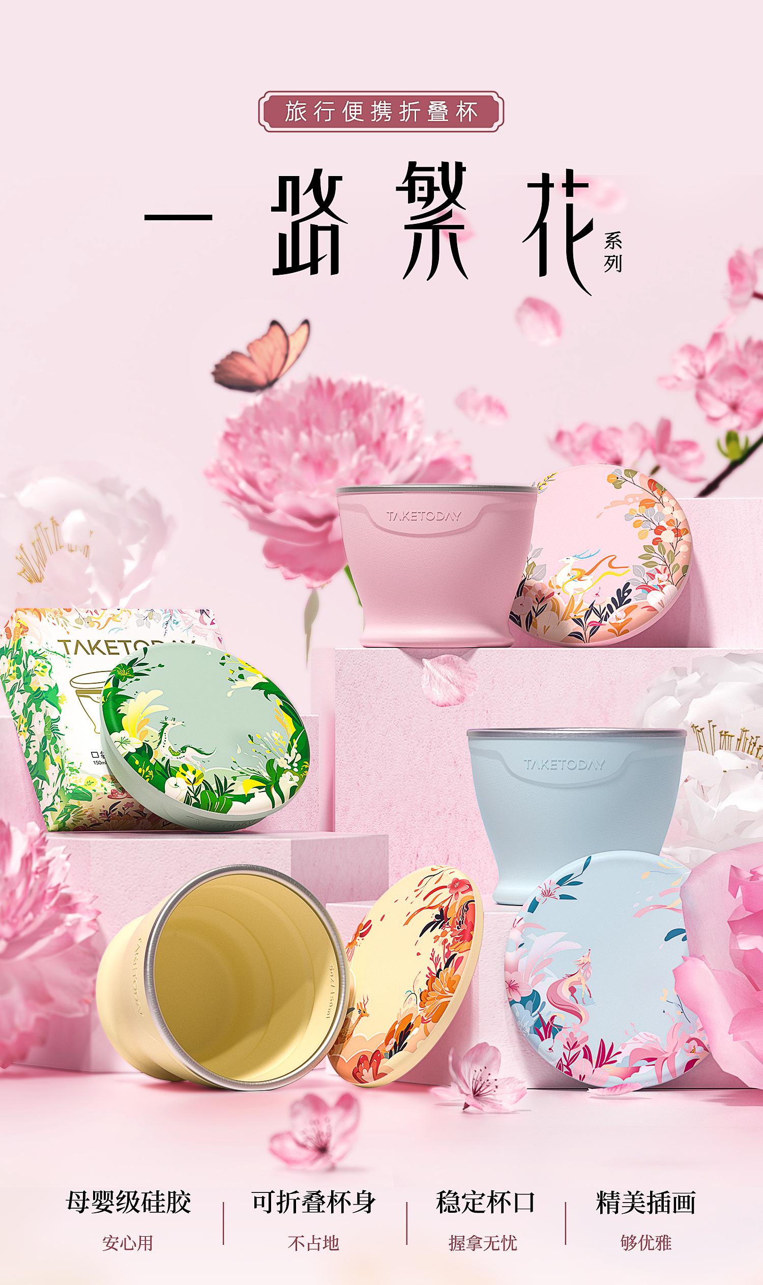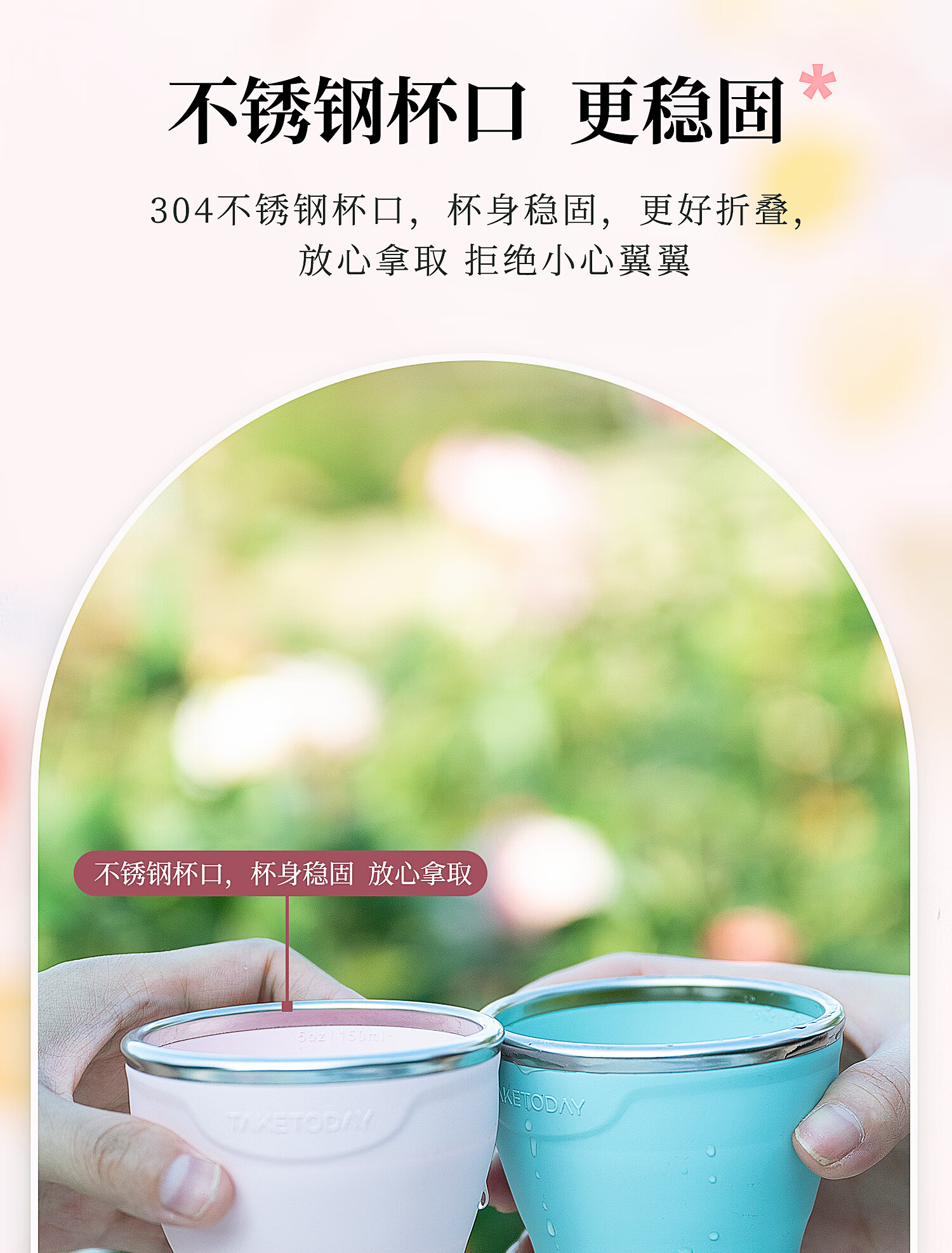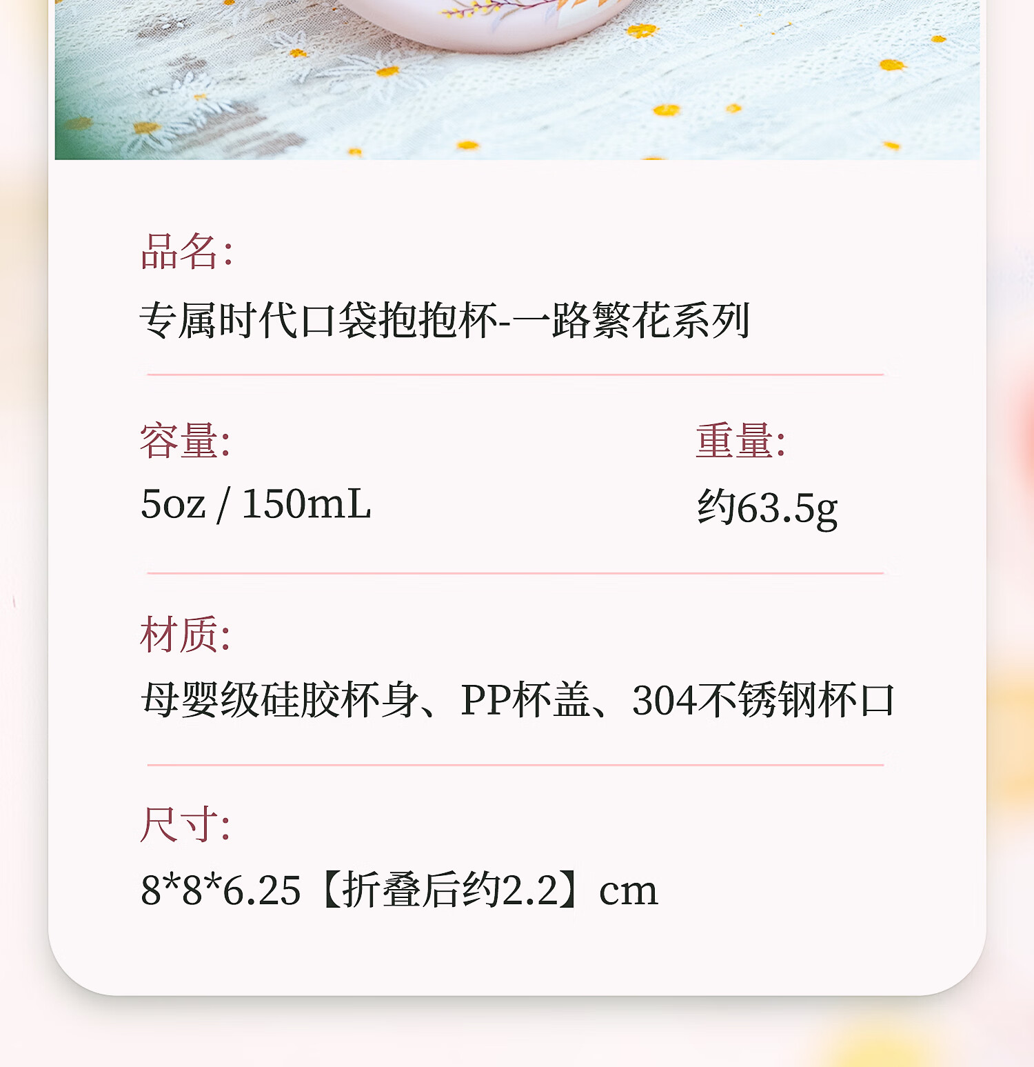 专属时代硅胶杯子食品级可折叠水杯高颜值随行杯便携式户外旅行杯 一路繁花 · 落樱粉 150ml