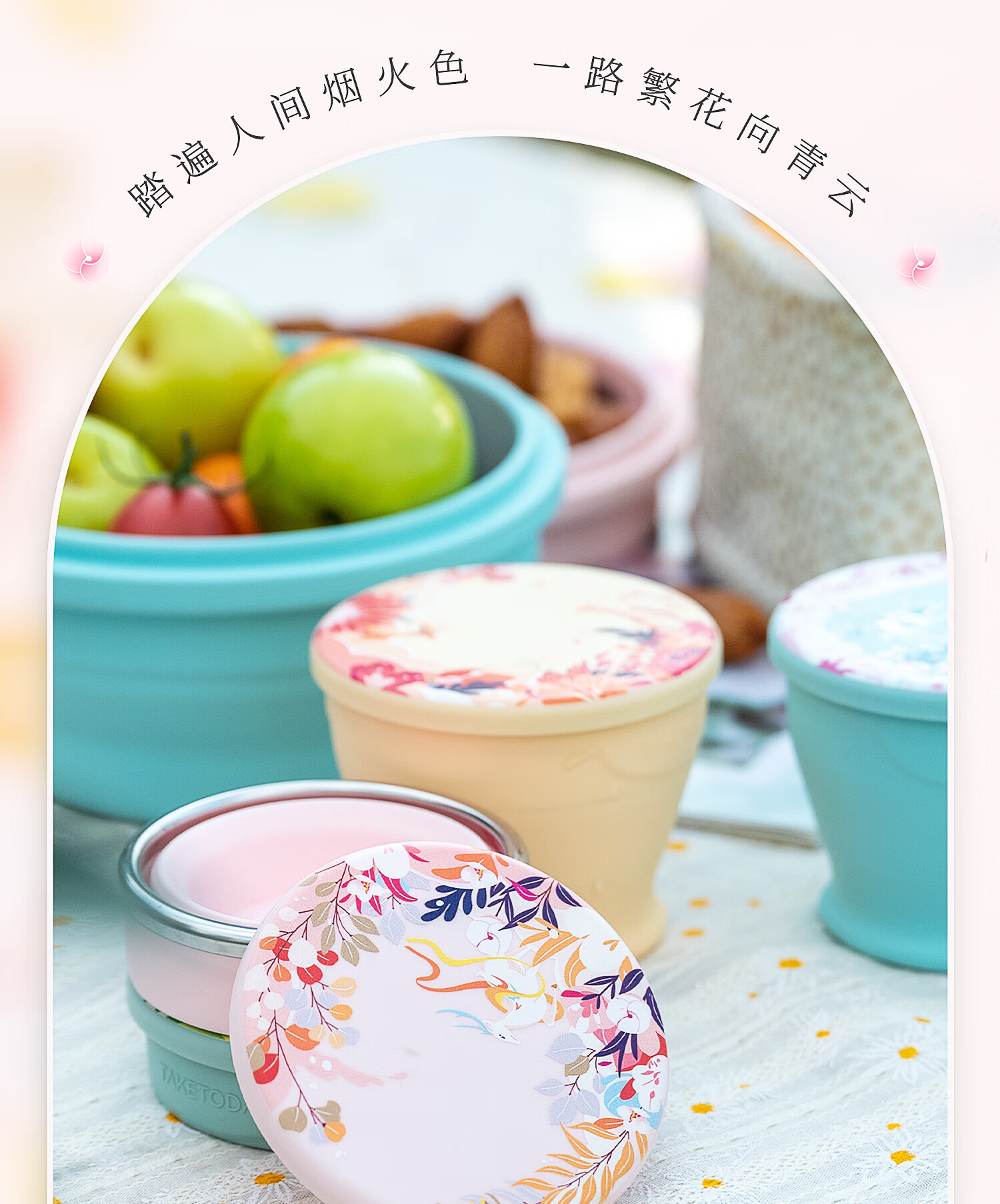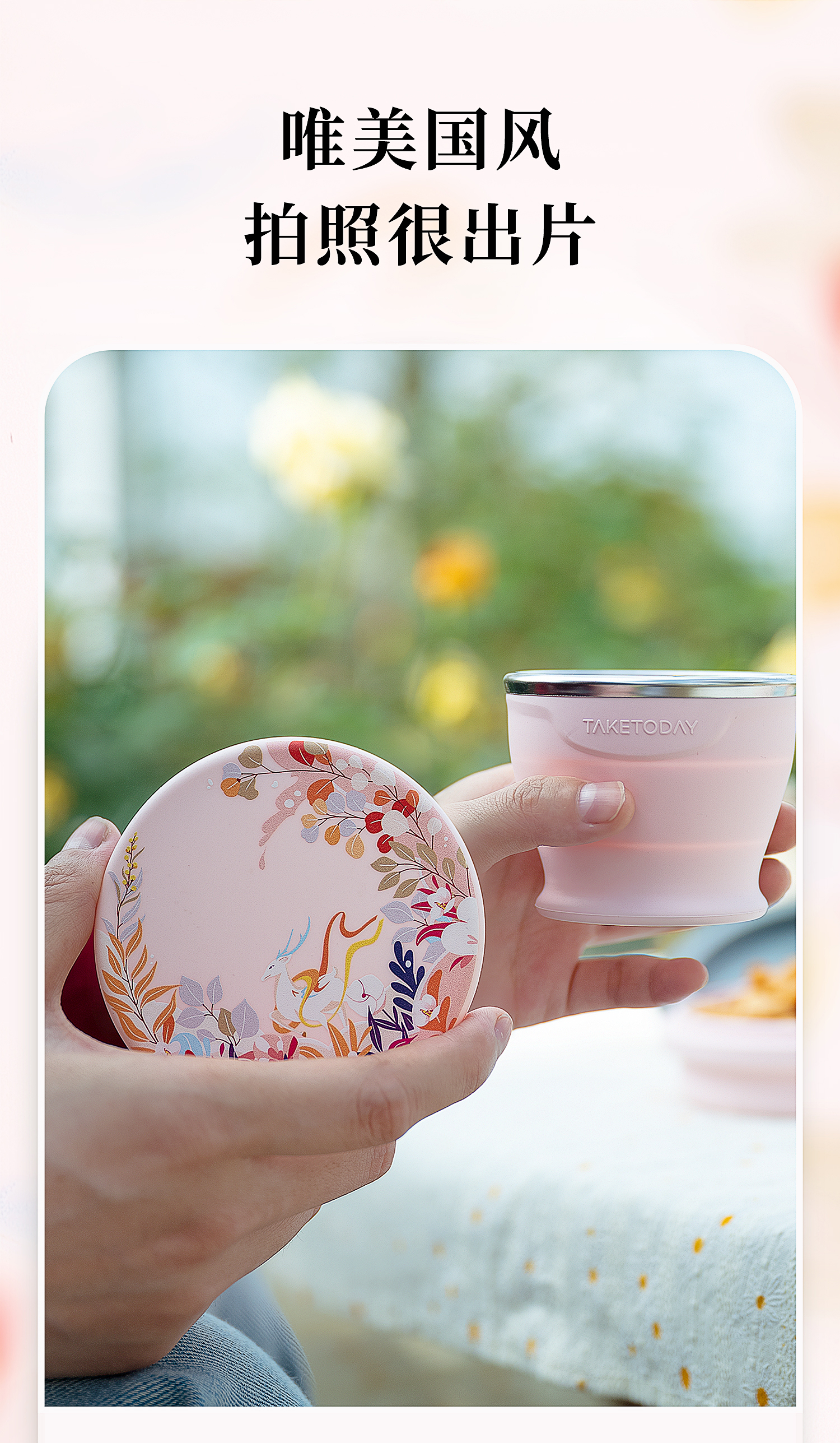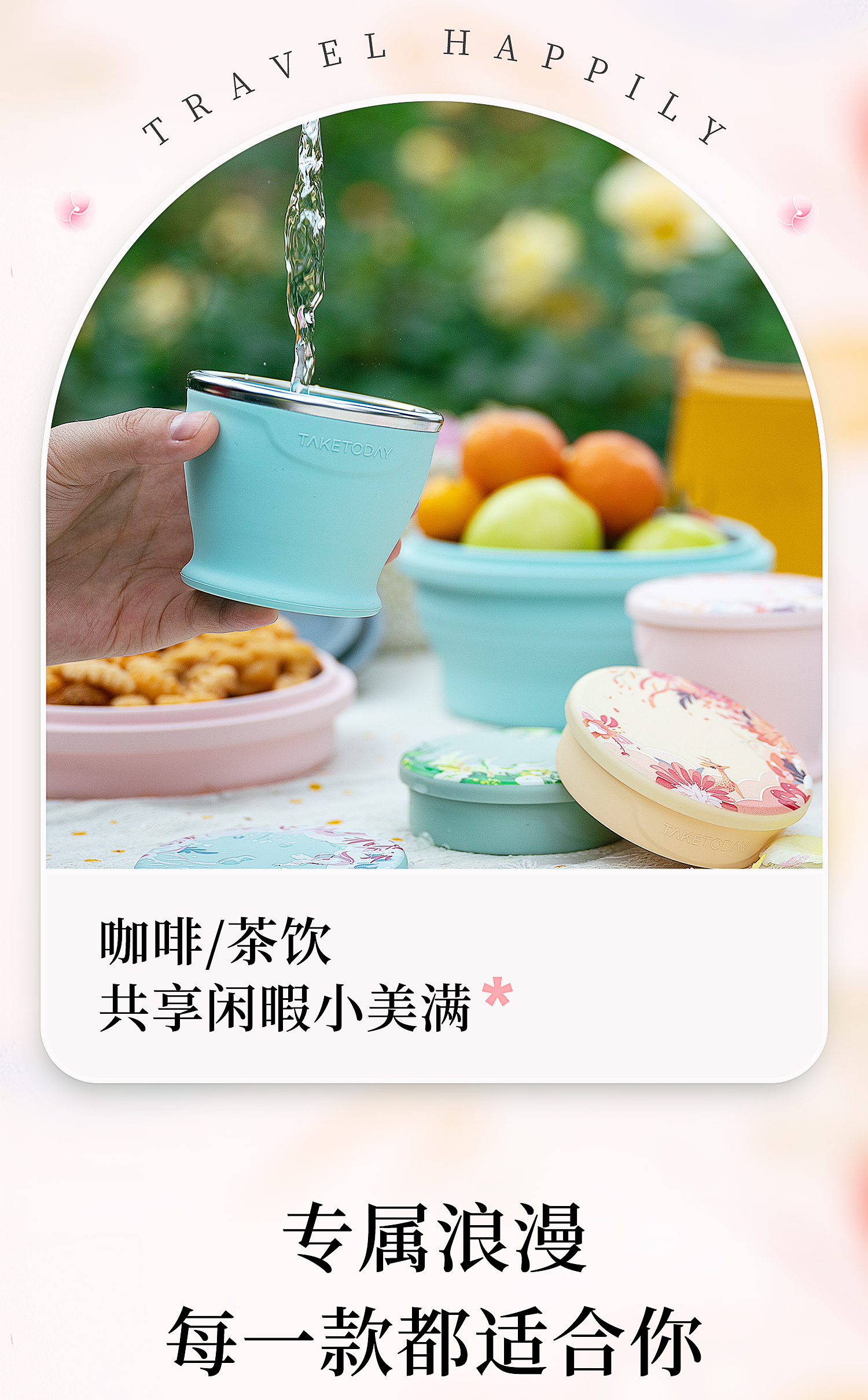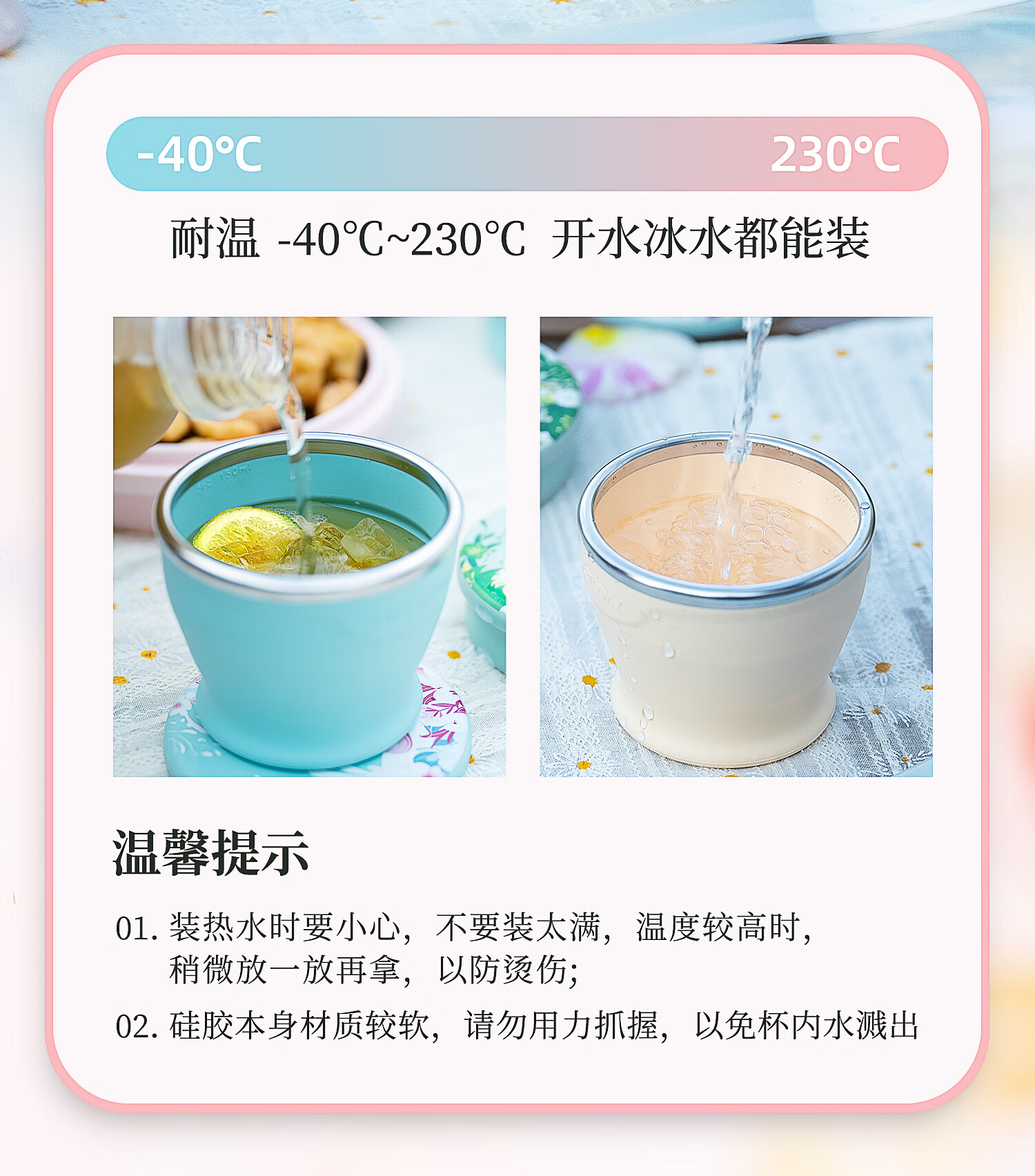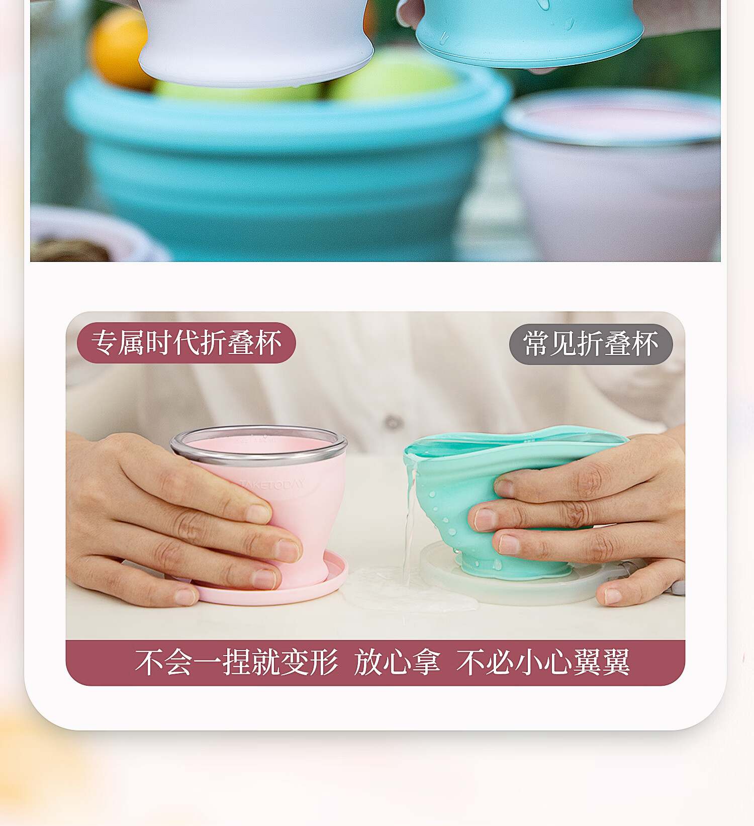 专属时代硅胶杯子食品级可折叠水杯高颜值随行杯便携式户外旅行杯 一路繁花 · 落樱粉 150ml