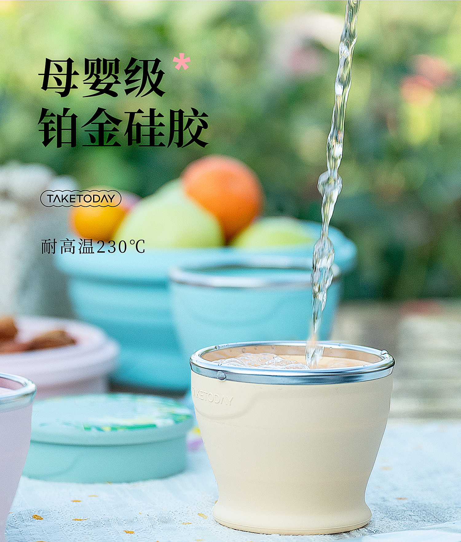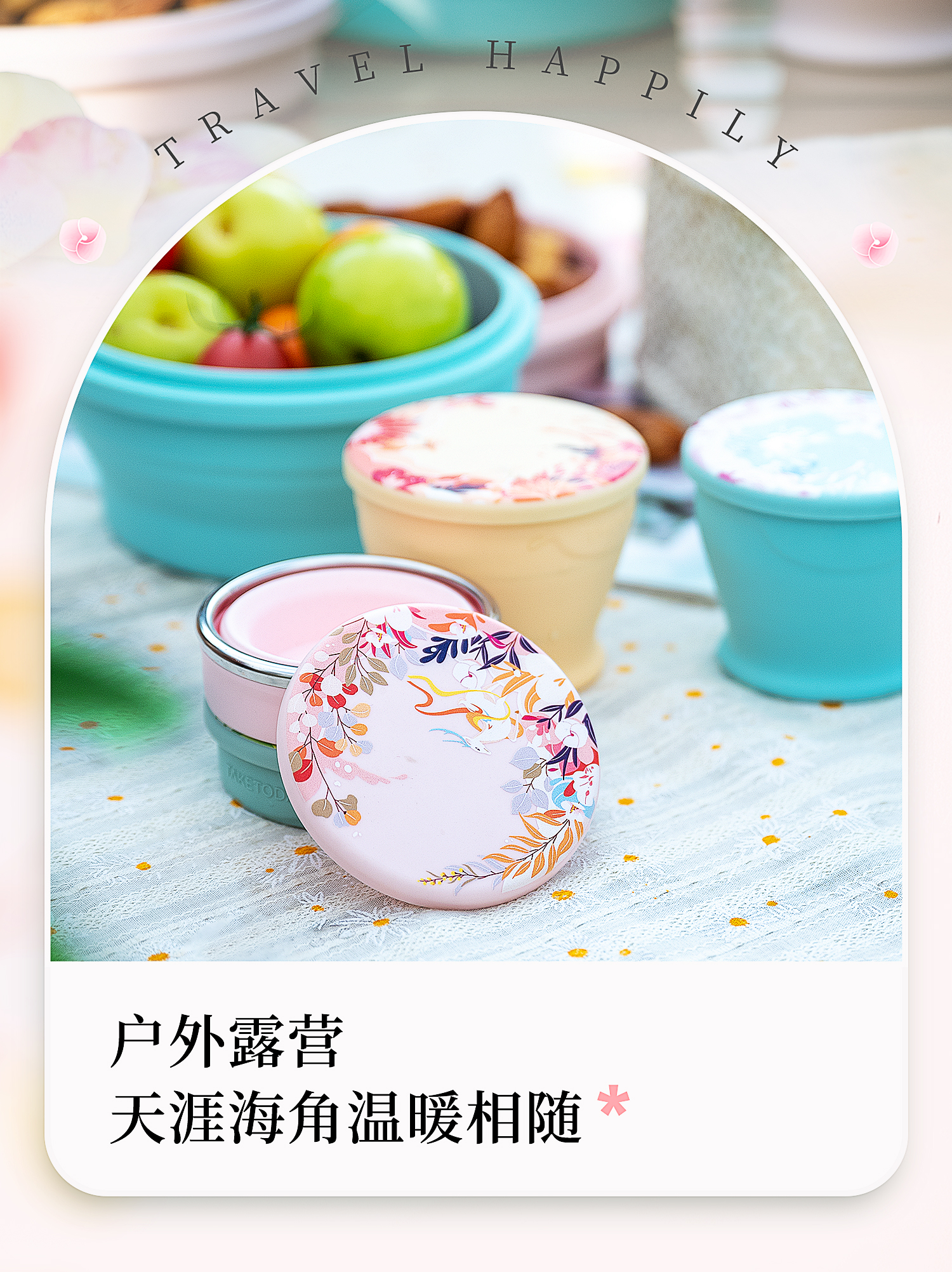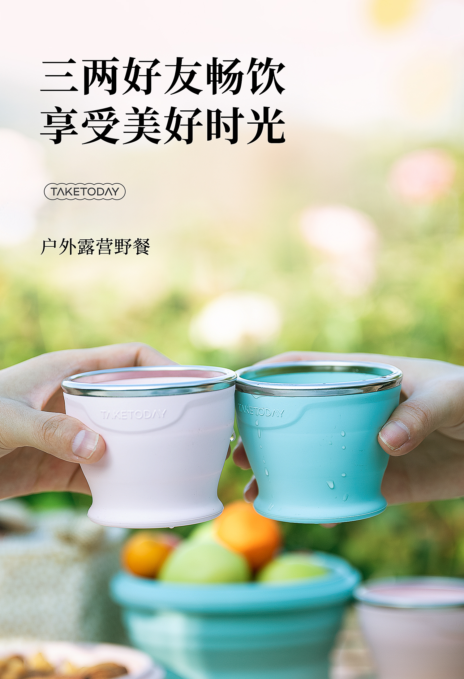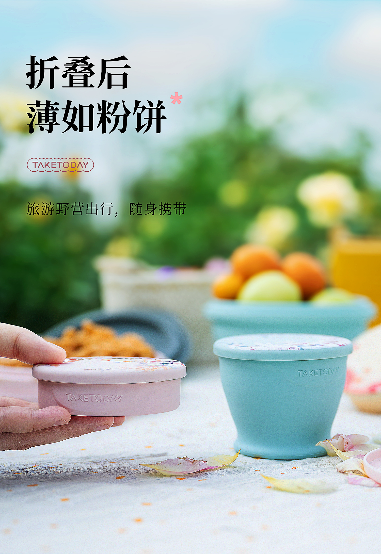 专属时代硅胶杯子食品级可折叠水杯高颜值随行杯便携式户外旅行杯 一路繁花 · 落樱粉 150ml