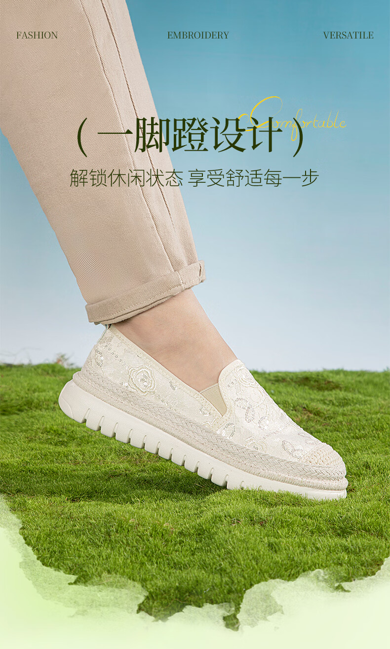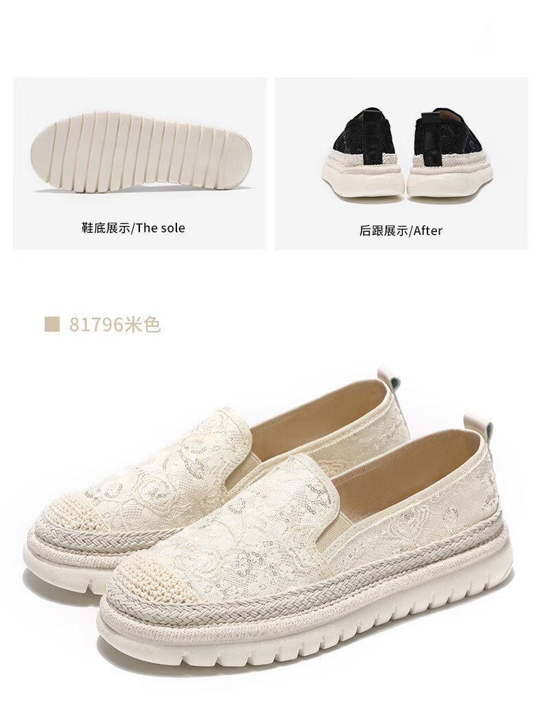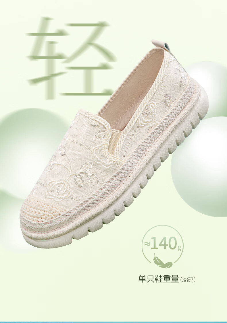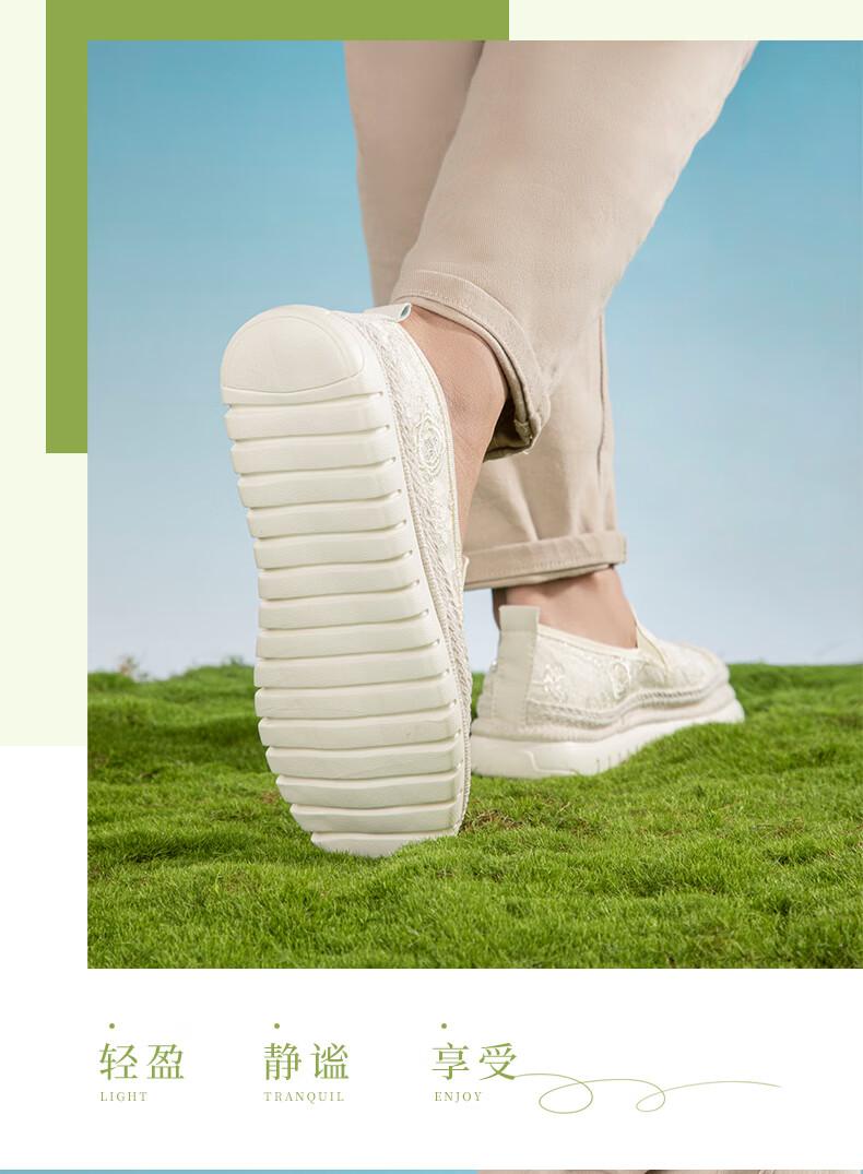泰和源老北京布鞋渔夫鞋女2026春季时尚平底舒适田园风休闲鞋厚底妈妈鞋 米色 81796 40