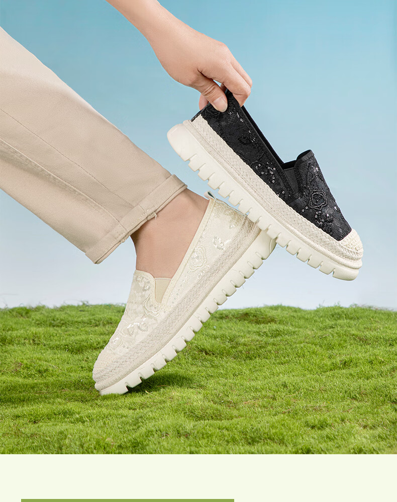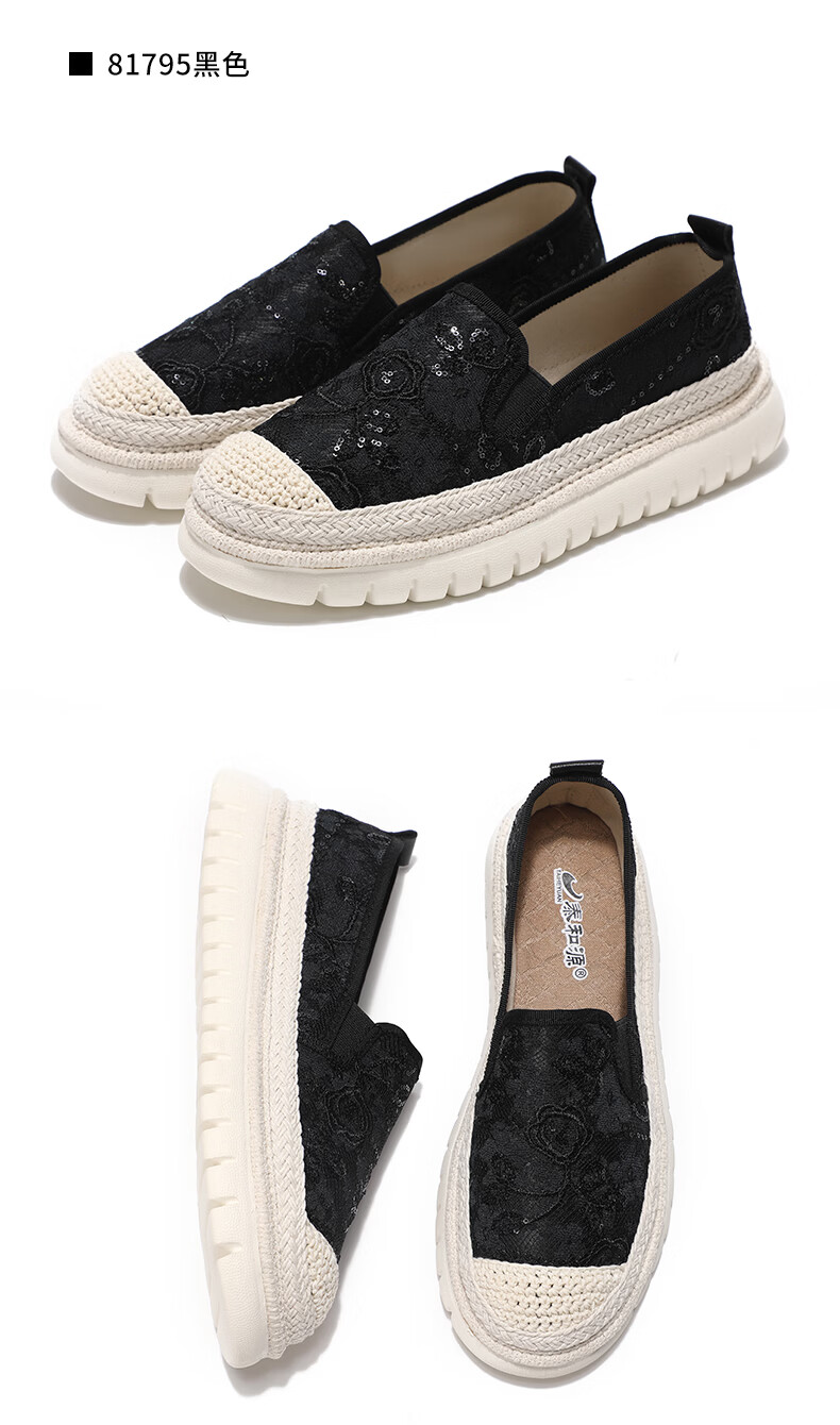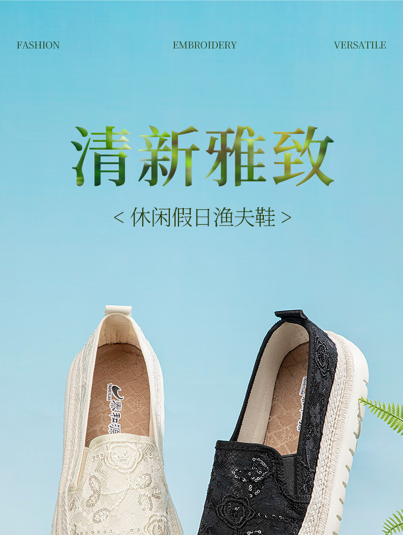 泰和源老北京布鞋渔夫鞋女2026春季时尚平底舒适田园风休闲鞋厚底妈妈鞋 米色 81796 40