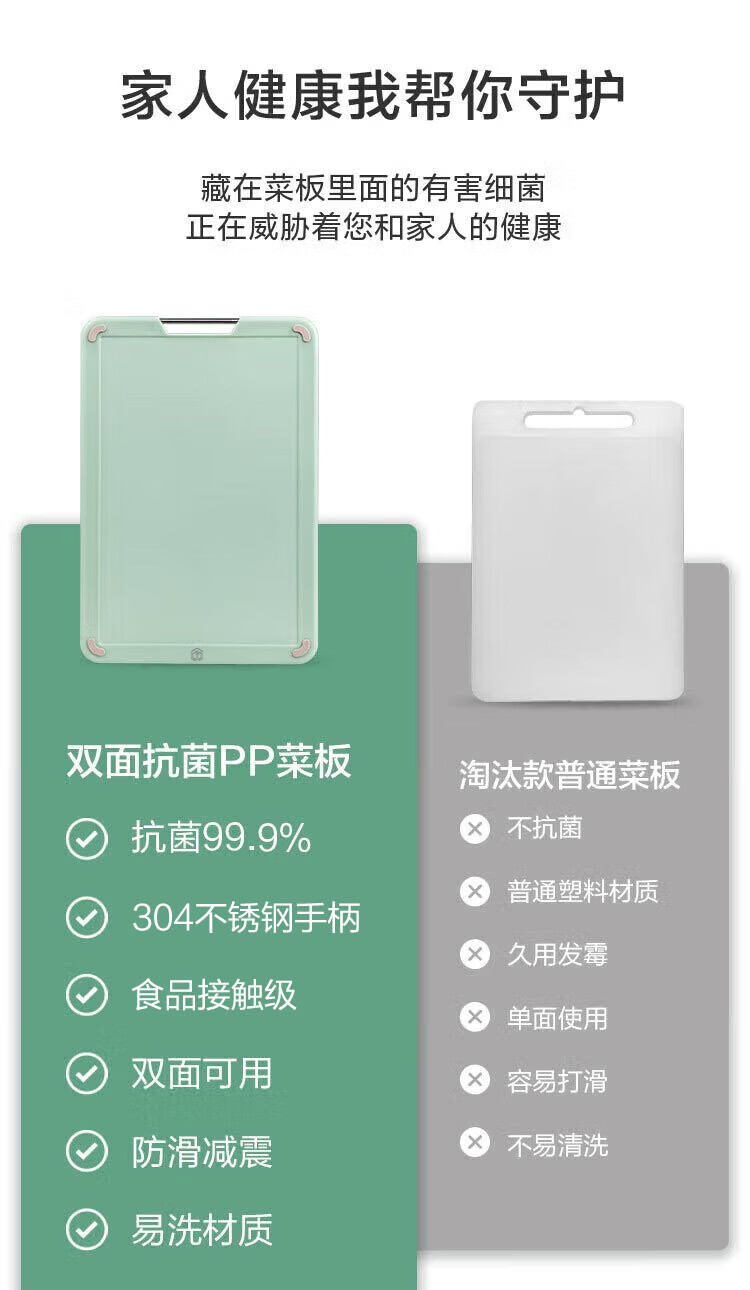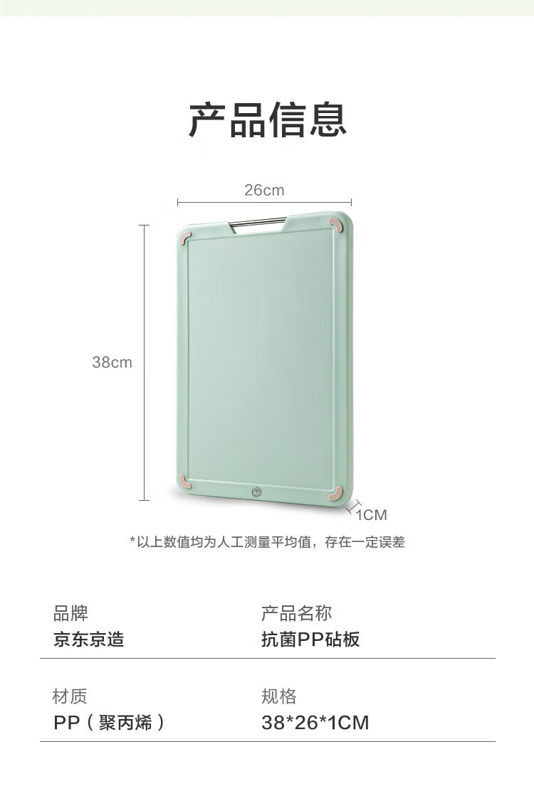 京东京造 菜板 PP砧案板切菜板塑料抗菌防霉家用食品级双面抗菌 38*26*1cm