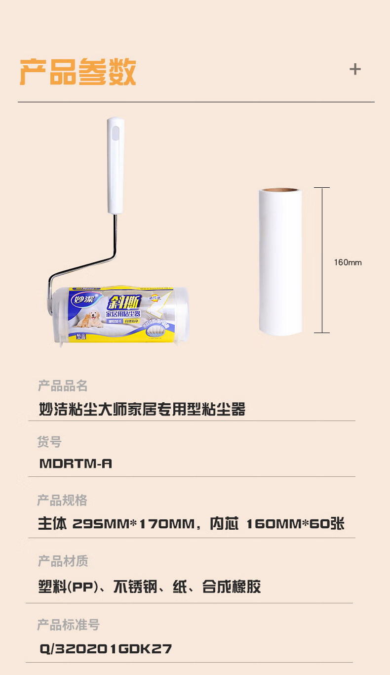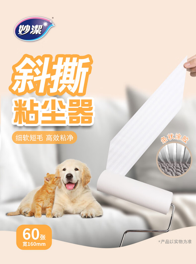 妙洁 斜撕家居用粘尘器 16cm60撕 滚筒粘毛器粘尘纸