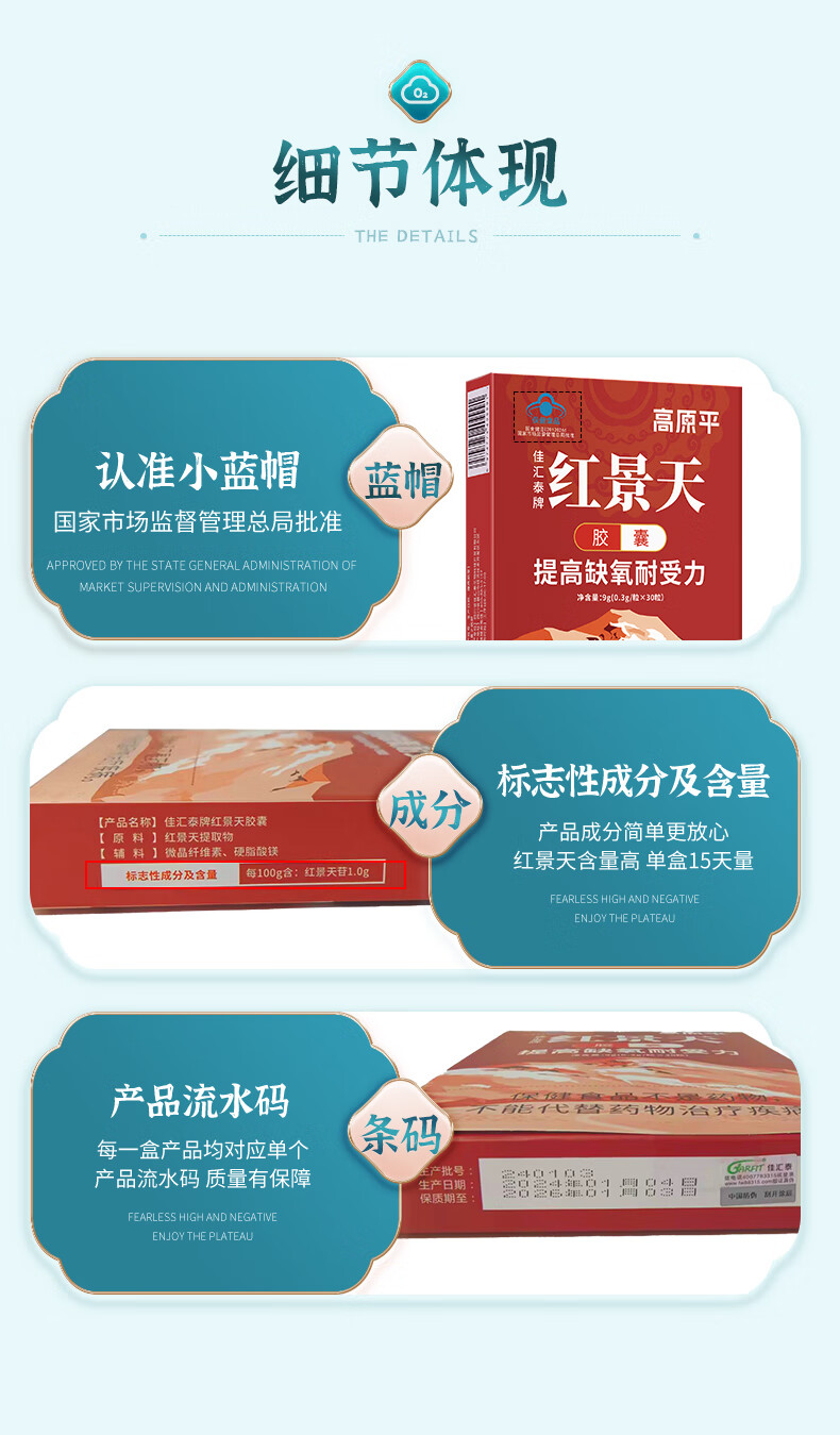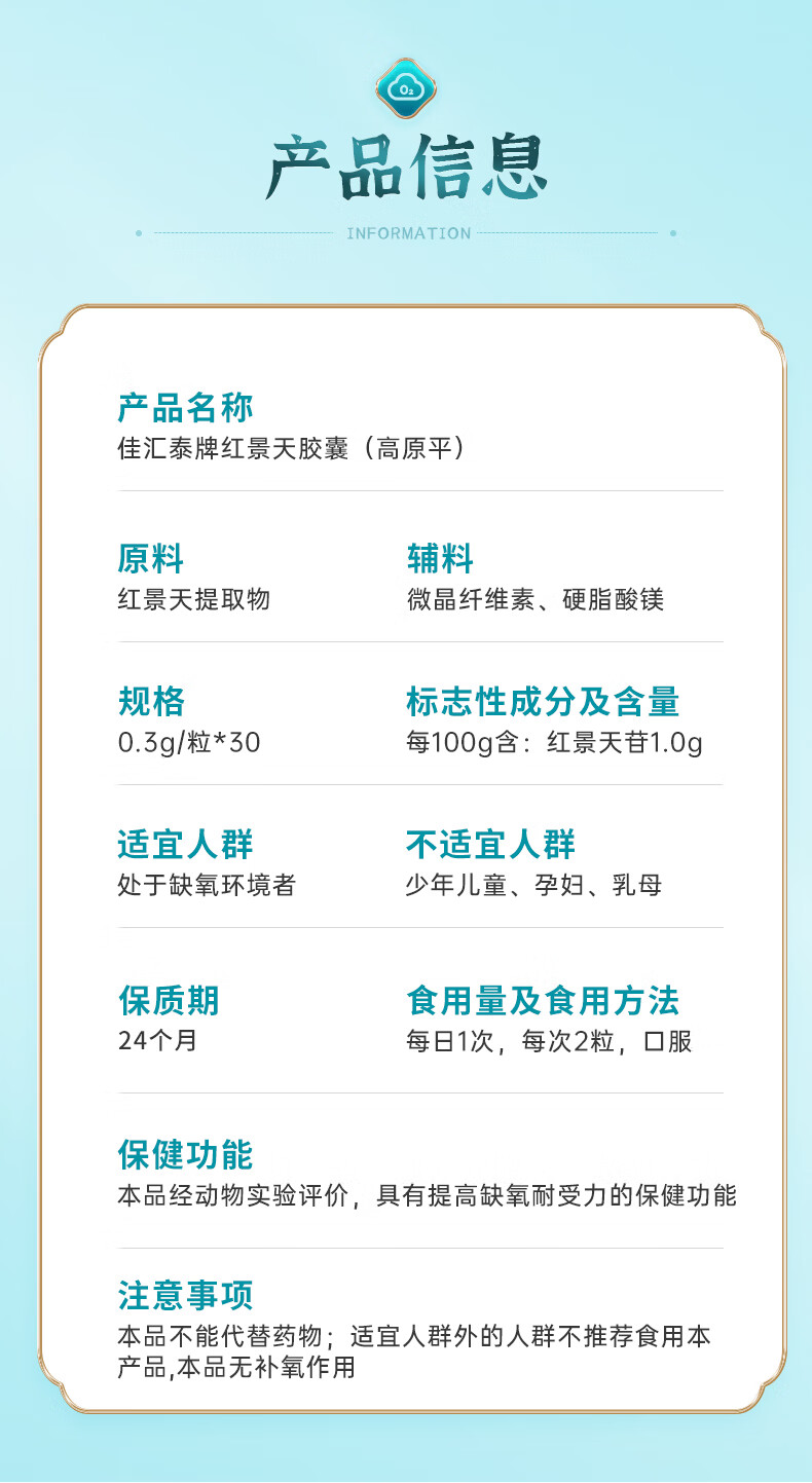 佳汇泰红景天胶囊高原反应药房缺氧西藏高反24粒12天搭葡萄糖口服液